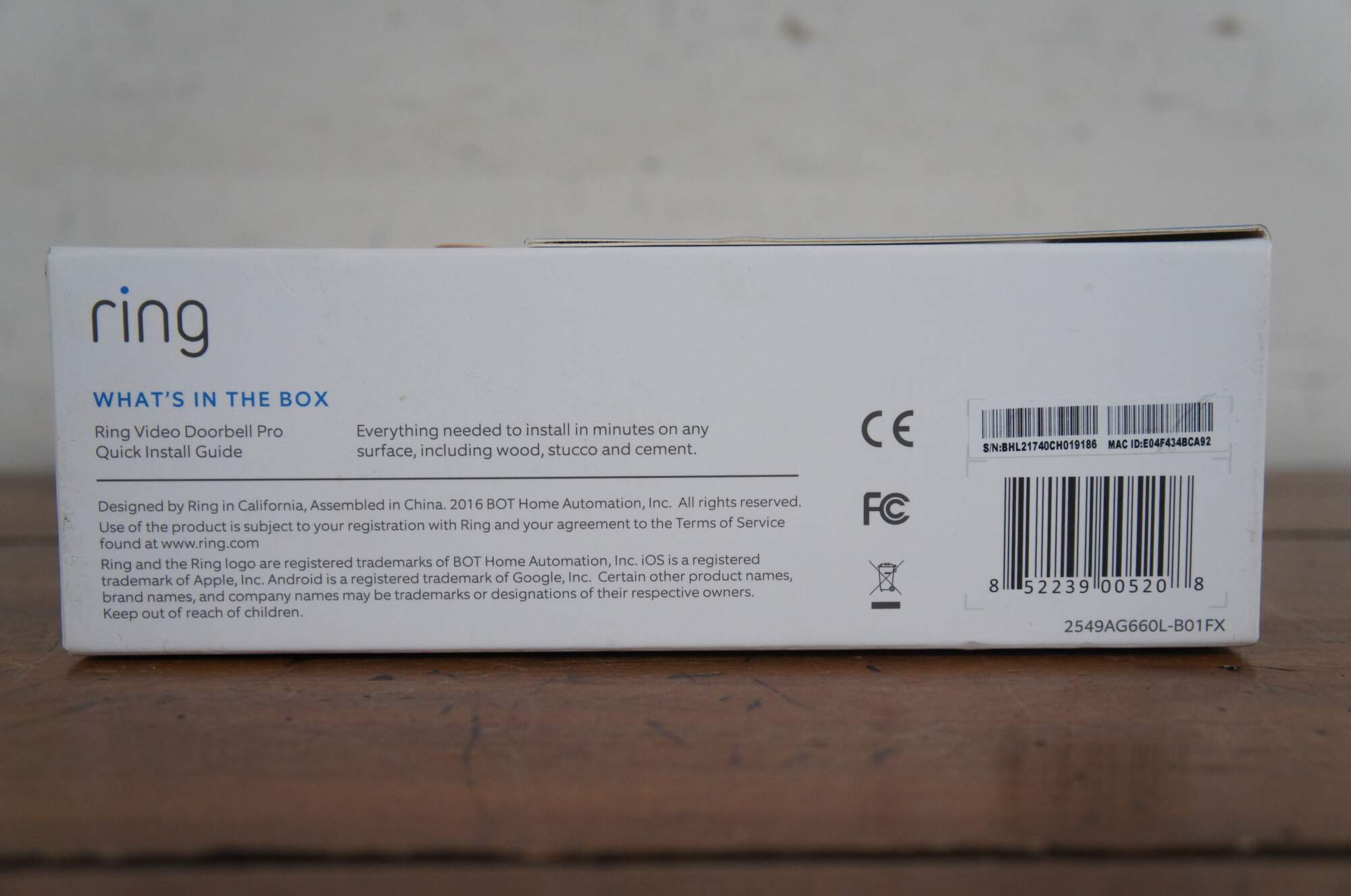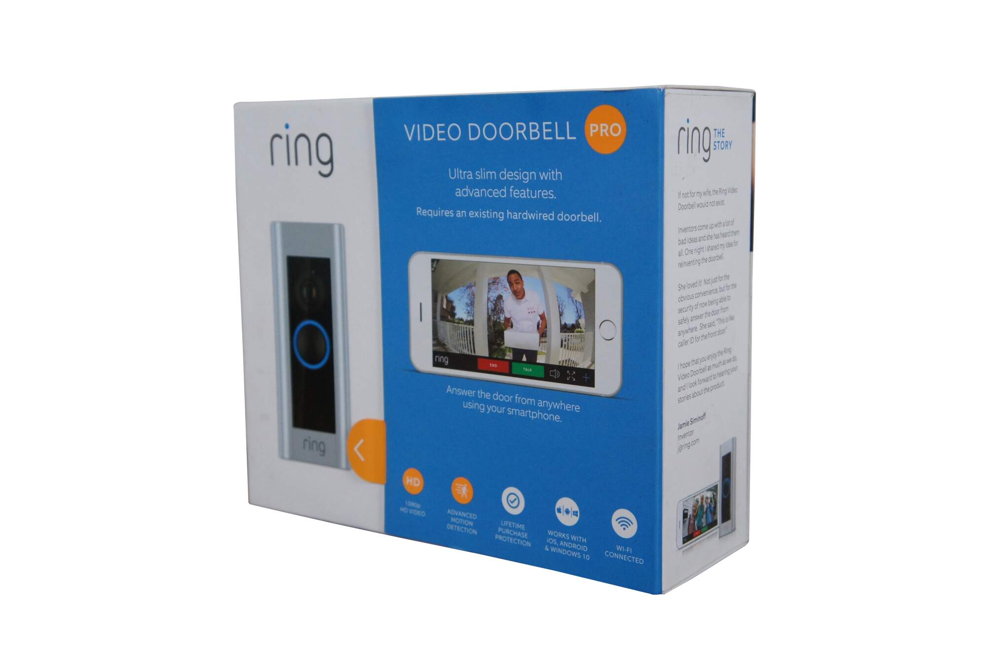 Ring Video Doorbell Pro. Sealed in original packaging - includes four interchangable faceplates. MAC ID: E04F434BCA92 / S/N: BHL21740CH019186 / 2549AG660L-B01FX.