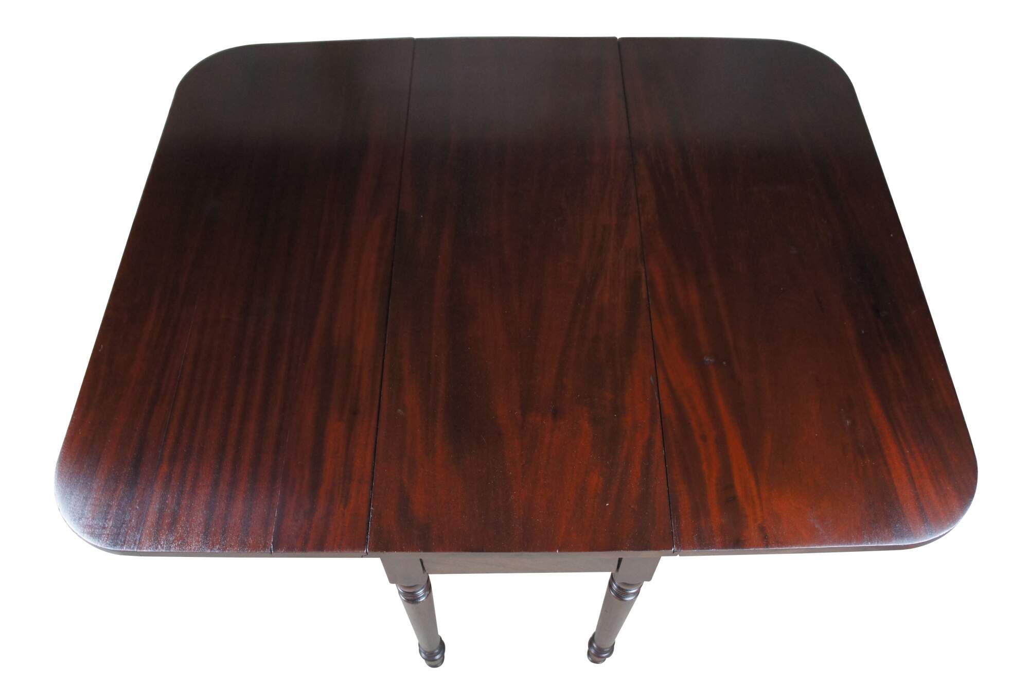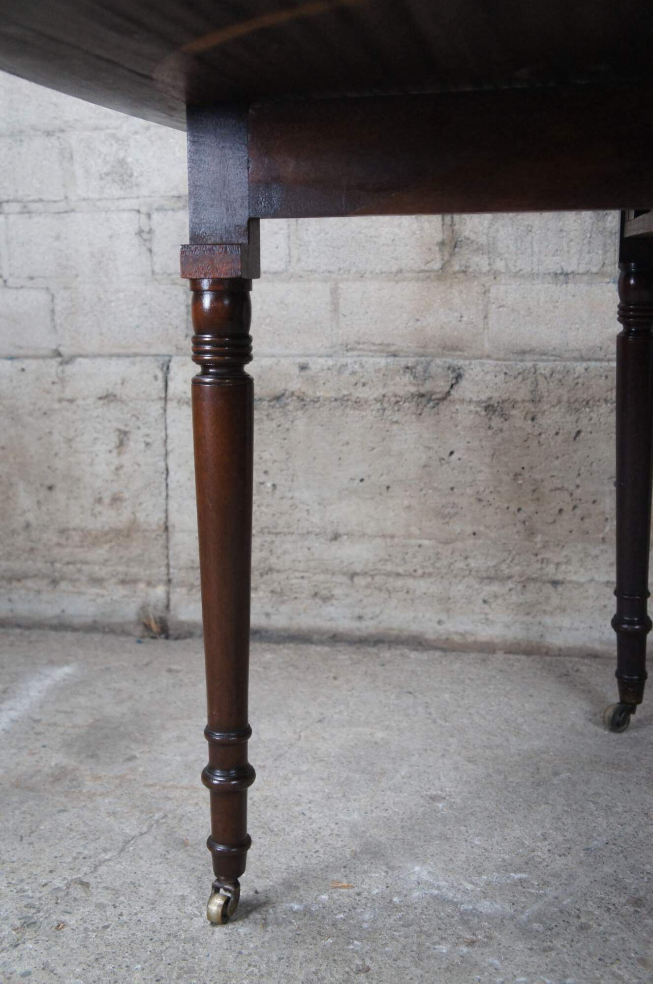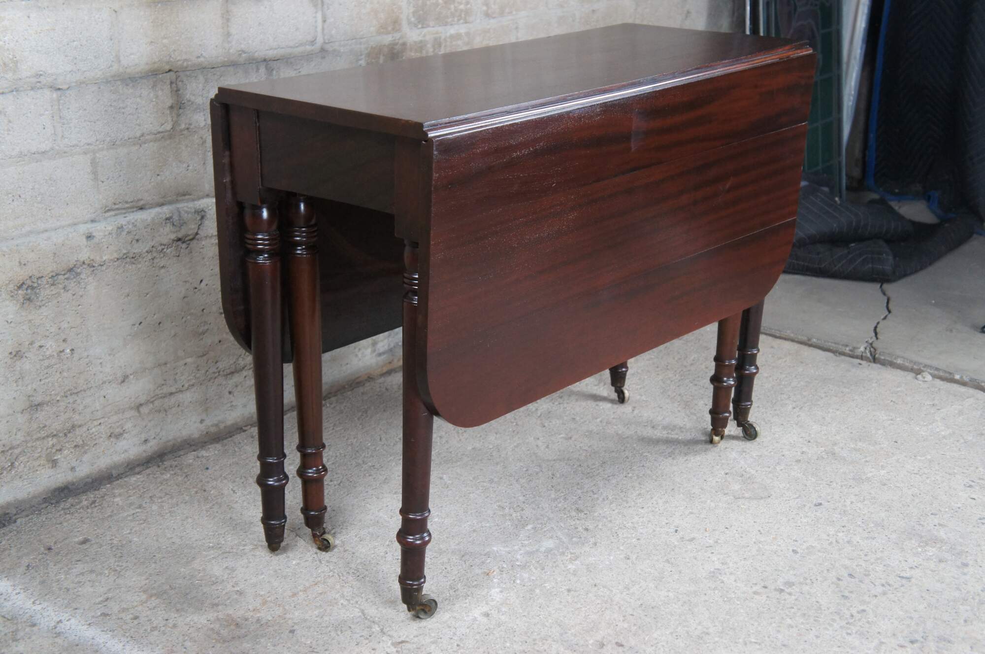 Charming early 19th century Sheraton gateleg table. Made from mahogany with two "D" form dropleaves. the table is supported by Turned, tapered and ribbed legs leading to metal casters. Great for use as an entryway console or breakfast table.