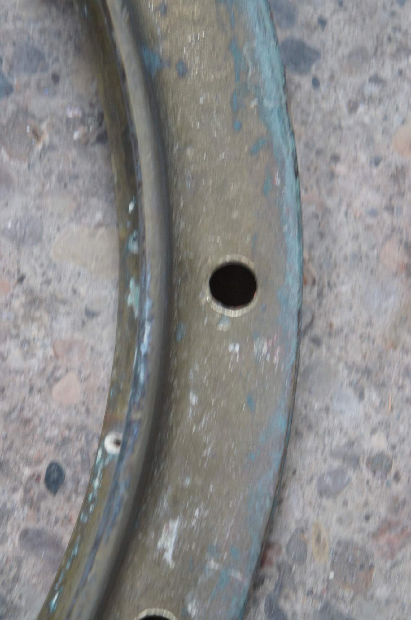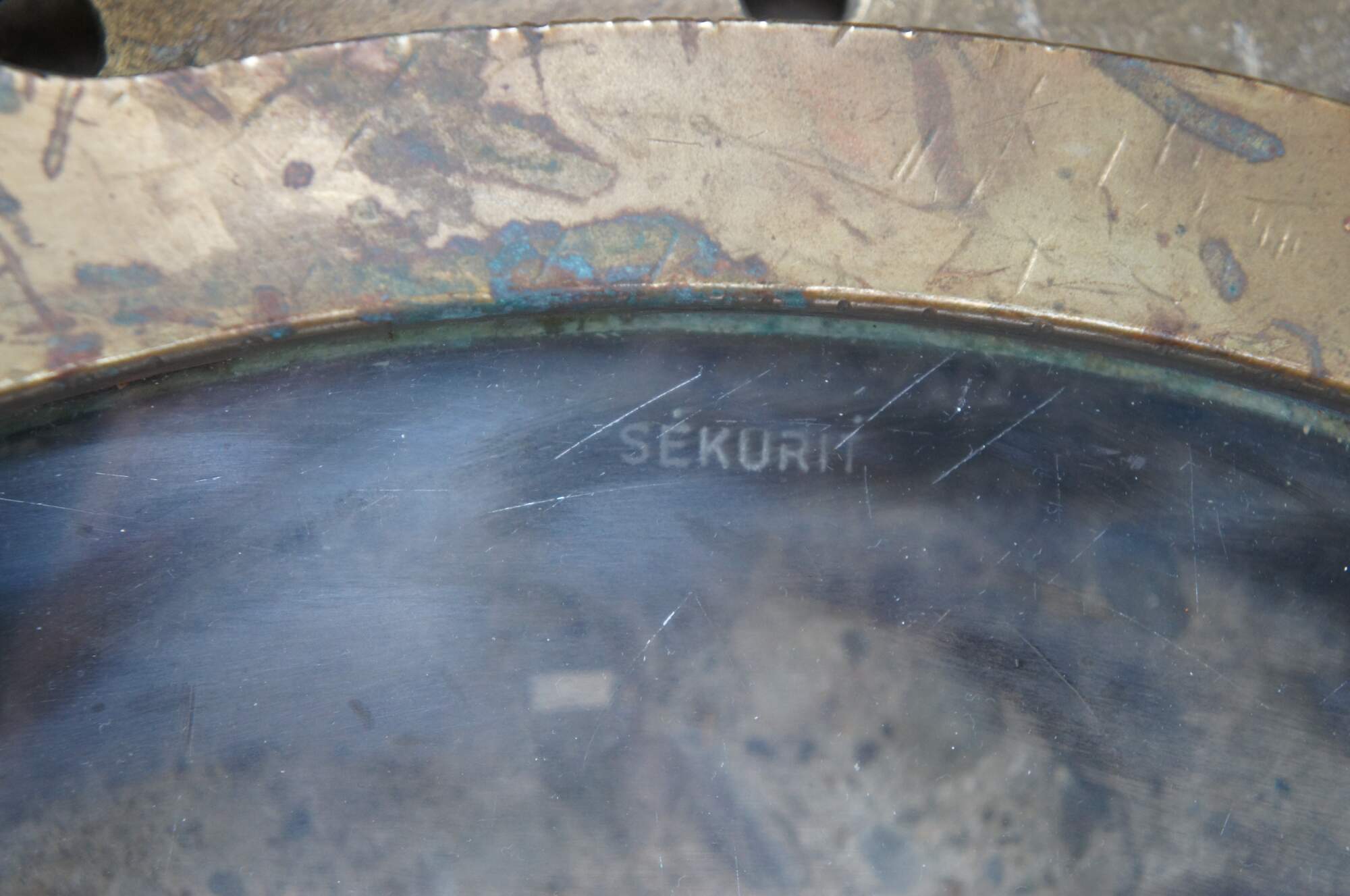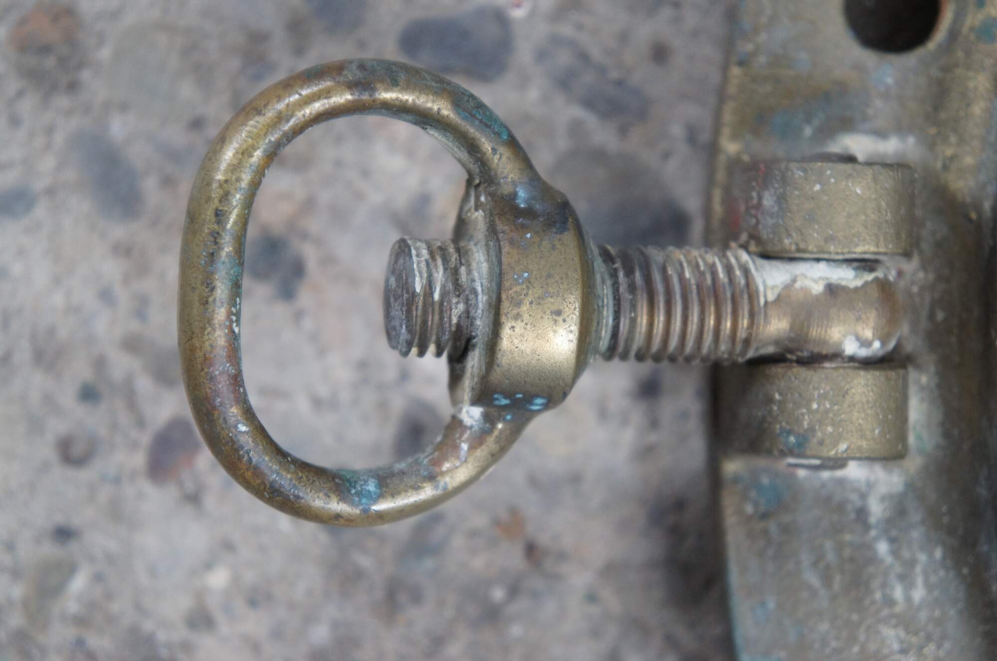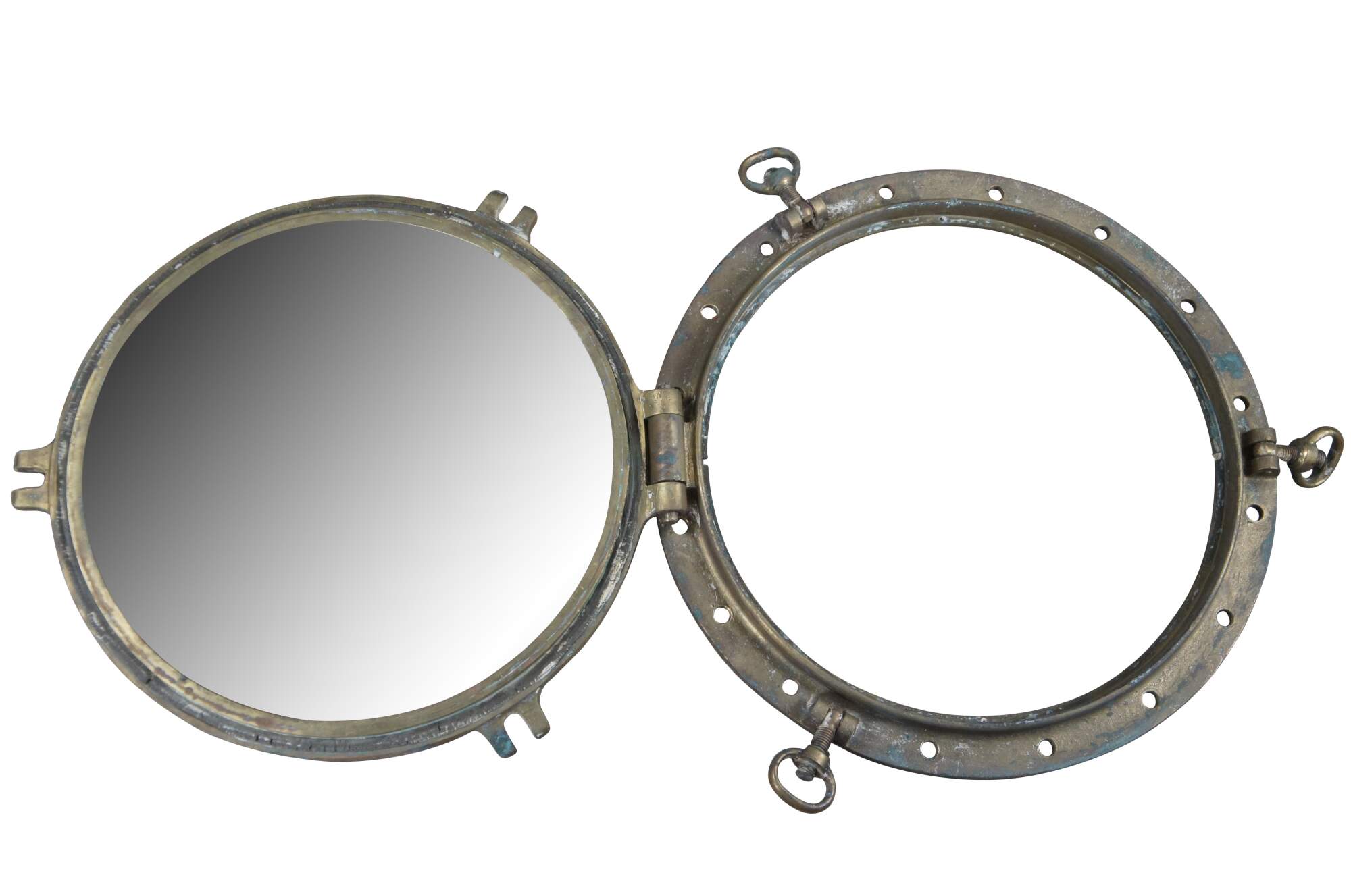 Extremely unique original large antique heavy solid bronze maritime Ship's Porthole or Hatch. The majority are rather simple and made from aluminum or nickel plated rather than heavy bronze like this unique specimen. The vast majority of portholes on the market today are modern or reproduction's. This aged beauty is complete with original green glass and 3 dogs. High quality construction and hefty weight. Includes Sekurit Weather Glass.