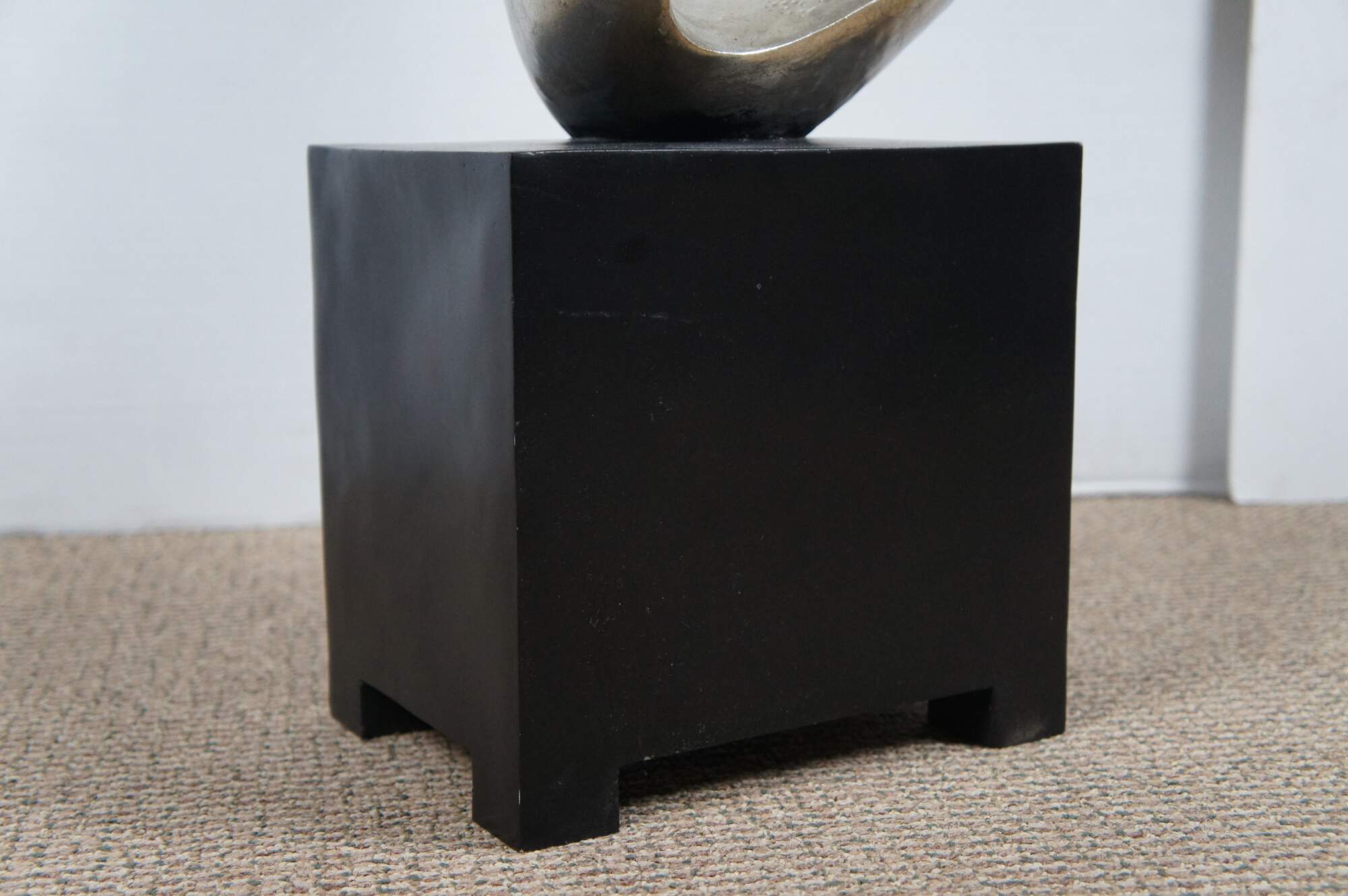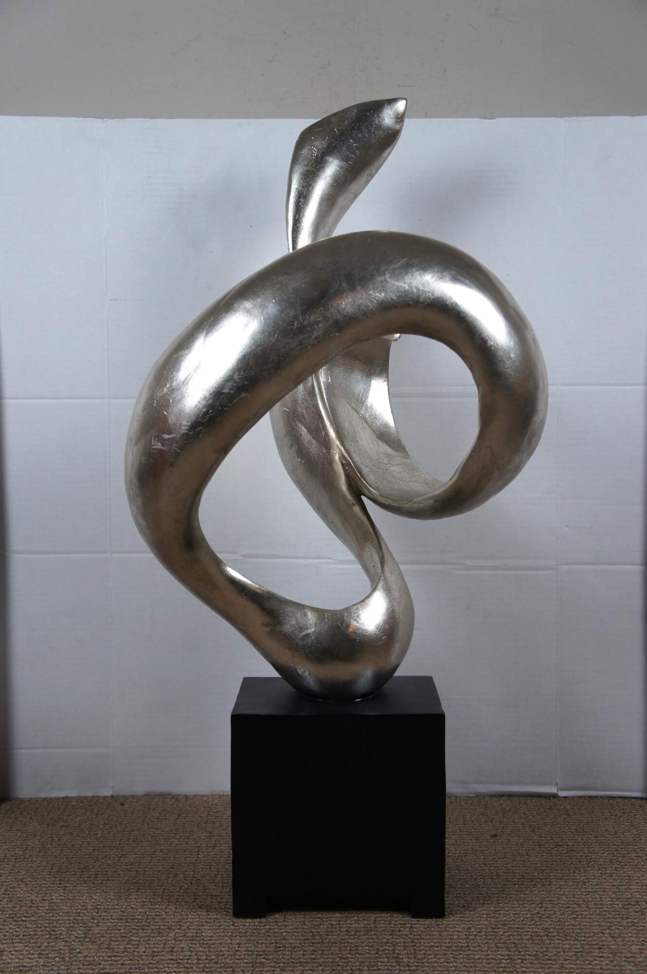Late 20th century composite sculpture by Austin Productions featuring a rectangular black base supporting a silver gilt swirling abstract shape.