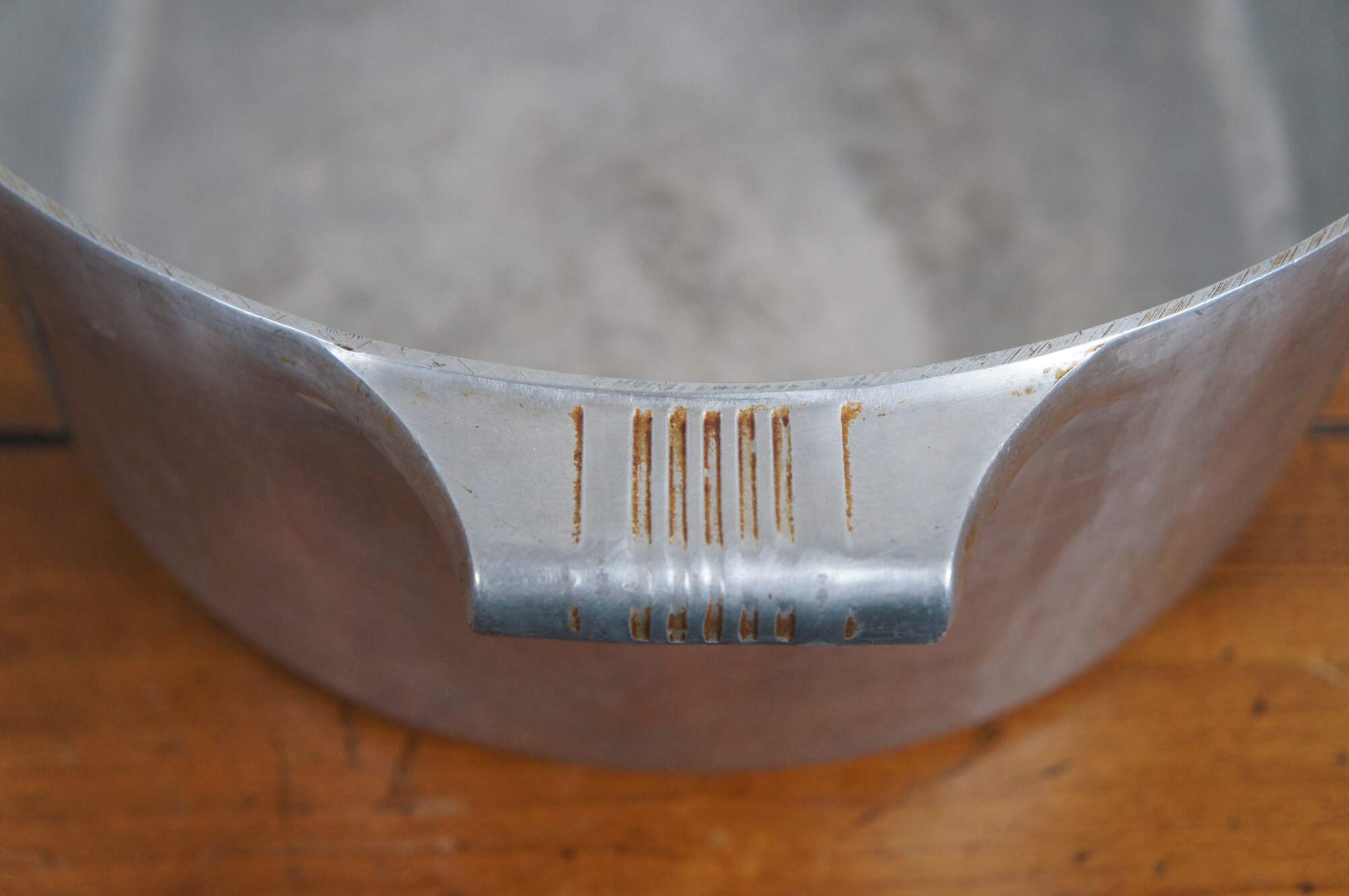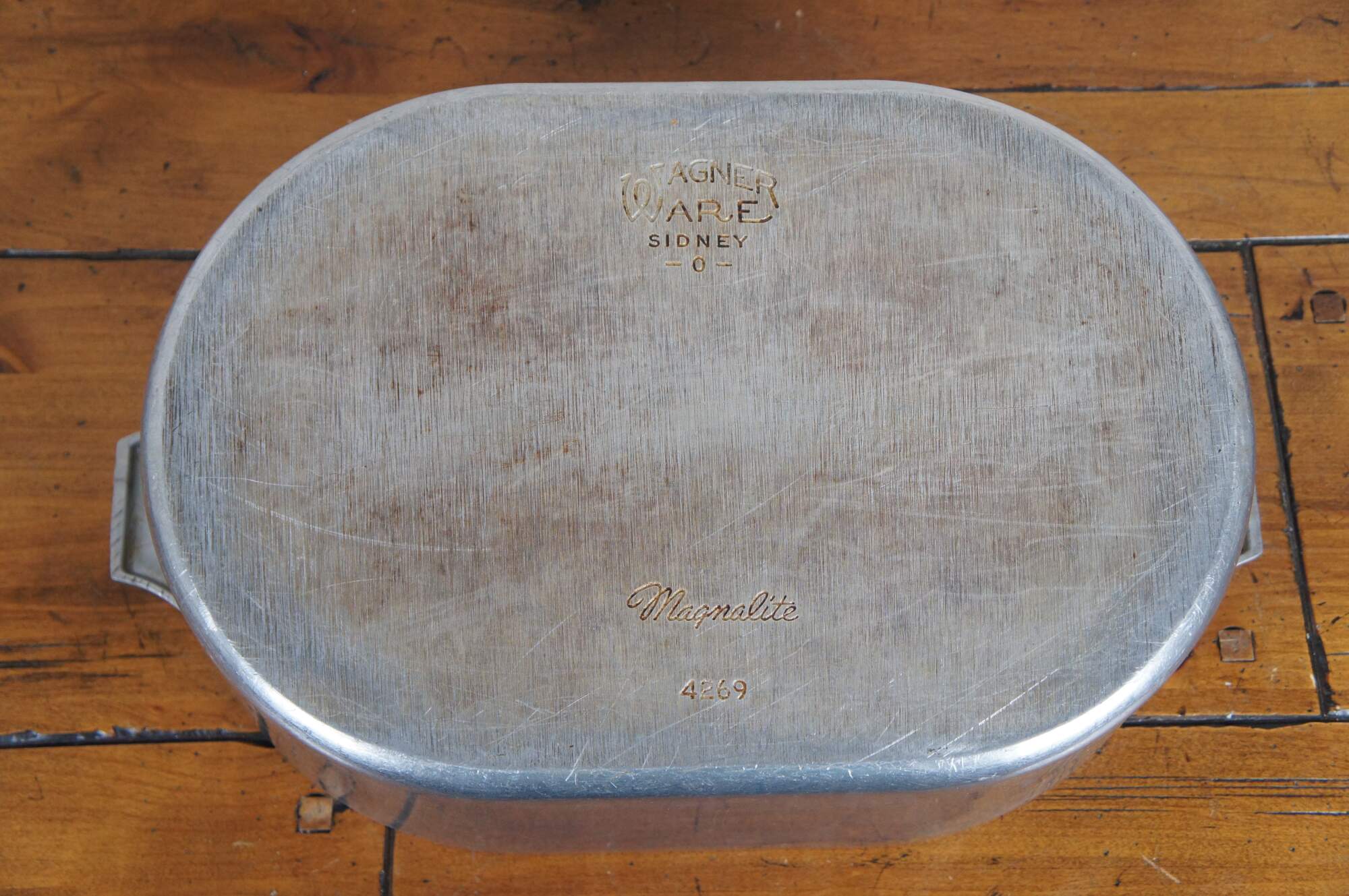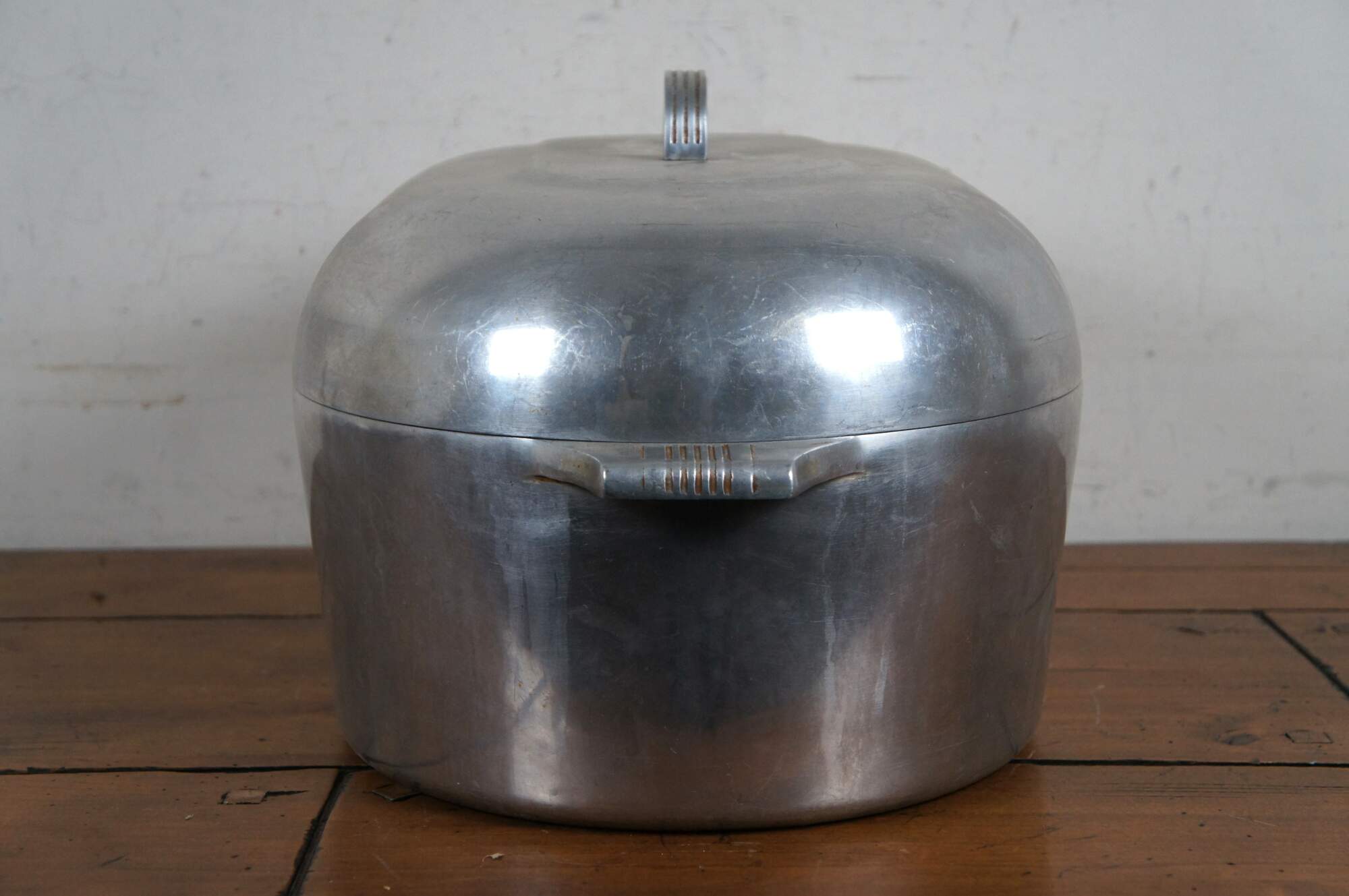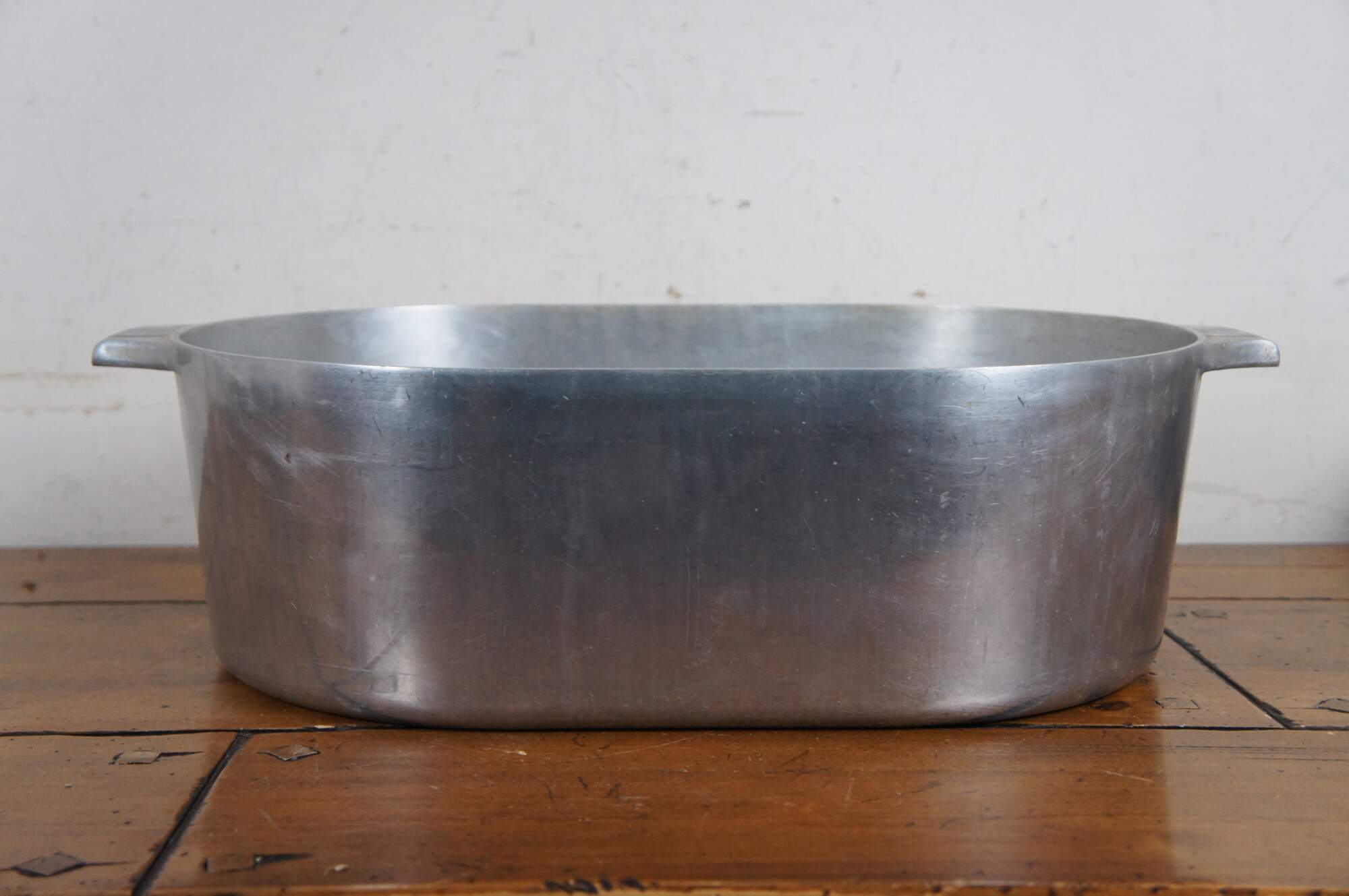 Early to mid 20th century Wagner Ware Magnalite number 4269 extra large, 17 quart aluminum turkey roaster / dutch oven featuring simple art deco styling on the base and lid handles.