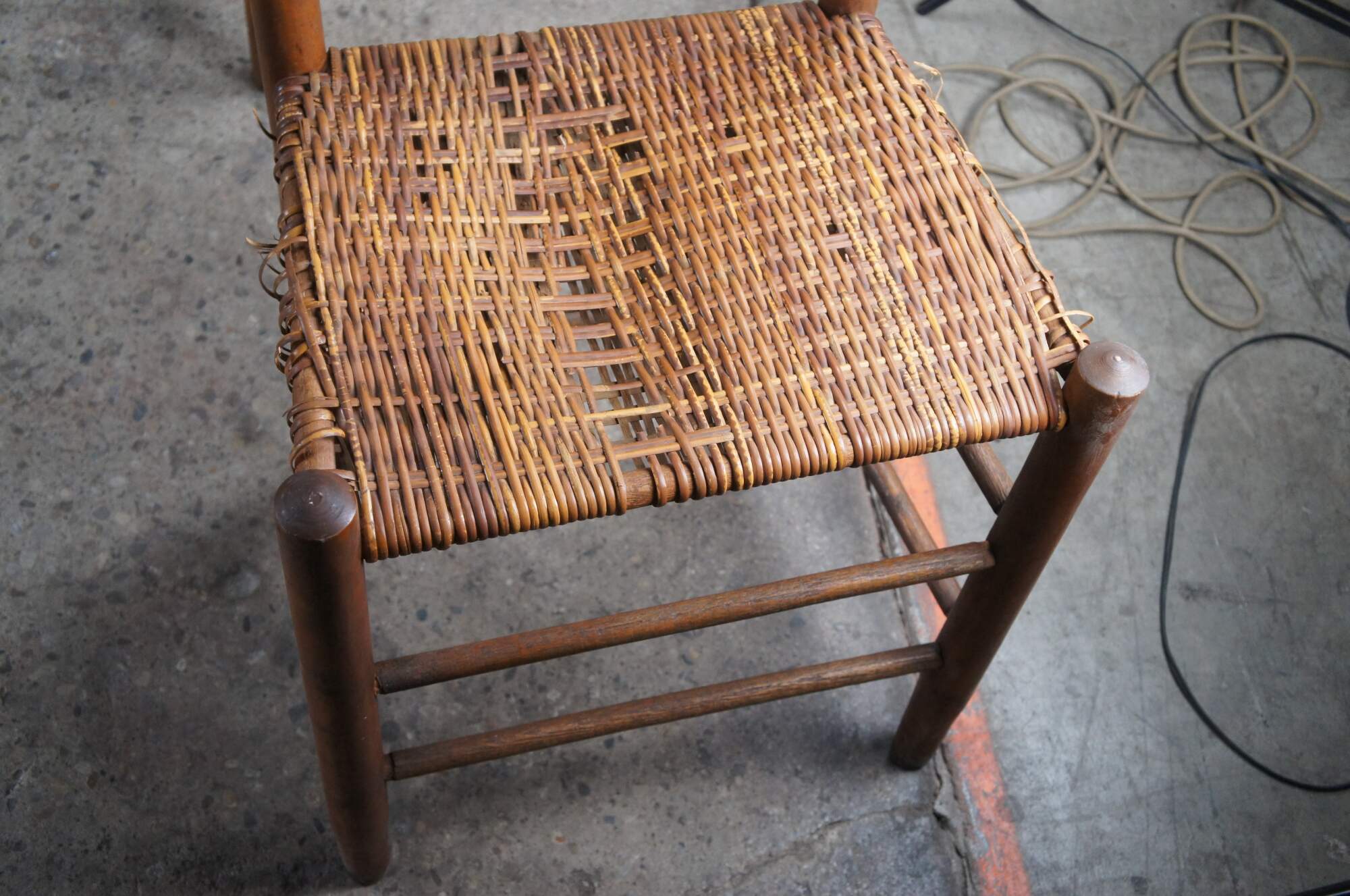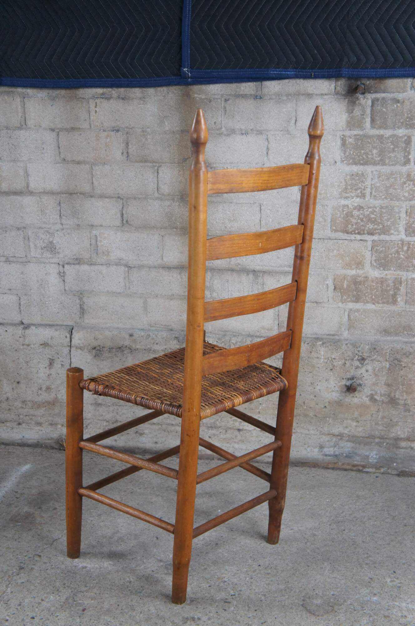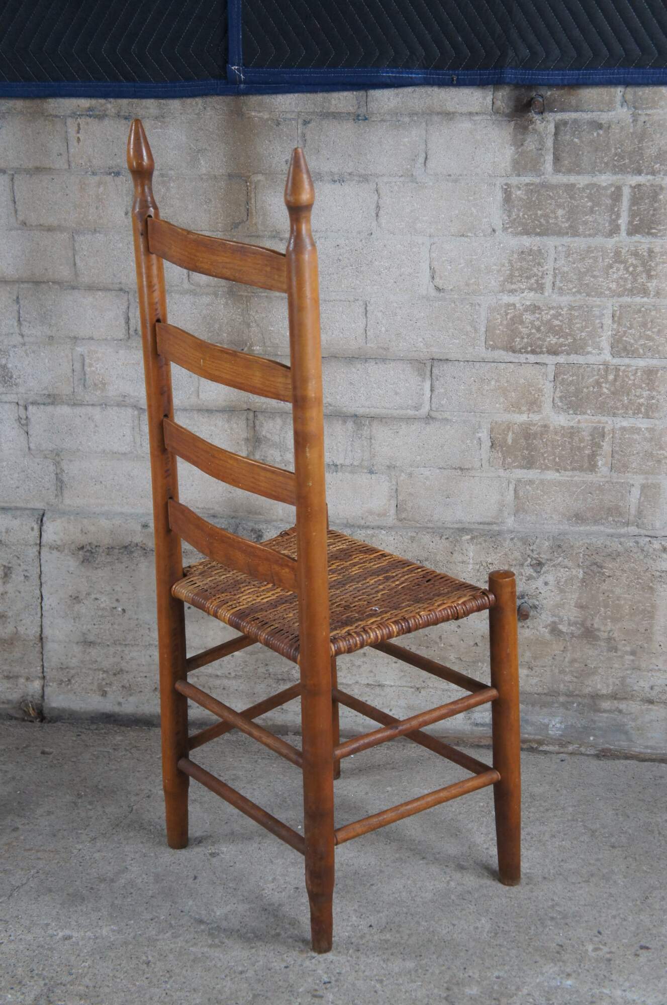 4 American Shaker ladderback dining chairs with rattan / wicker seats. Beautifully designed with unique cone shaped finials.