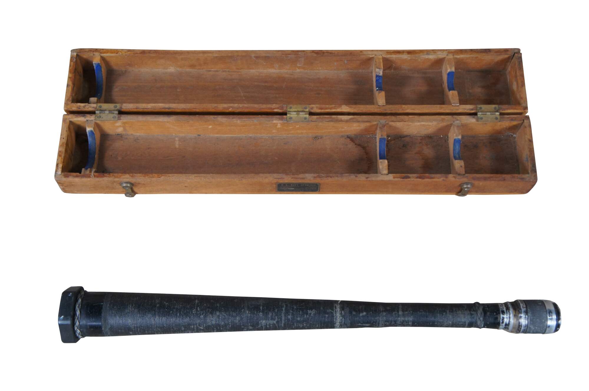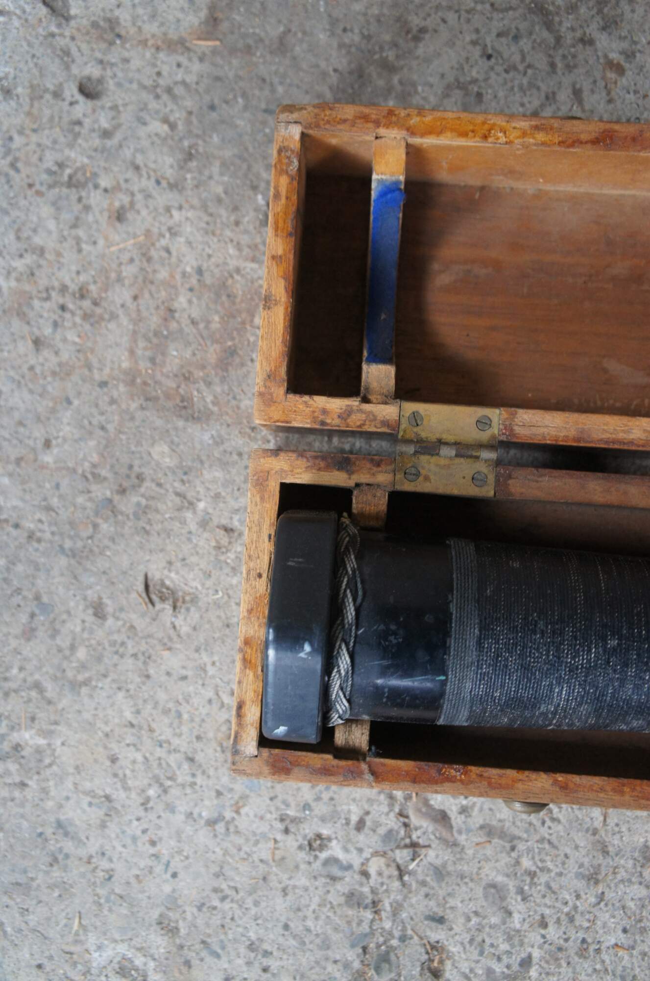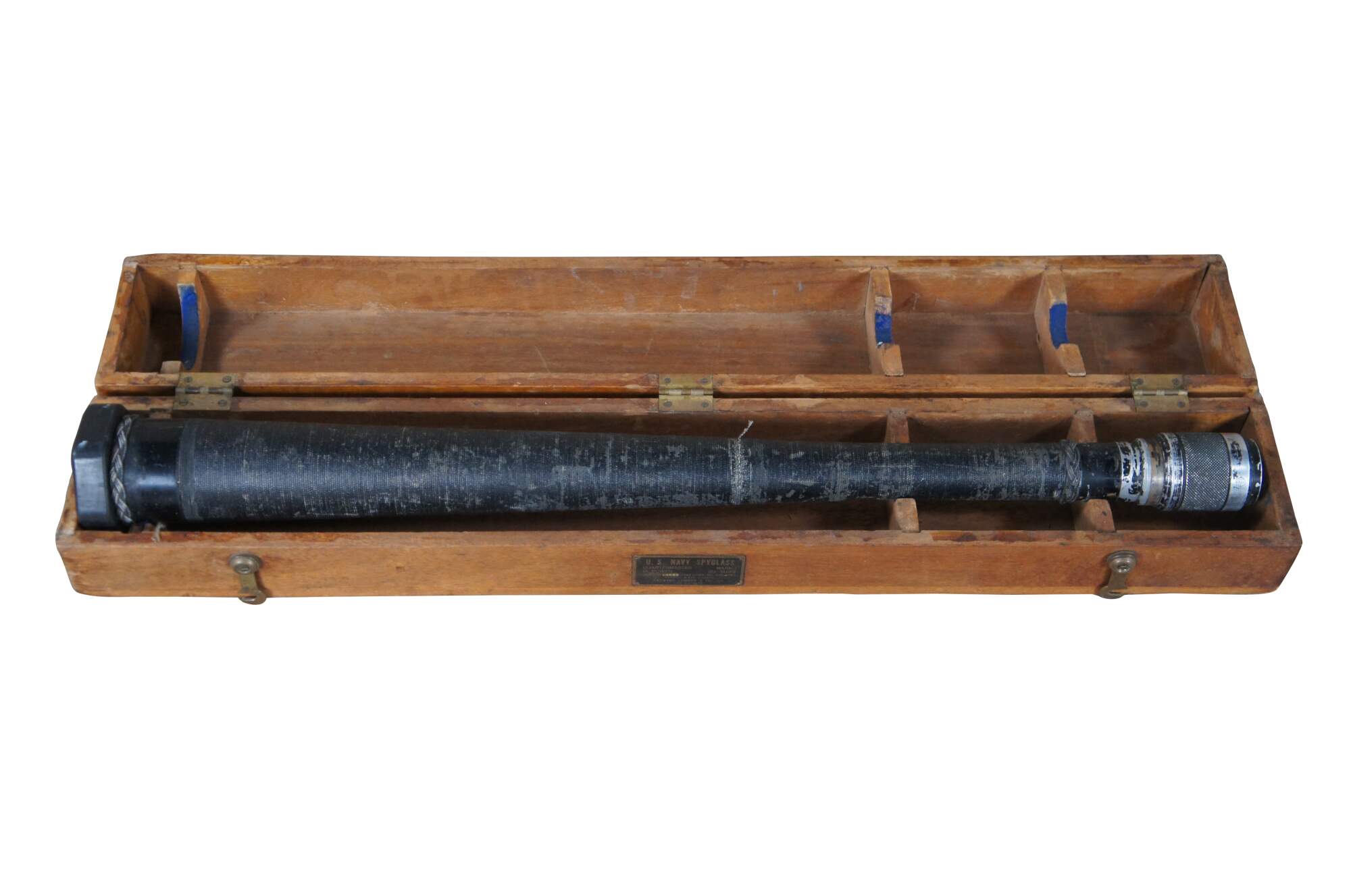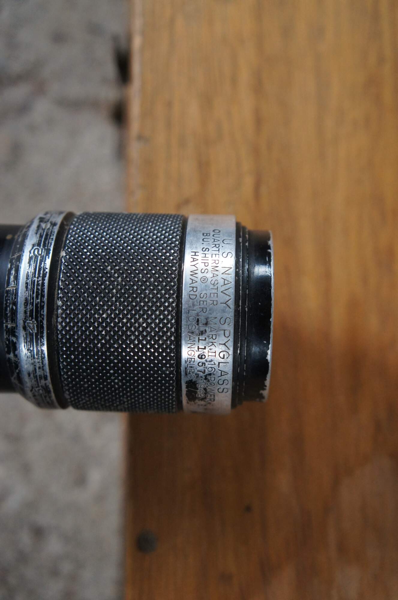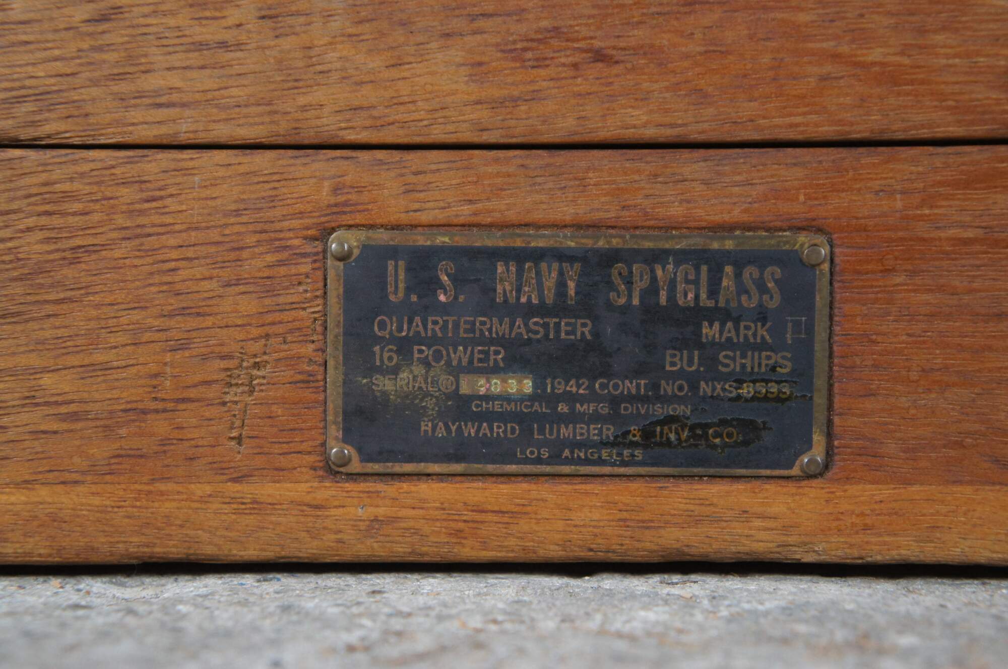 Antique Hayward Lumber & Inv Co of Los Angeles nautical maritime military ship spyglass / telescope / scope. Quartermaster, Mark II, 16 Power, Chemical & MFG Division. This telescope served the United States Navy circa 1942. Includes wooden case, Serial No 14833.