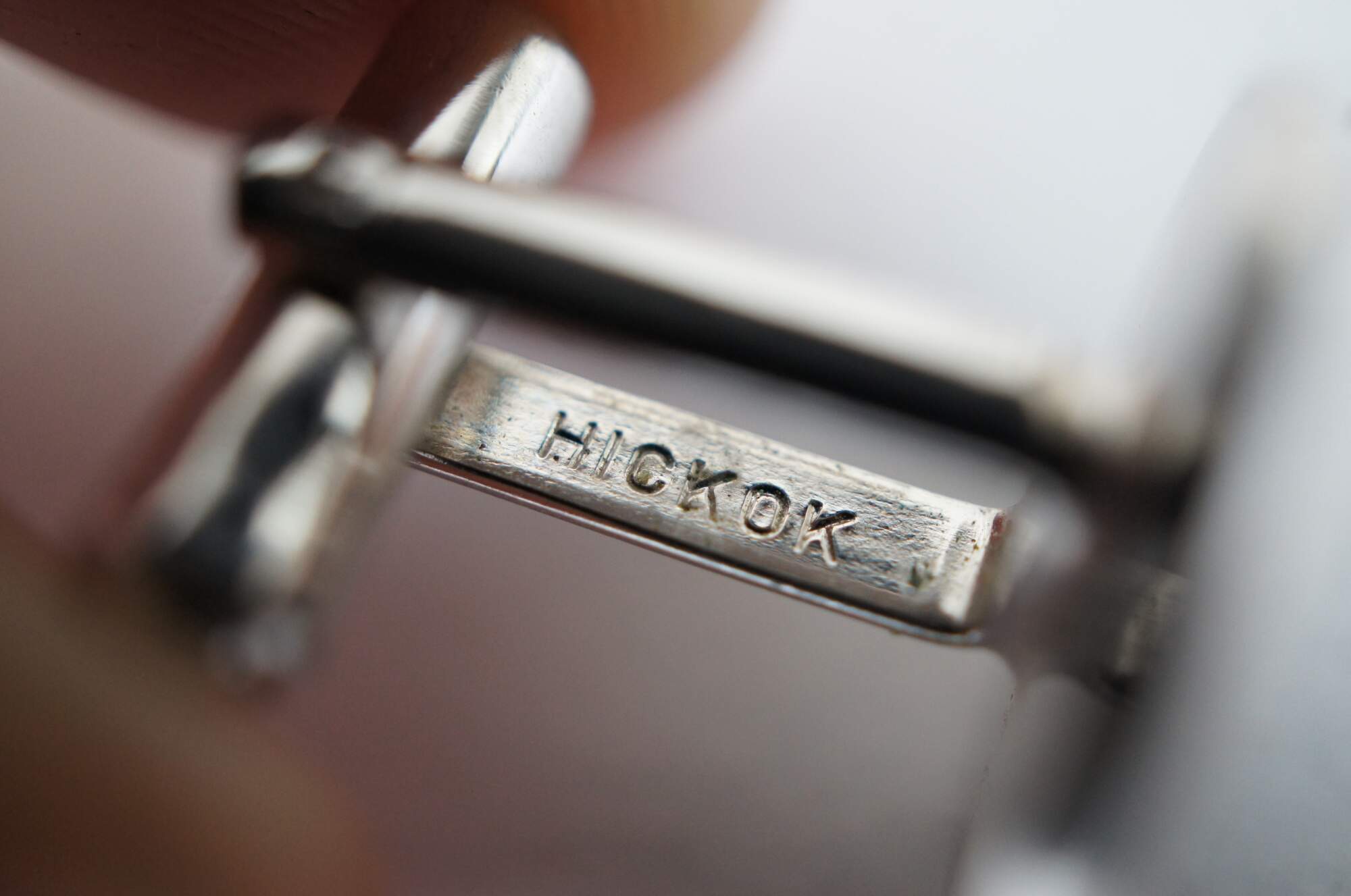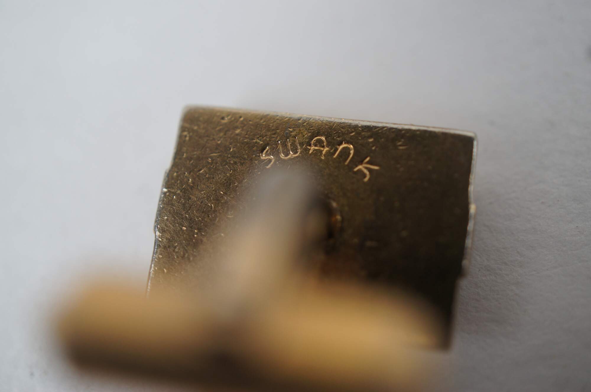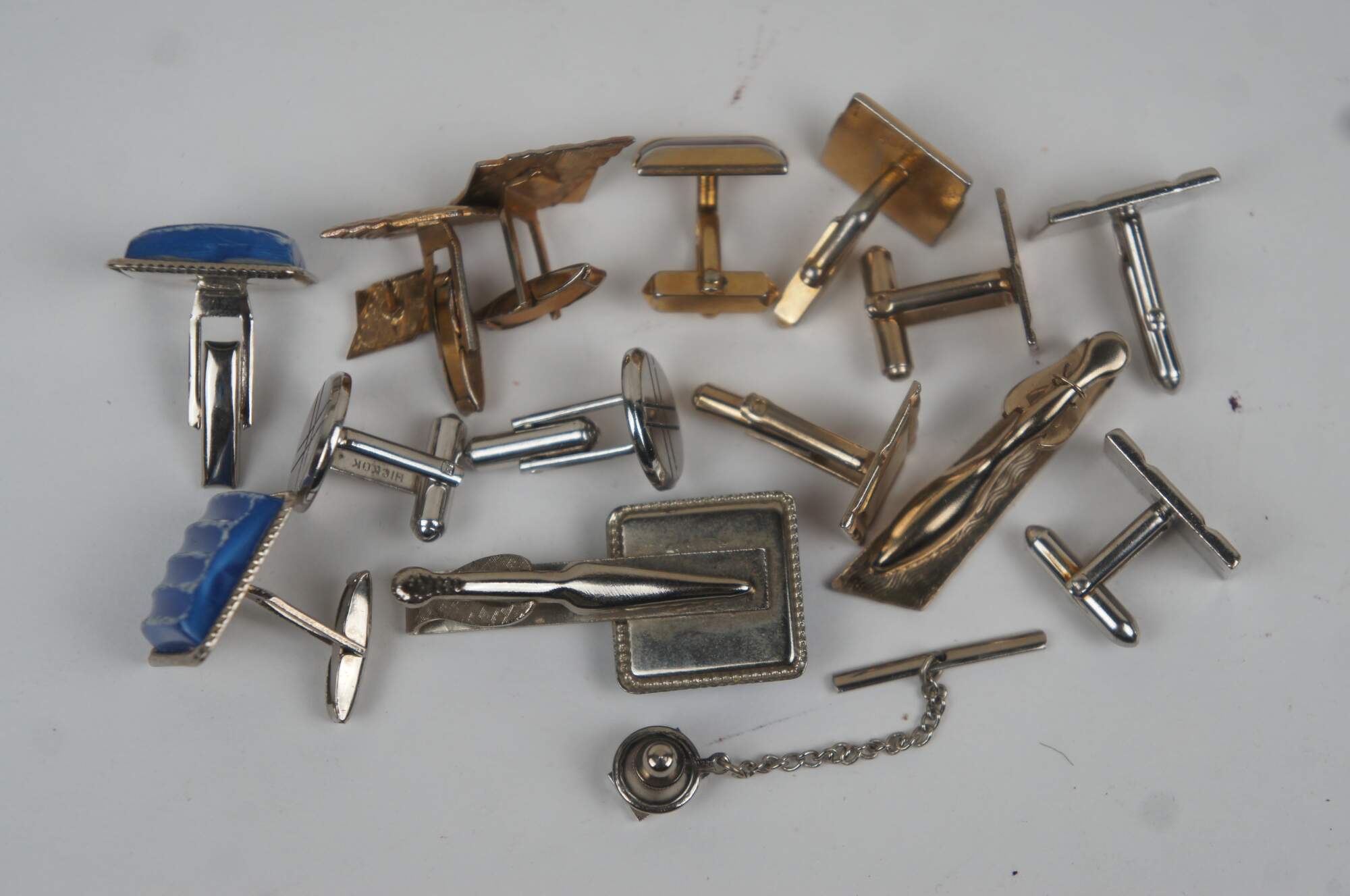 Total of 16 piece collection of mid 20th century art deco cufflinks and matching tie tac / tie bars. Two pairs of just cufflinks. Two pairs of cufflinks with matching tie bar. Two pairs cufflinks with matching tie tac. Swank, Hickock.