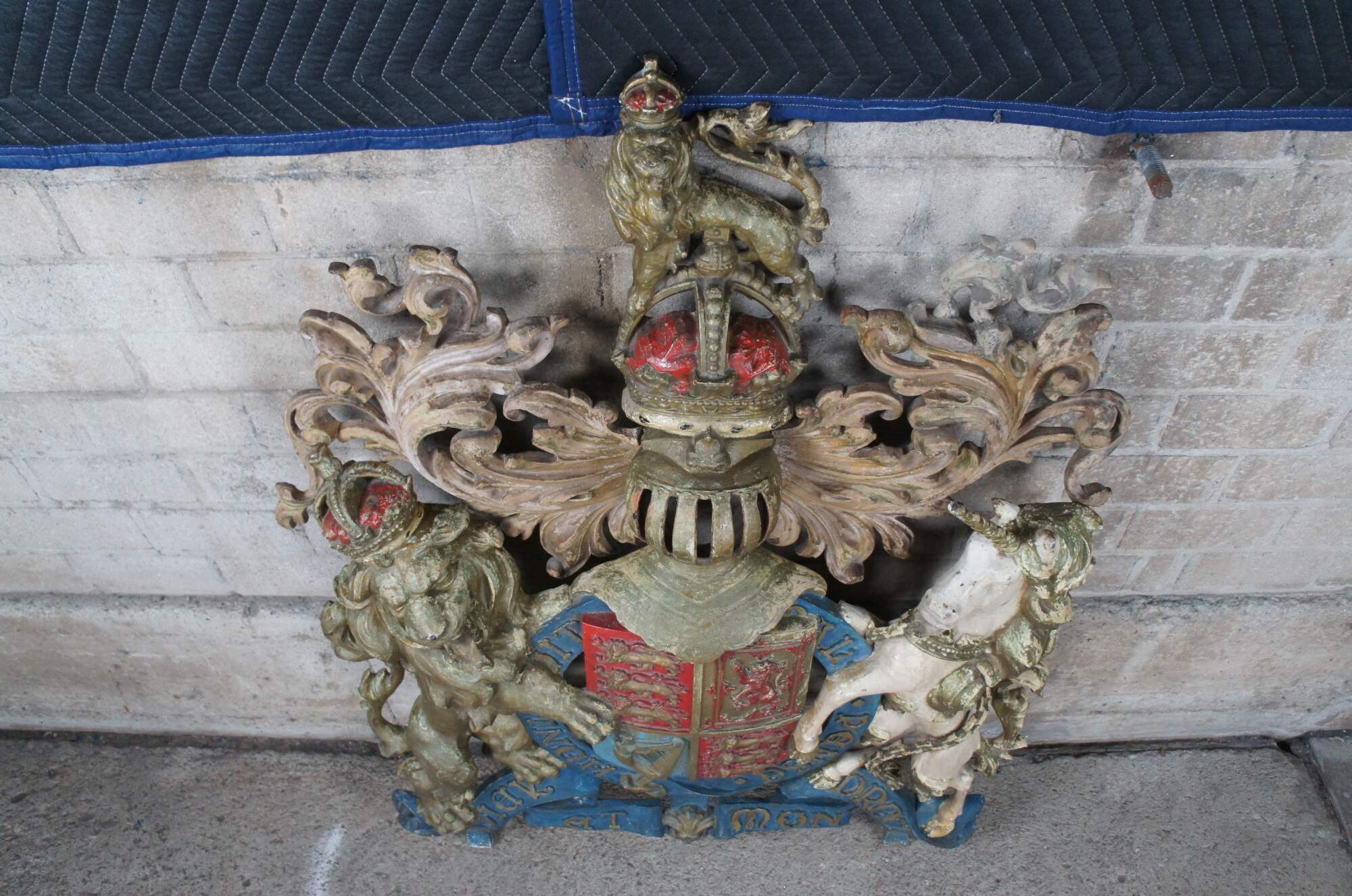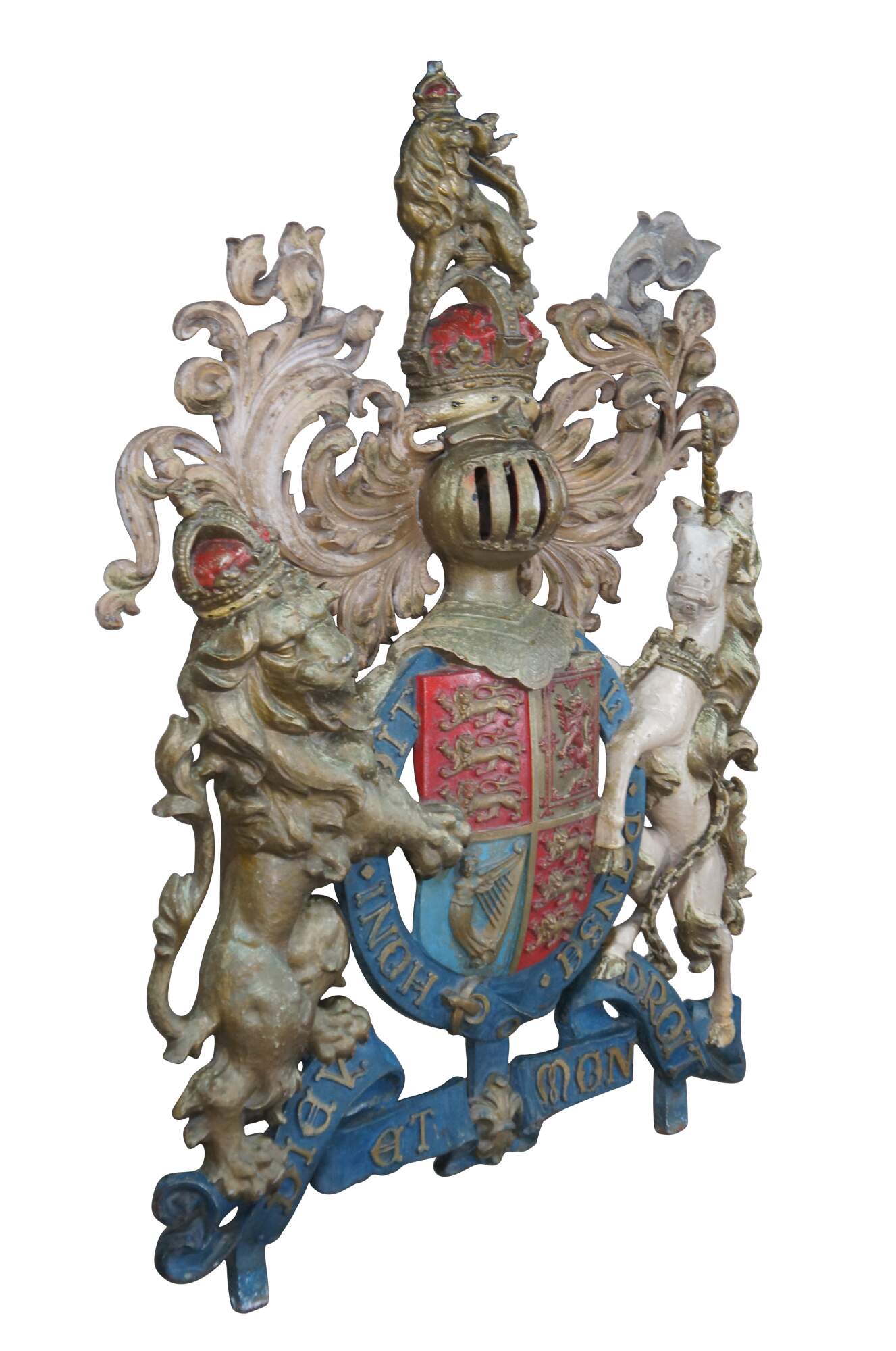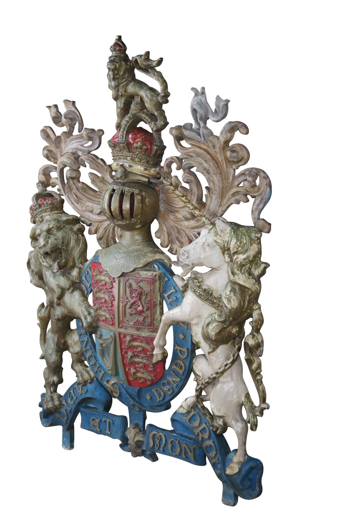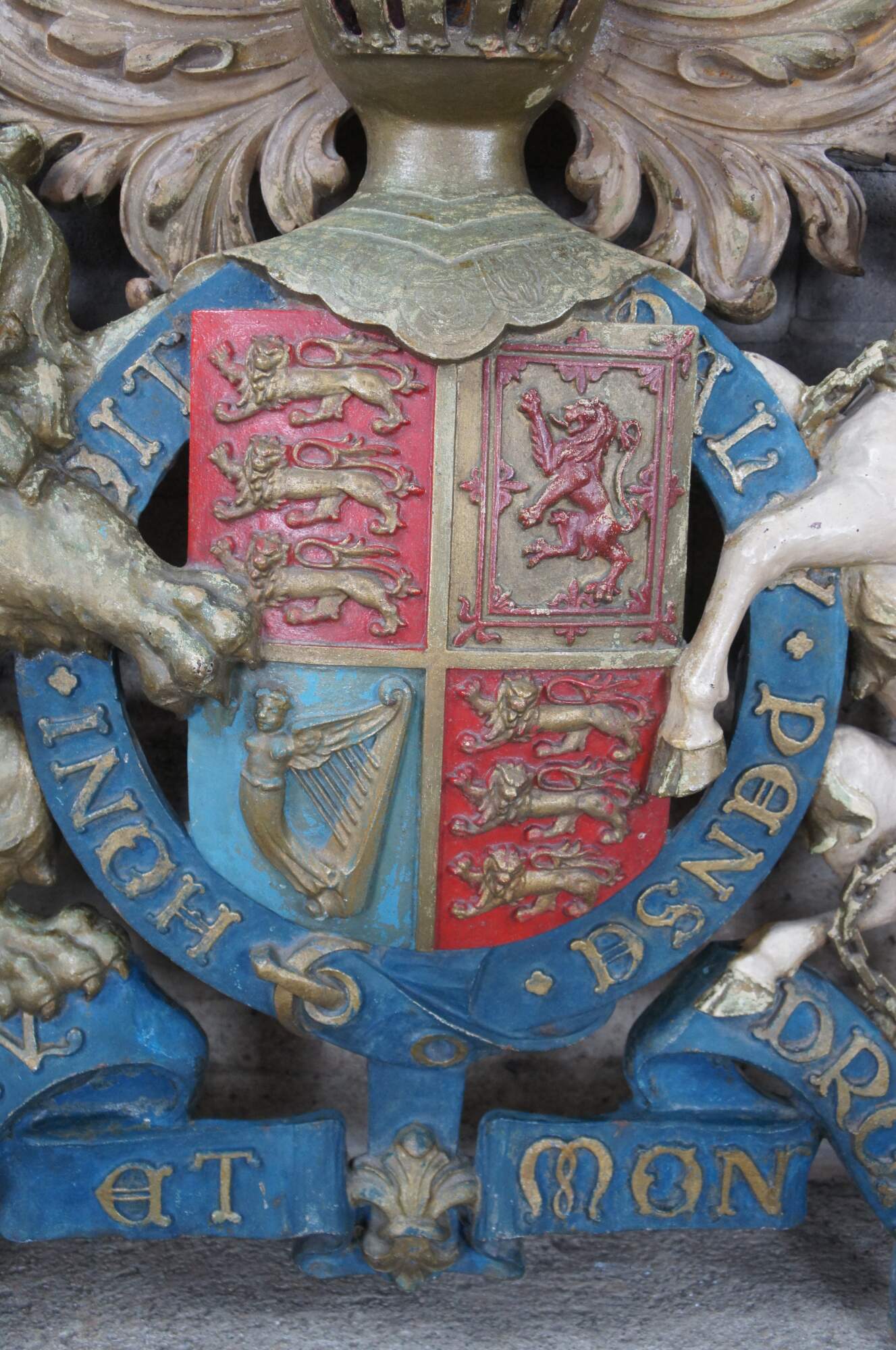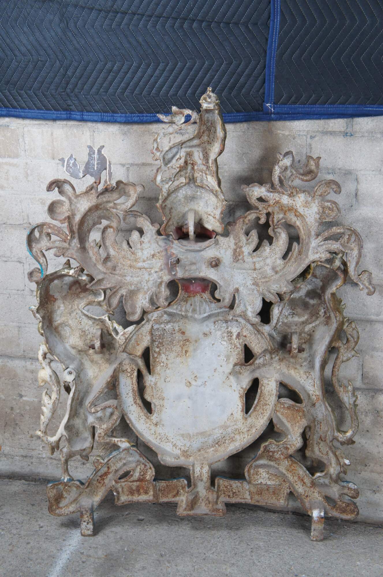 Very heavy and large Mid 19th Century English Cast Iron Royal Coat of Arms Shield or Crest. Made from solid Cast Iron from the Walter MacFarlane & Co, Saracen Foundry Possil Park Glasgow. This coat of arms was reclaimed from an English Great House in the 1980s.