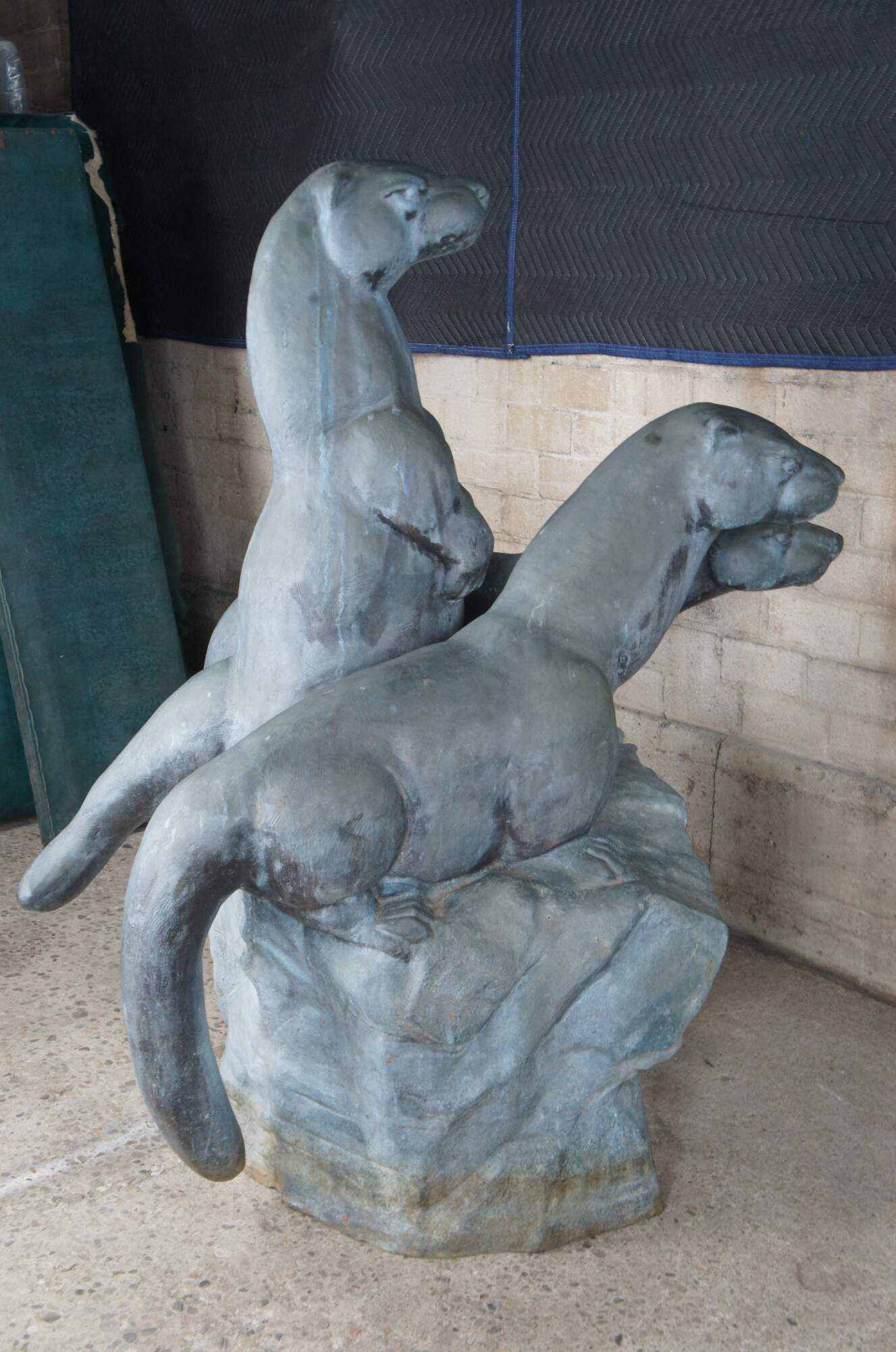 A very large and impressive Max Turner fountain statue. Made out of bronze featuring a trio of guardian Otters. Circa 1997. The otter symbolizes friendship, peace, kindness and family. The otter is also social and mischievous and a symbol of grace, empathy, happiness and never-ending curiosity.