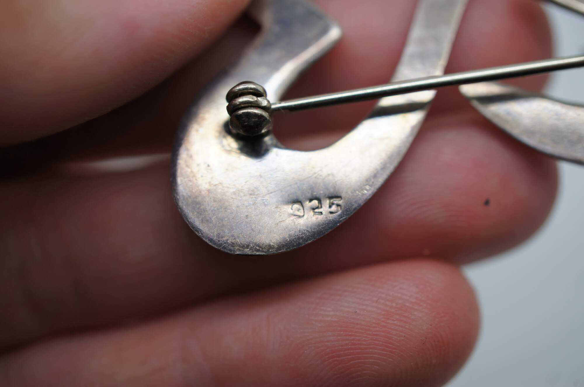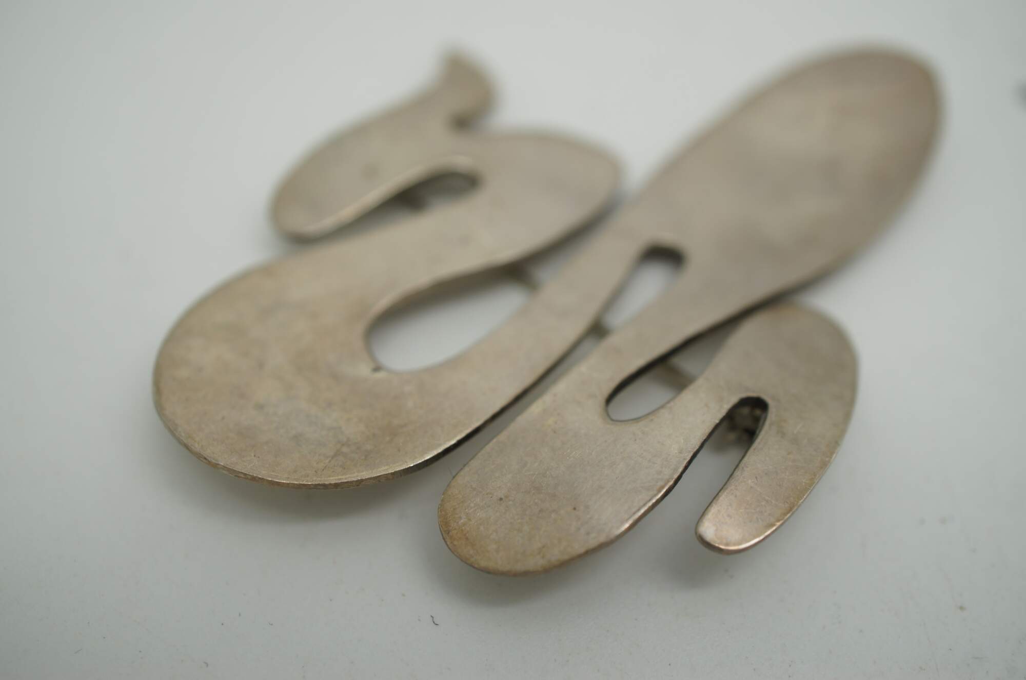 Pair of vintage Mexican 925 sterling silver pins / brooches - one flat abstract shape and one interlocking open ended hearts.