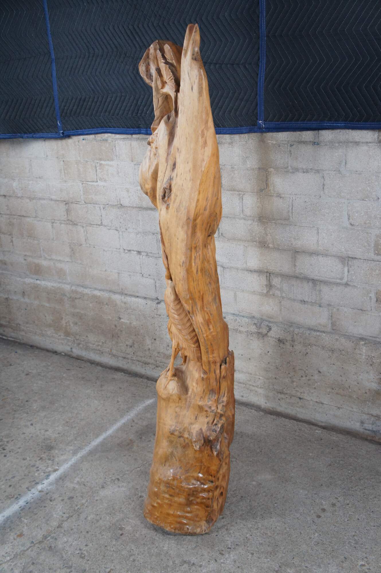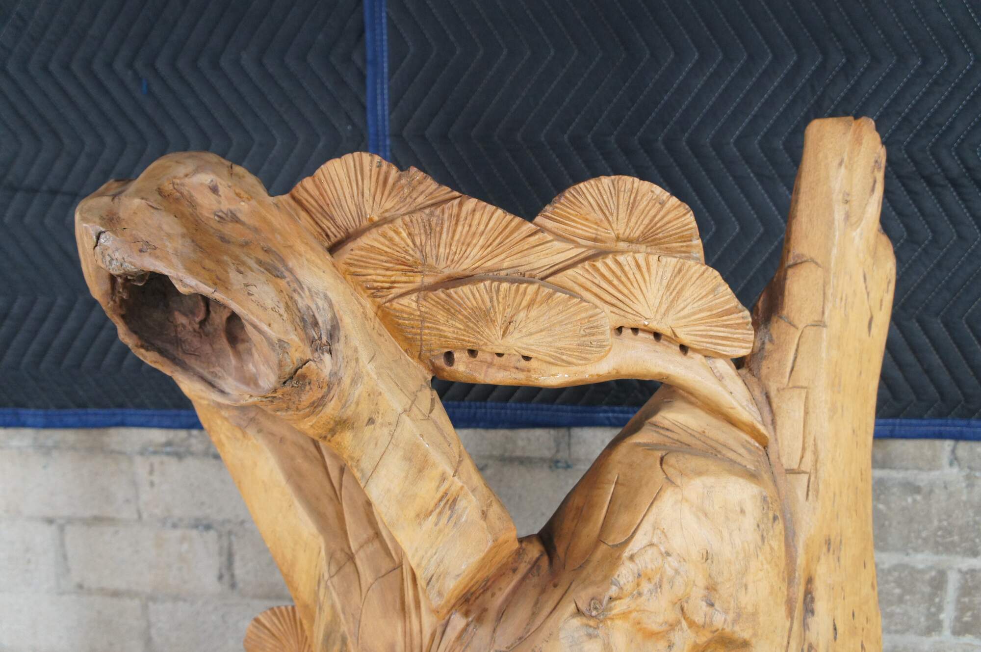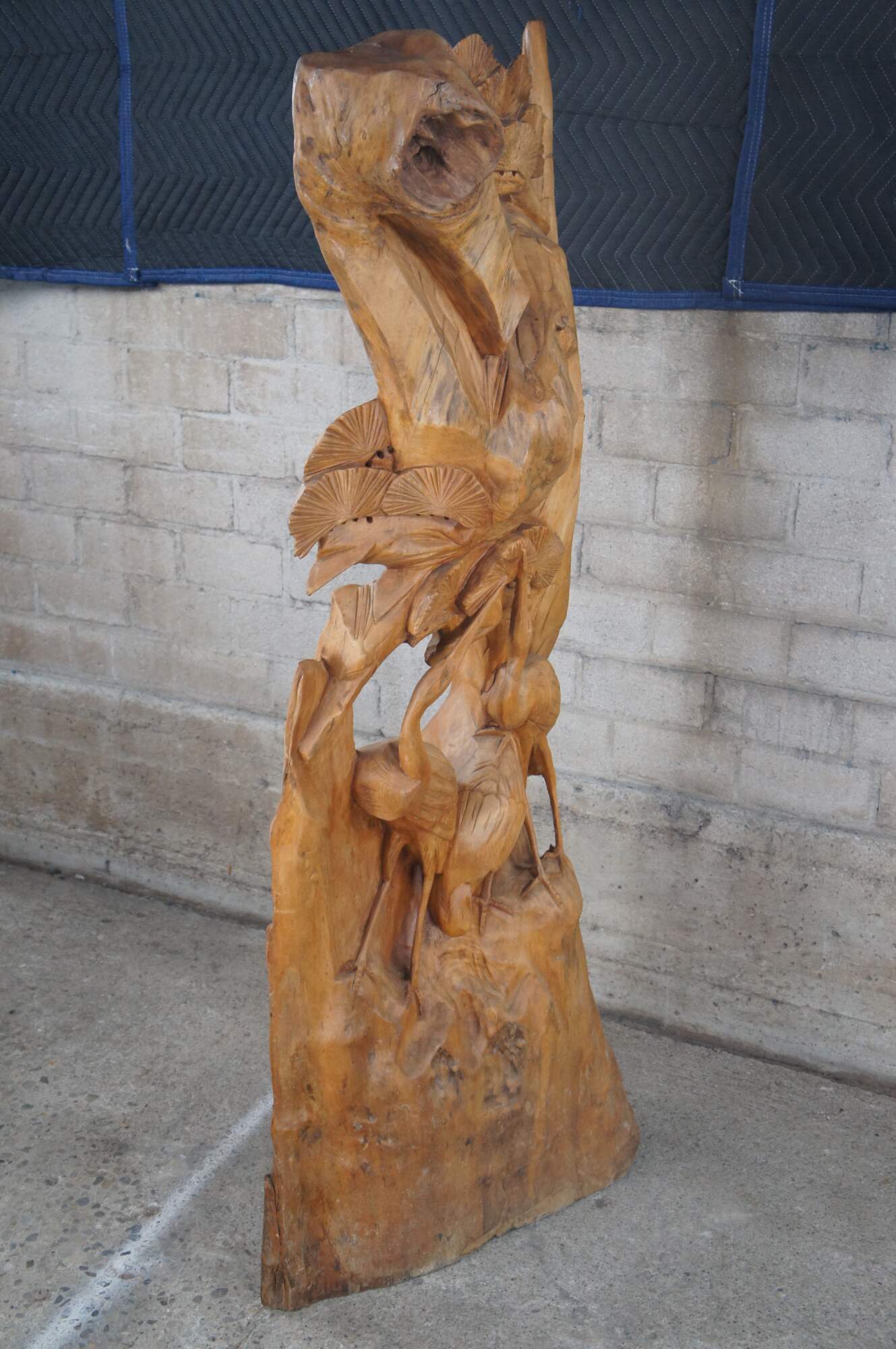 Hand Carved heron wildlife scene. The tree features three herons towards the base stretching upwards towards foliate. Beautifully designed with rustic patina
