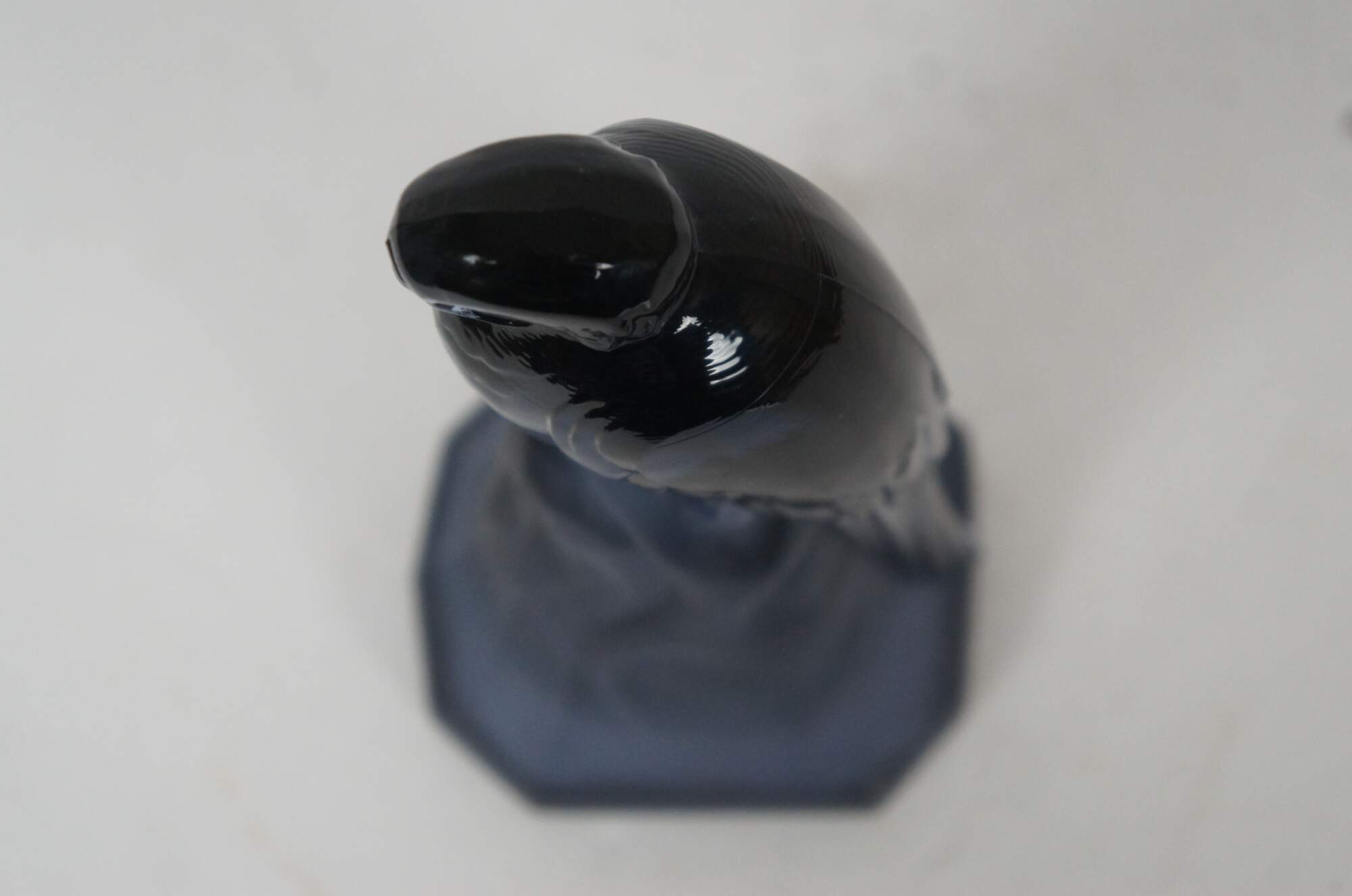 Rare antique art deco (1930's) Charles Graffart for Val St Lambert amethyst / blue-purple glass figurine in the shape of a parakeet / parrot / bird perched on a satin glass rock. Belgique Belgium