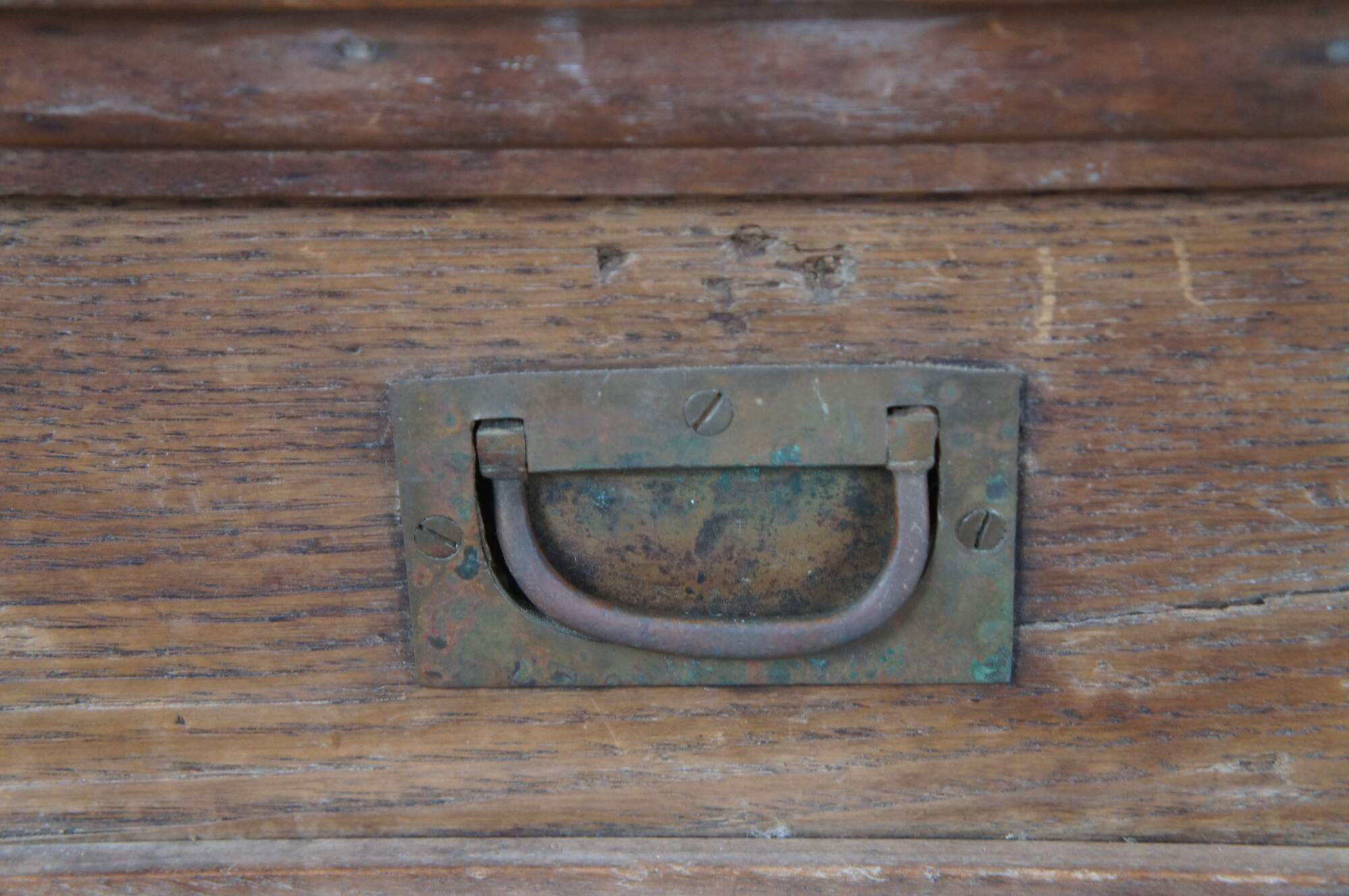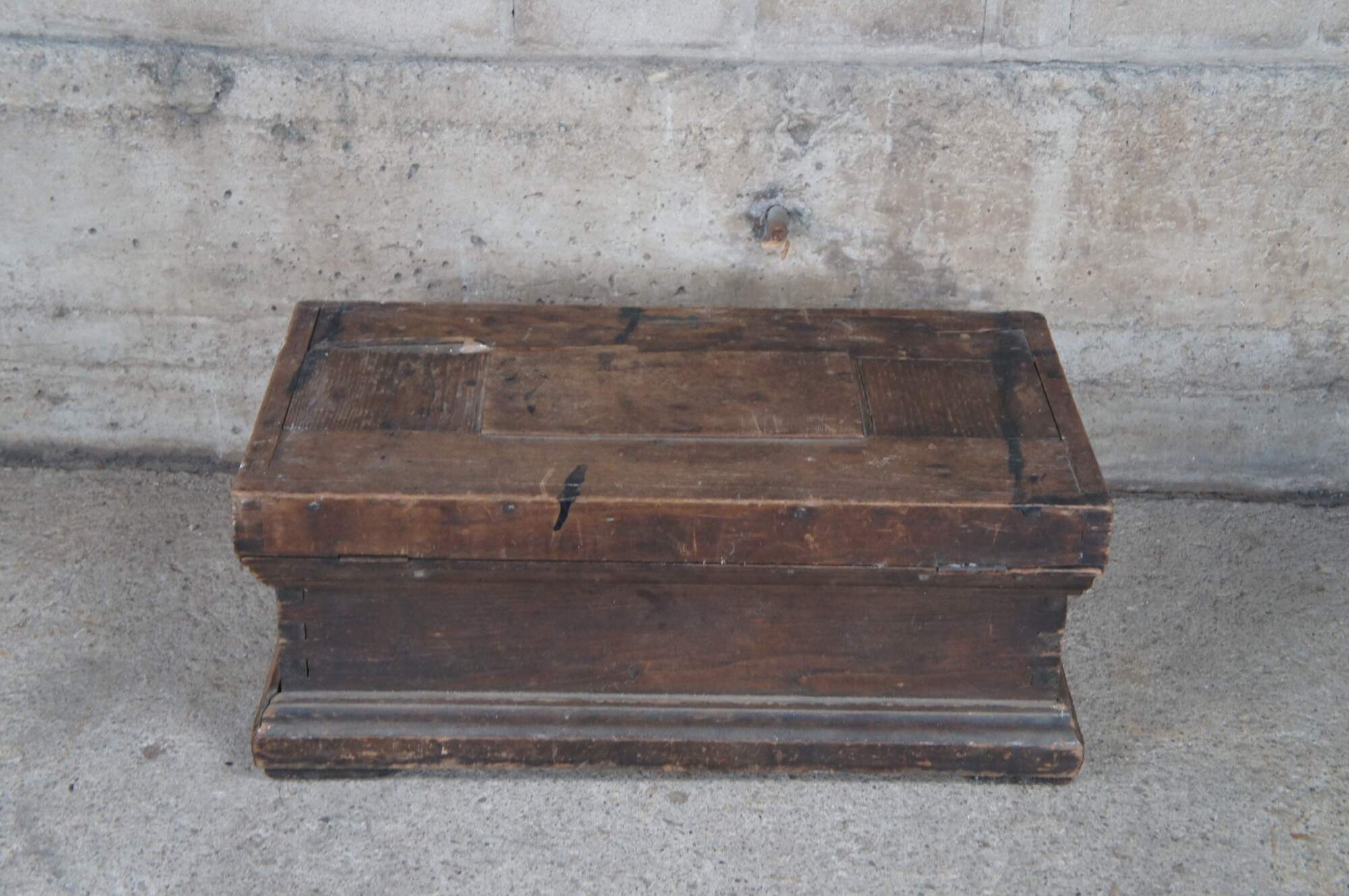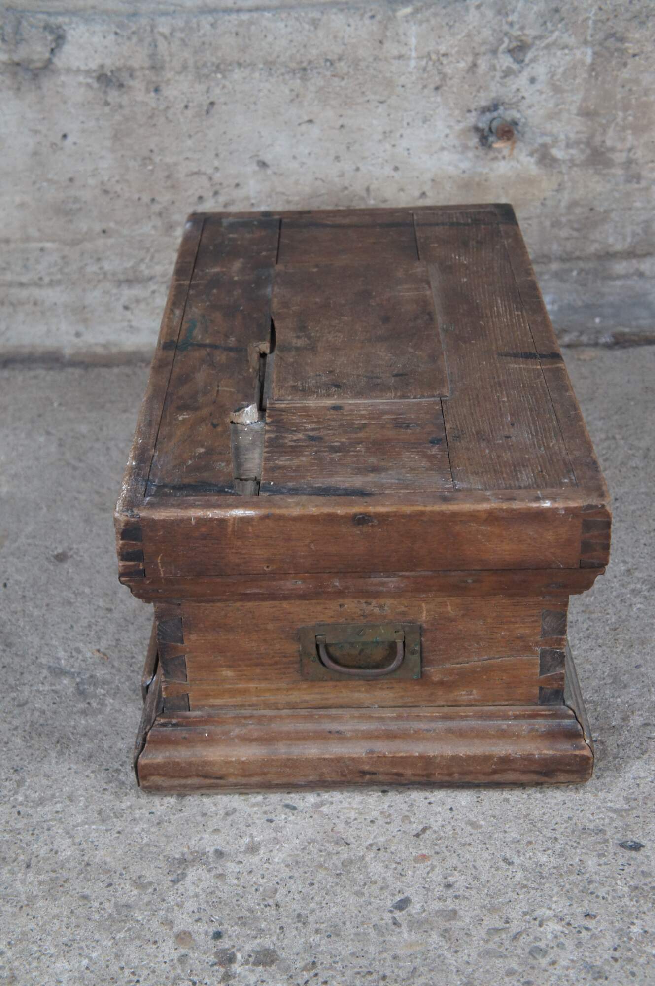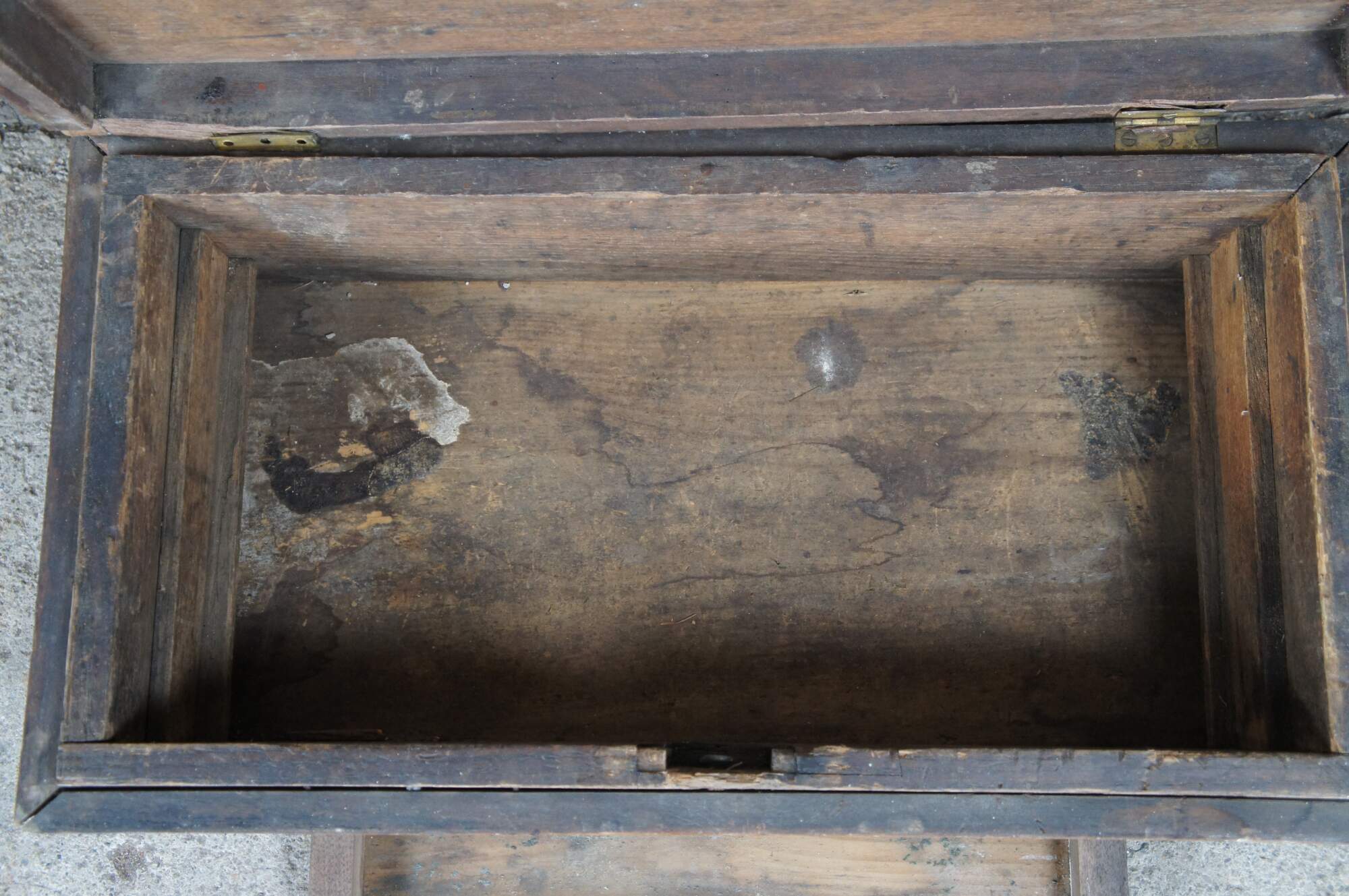 Good Overall; wear and distressing commensurate with age. The lock is missing. Staining to interior