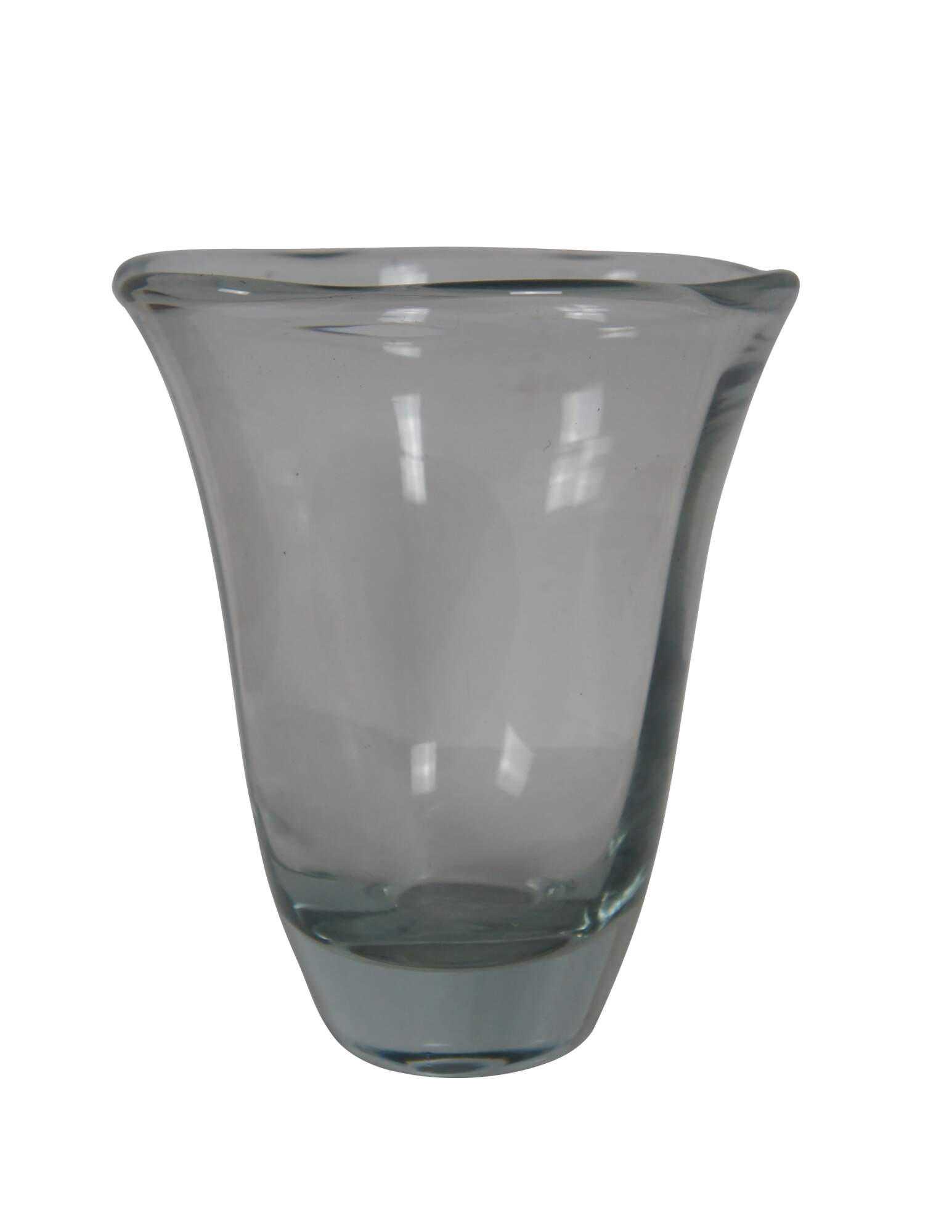 Large vintage Swedish Strombergshyttan crystal flower / tulip vase with flared mouth and waving edge. Polished pontil.