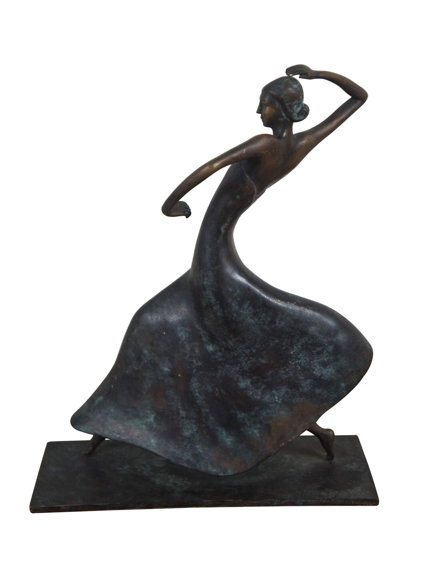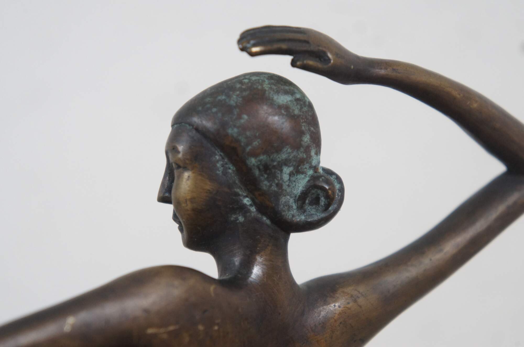 Rare late 20th century bronze statuette / figurine by Maitland Smith, inspired by Karl Hagenauer's 1930's art deco sculpture of dancer Josephine Baker. Hand made in Philippines.
