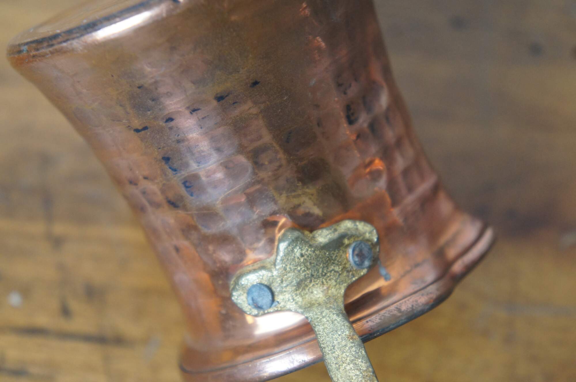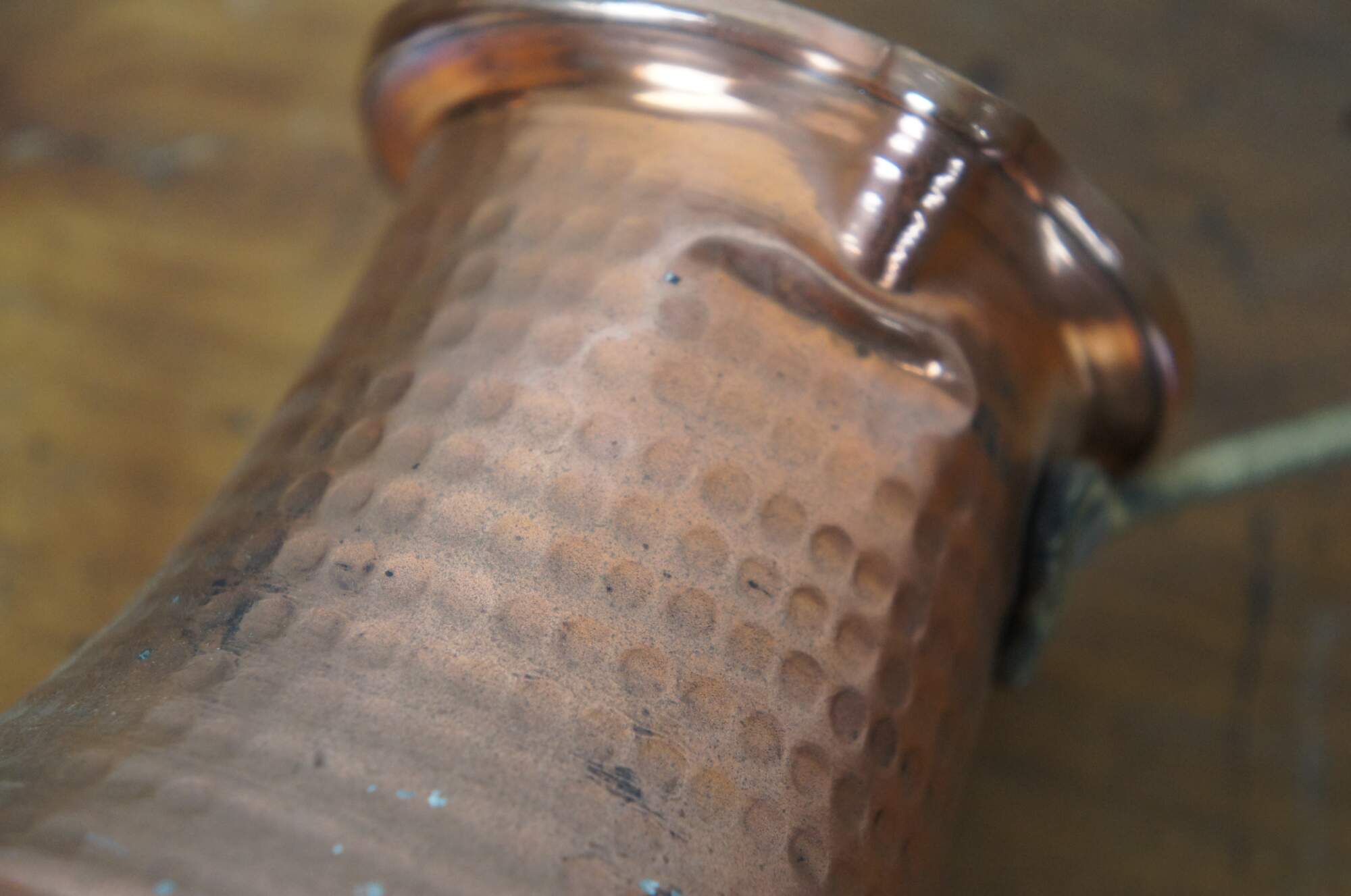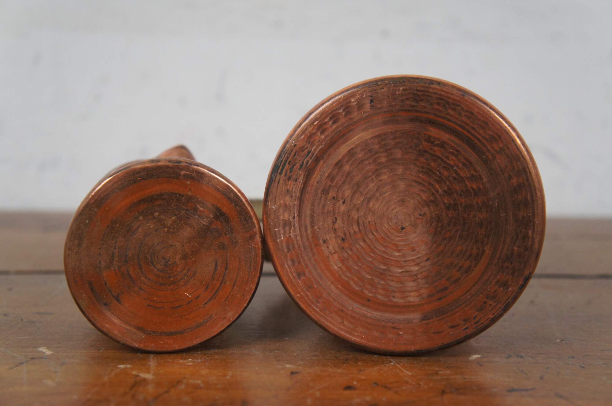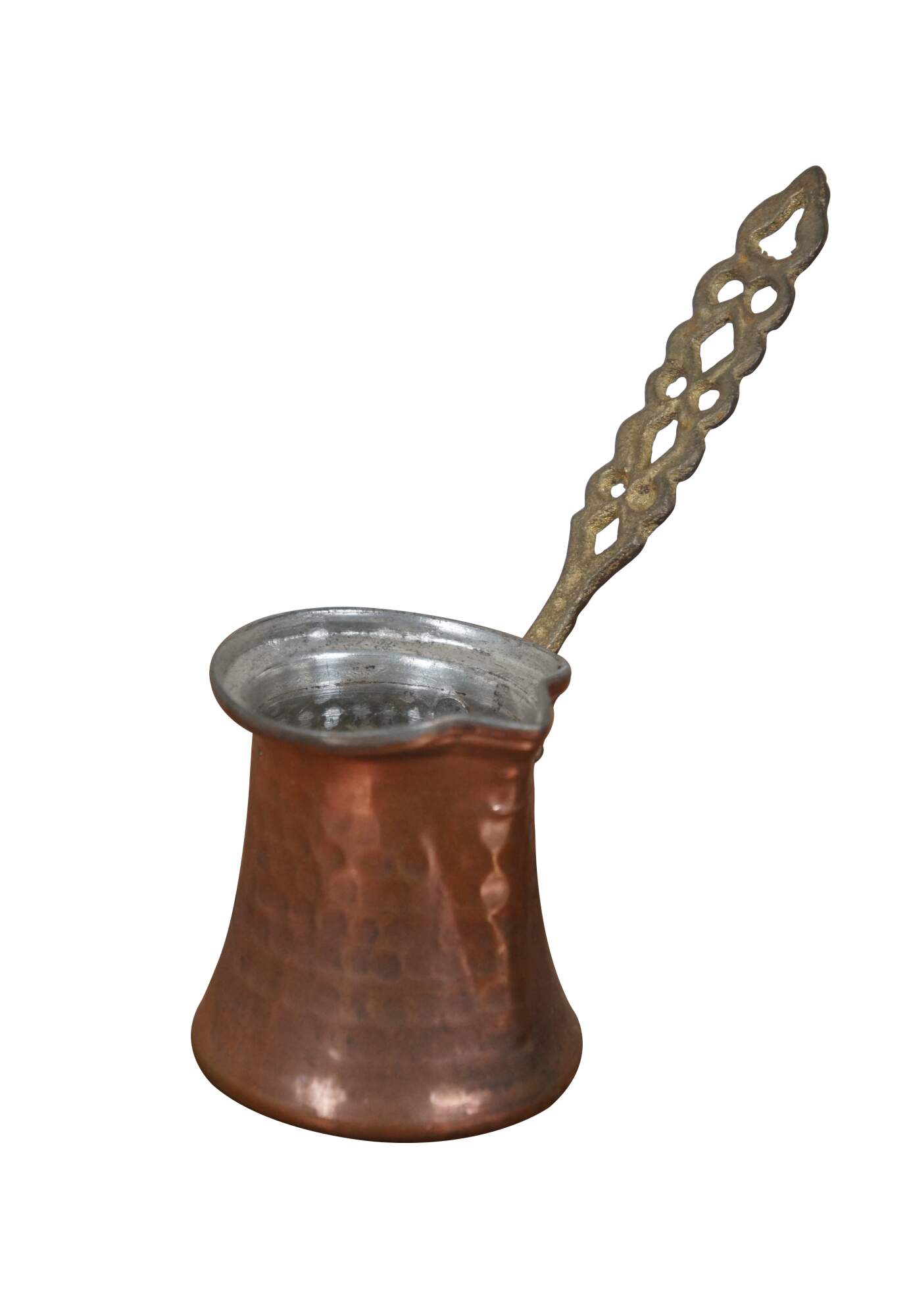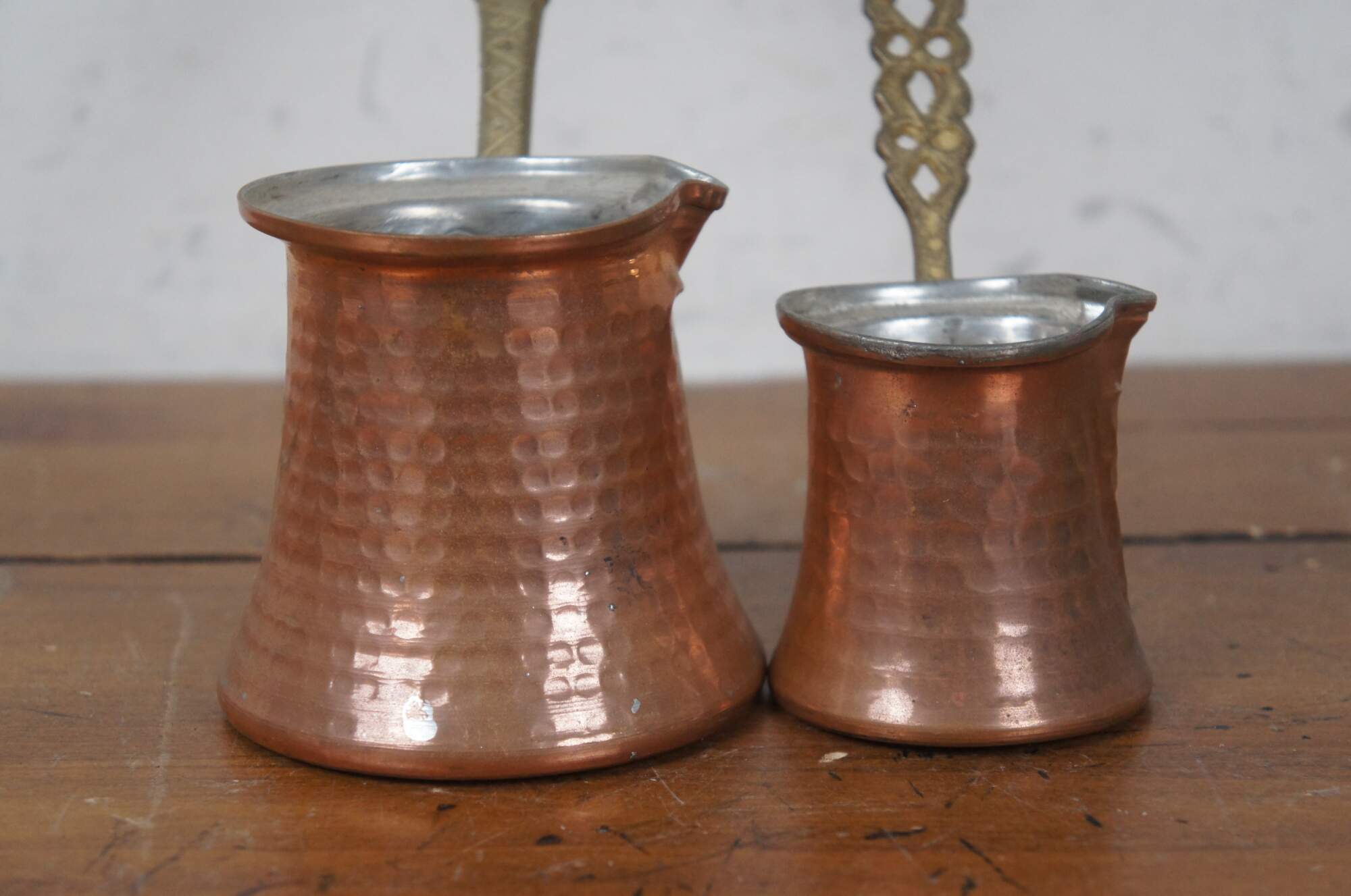 Pair of vintage hammered copper Turkish coffee pots / ibriks with pierced brass handles.