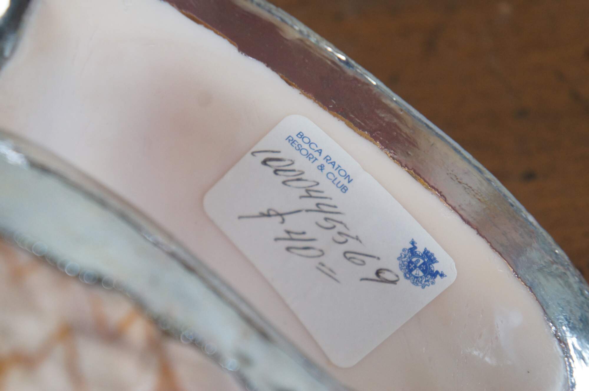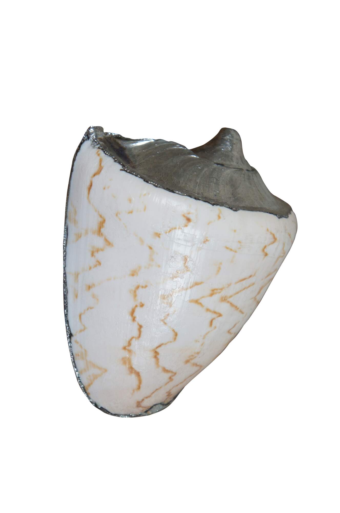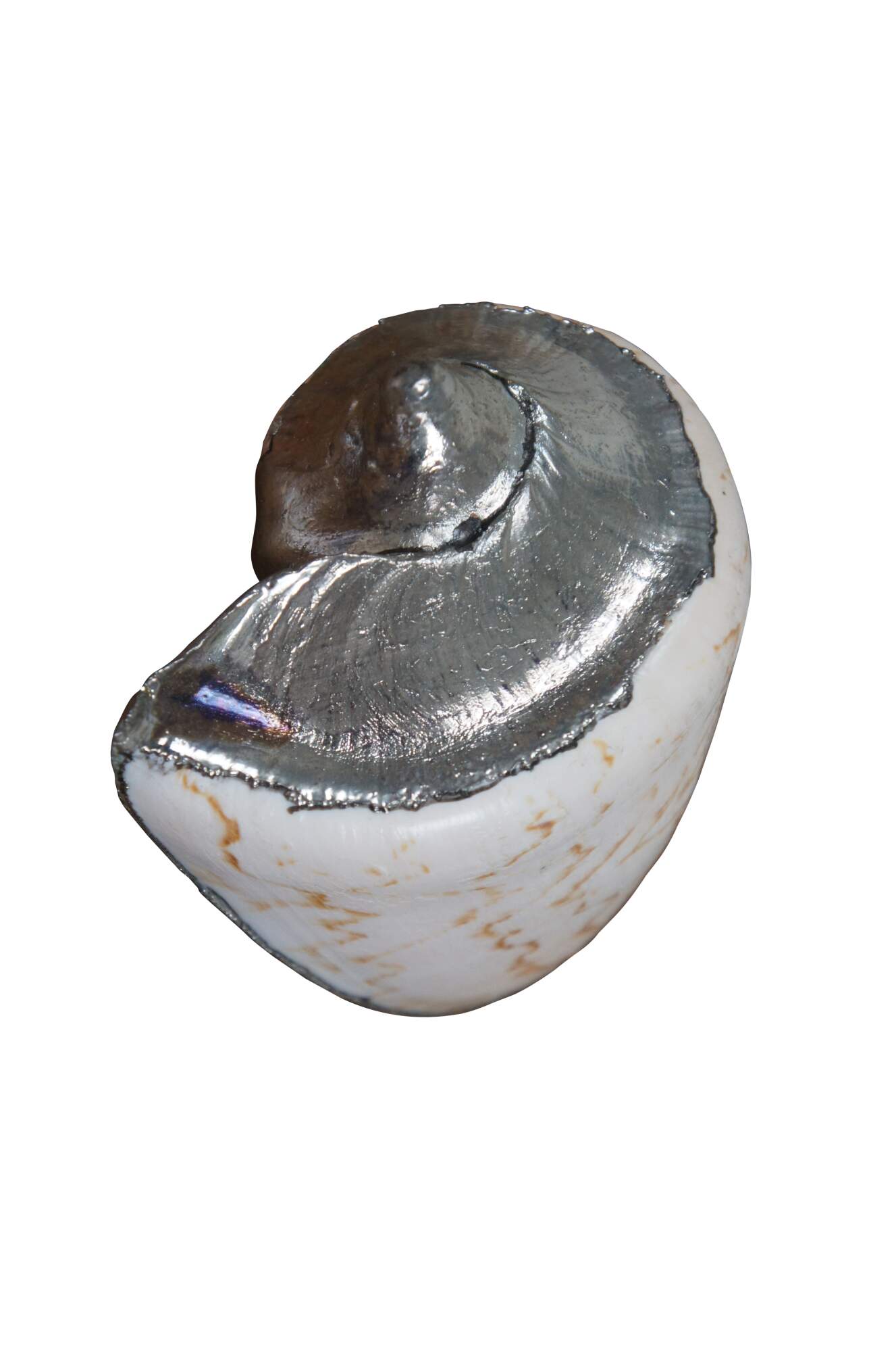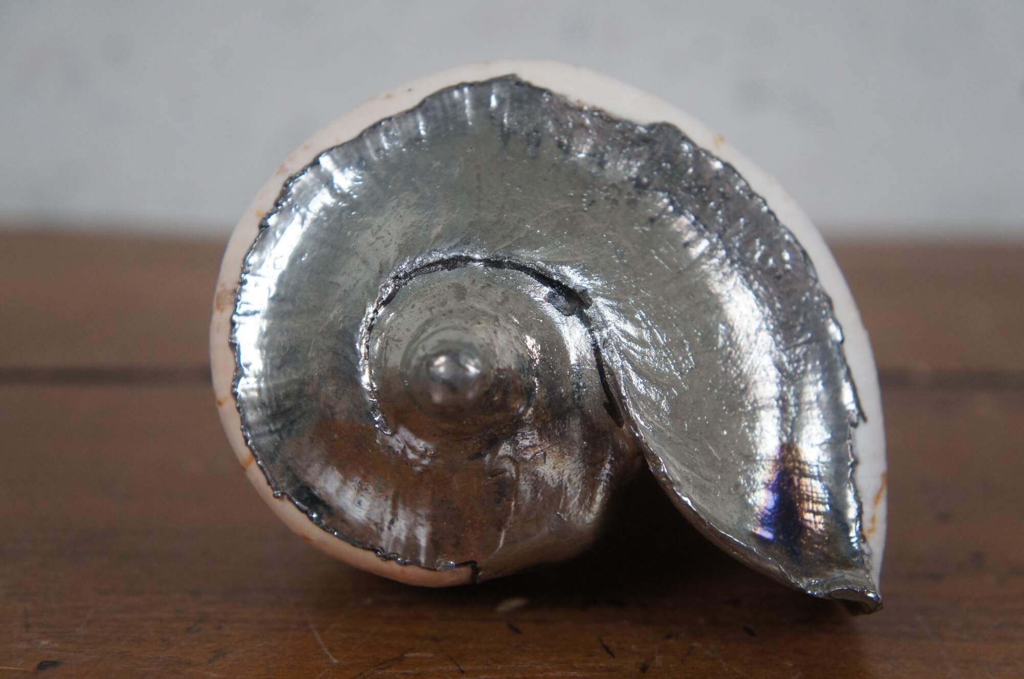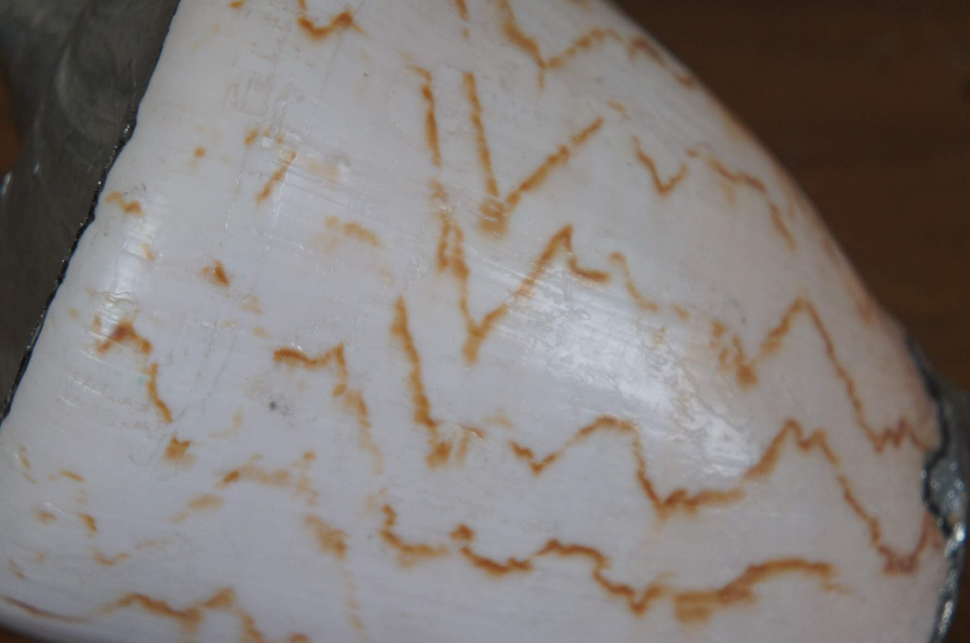Late 20th century natural souvenir sea shell - Cymbiola Nobilis aka Noble Volute - decoratively clad with silver trim. Originally purchased at the Boca Raton Resort and Club.