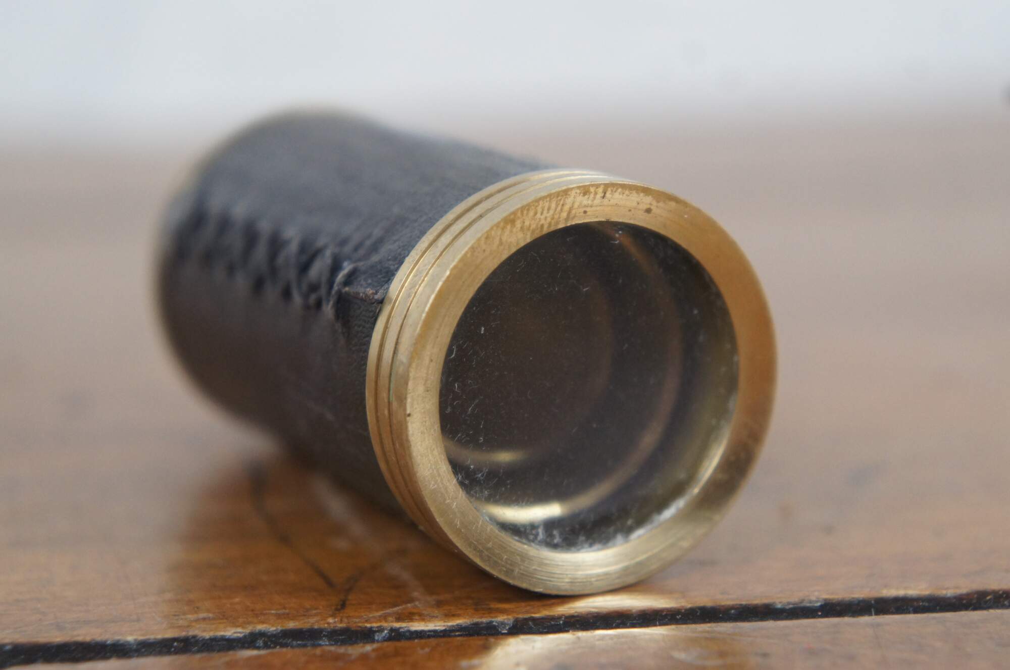 Late 20th century nautical spyglass telescope, made of brass with main body wrapped in black bonded leather.