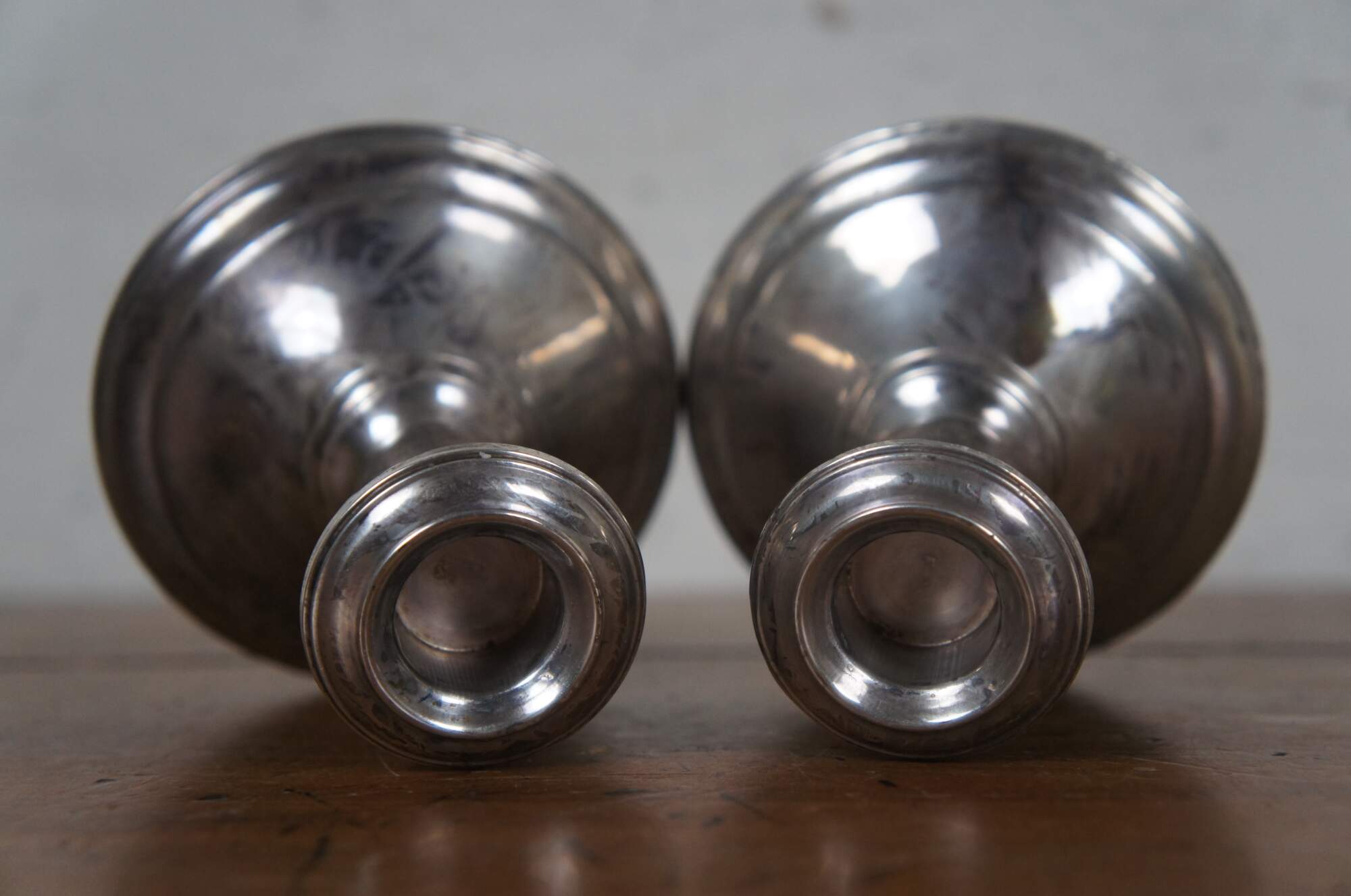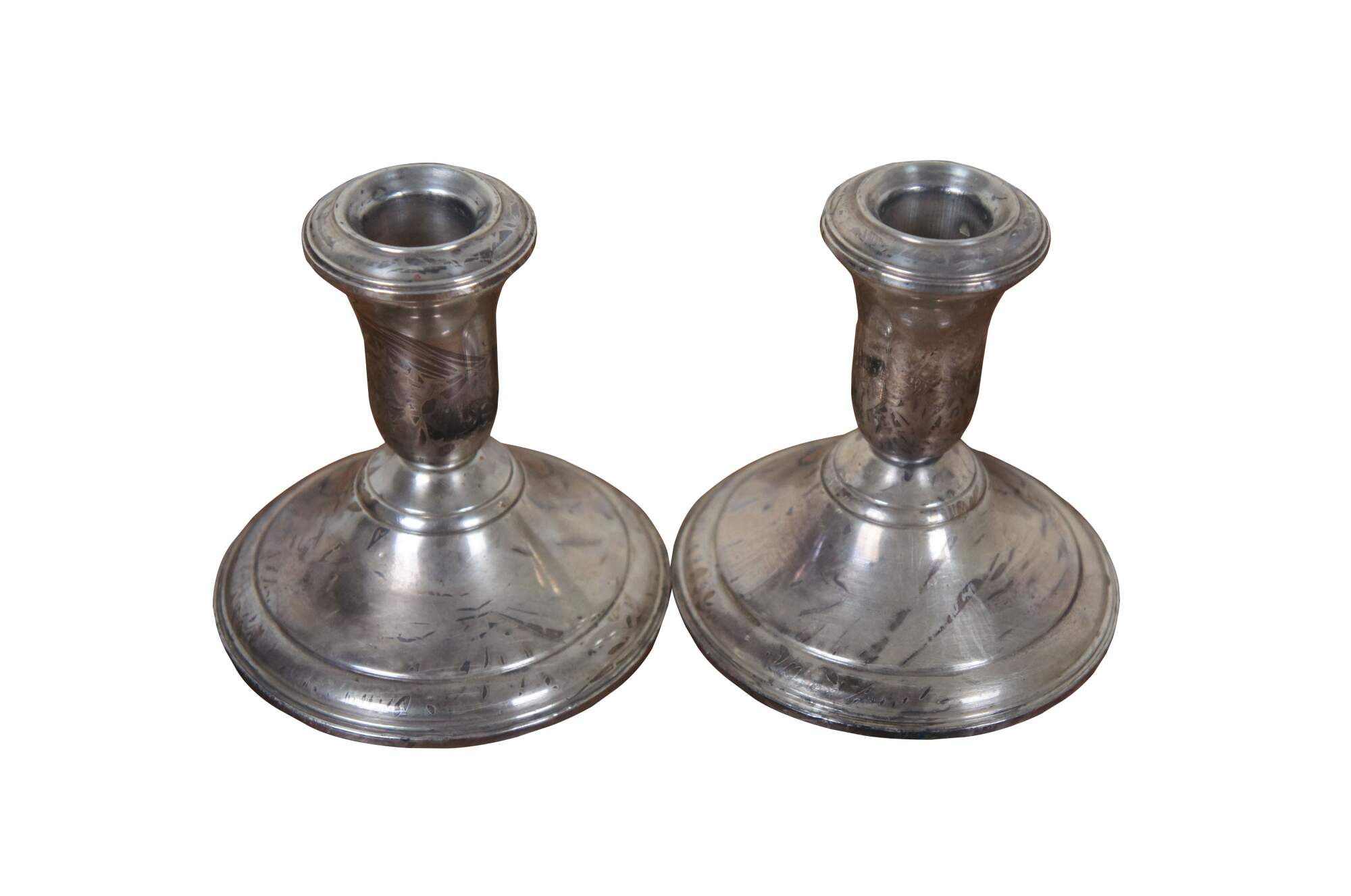 Late 19th - early 20th century weighted sterling silver taper candlestick holders by the Ames Manufacturing Company.