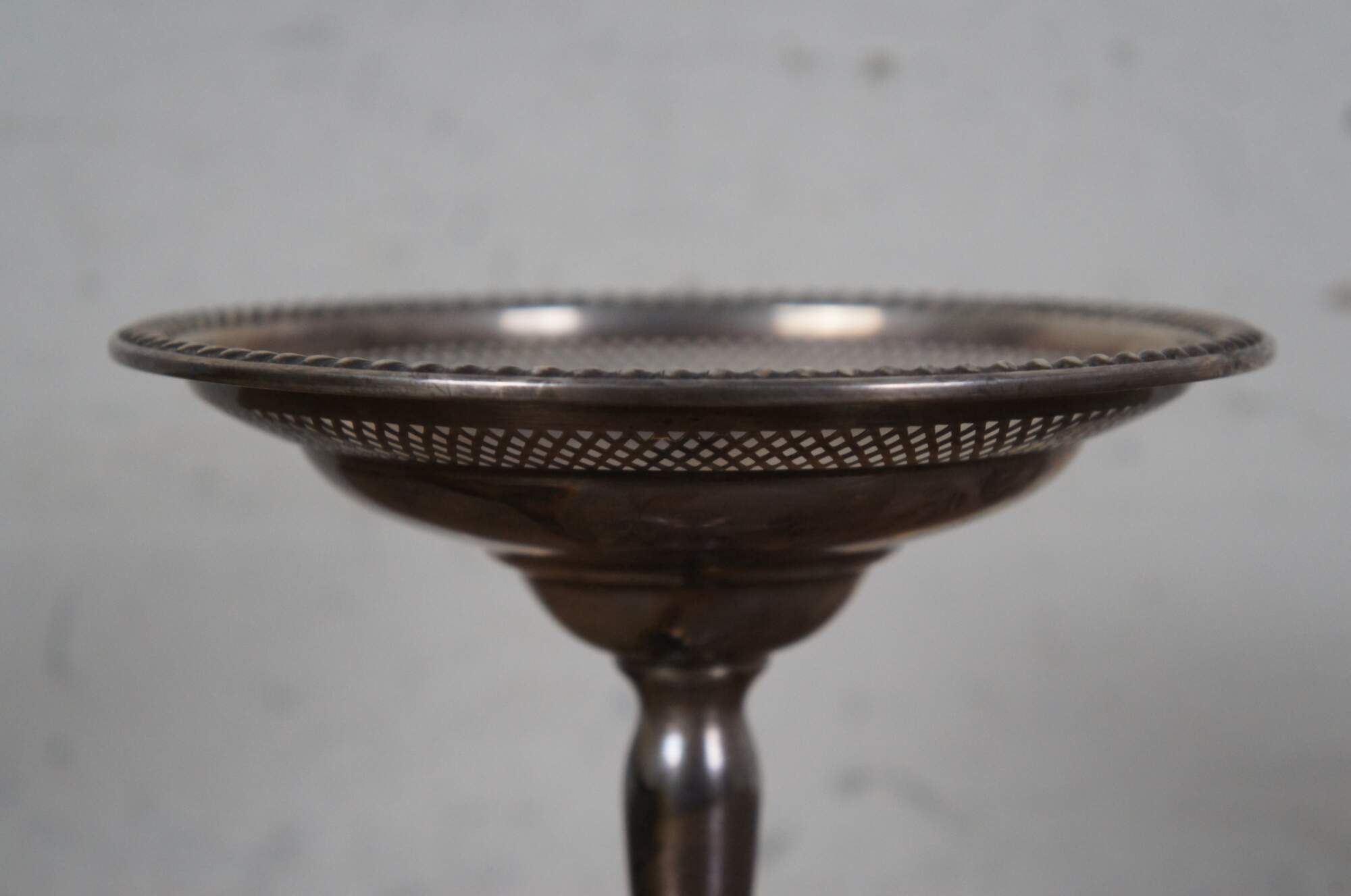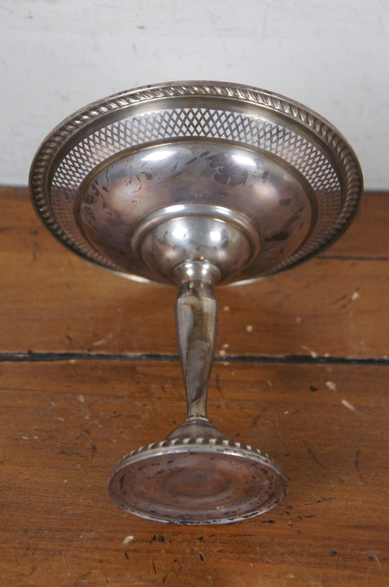20th century weighted, reinforced, sterling silver number 32 Cornwell compote by Watrous Mfg Co. Pedestal style nut / candy dish with rope twist border and pierced reticulated lattice detail.