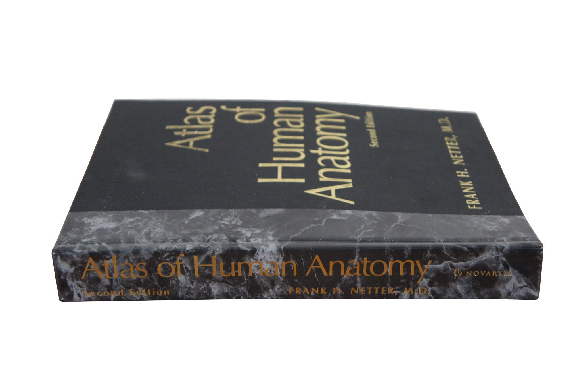 Atlas of Human Anatomy - Second Edition by Frank H. Netter, M.D. - Arthur F. Dalley II, Ph.D., Consulting Editor - published by Novartis, East Hanover, New Jersey, 1997 - Seventh Printing - ISBN 0-914168-80-0 - Printed in USA. Hard bounc cloth cover with marbled spine; no jacket.