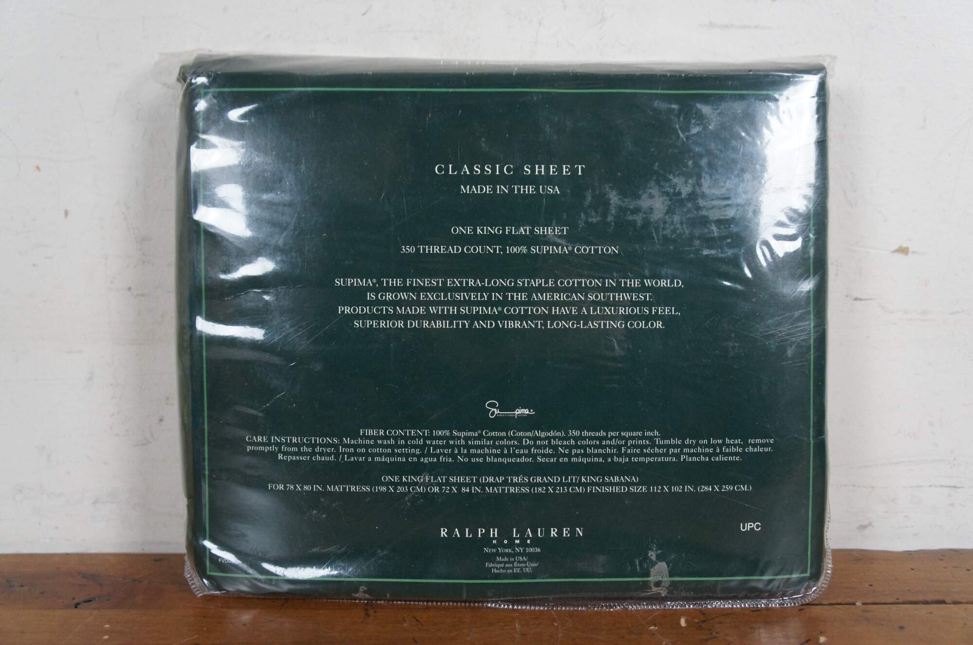 Vintage new old stock Ralph Lauren Classic King size flat sheet. Made in USA. 350 thread count. Forest green 100% Supima Cotton with suerior durability and luxurious feel. For 78" x 80" mattress or 72" x 84" mattress.