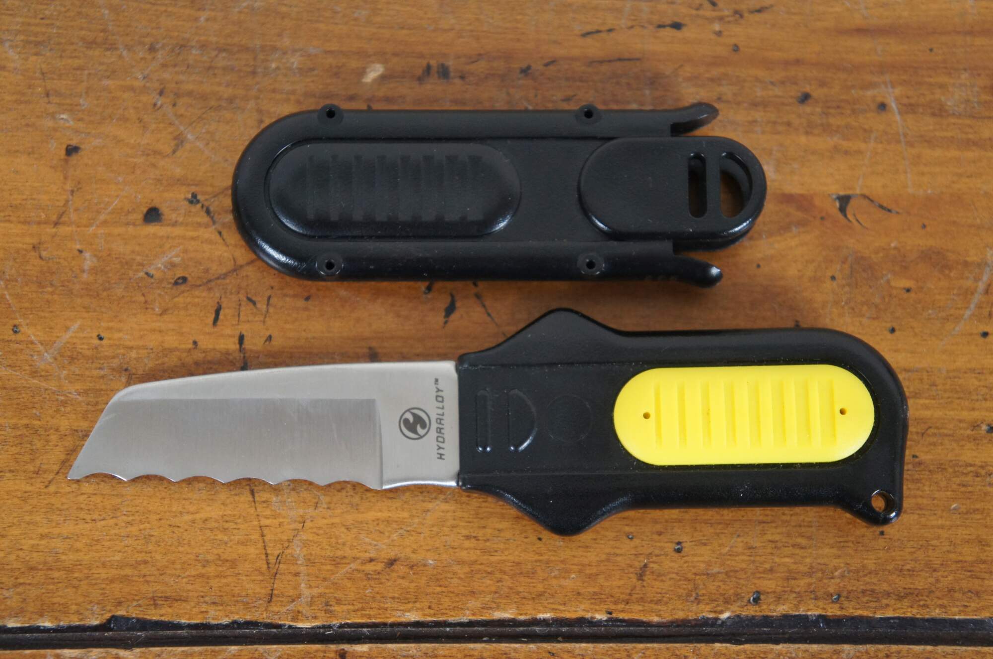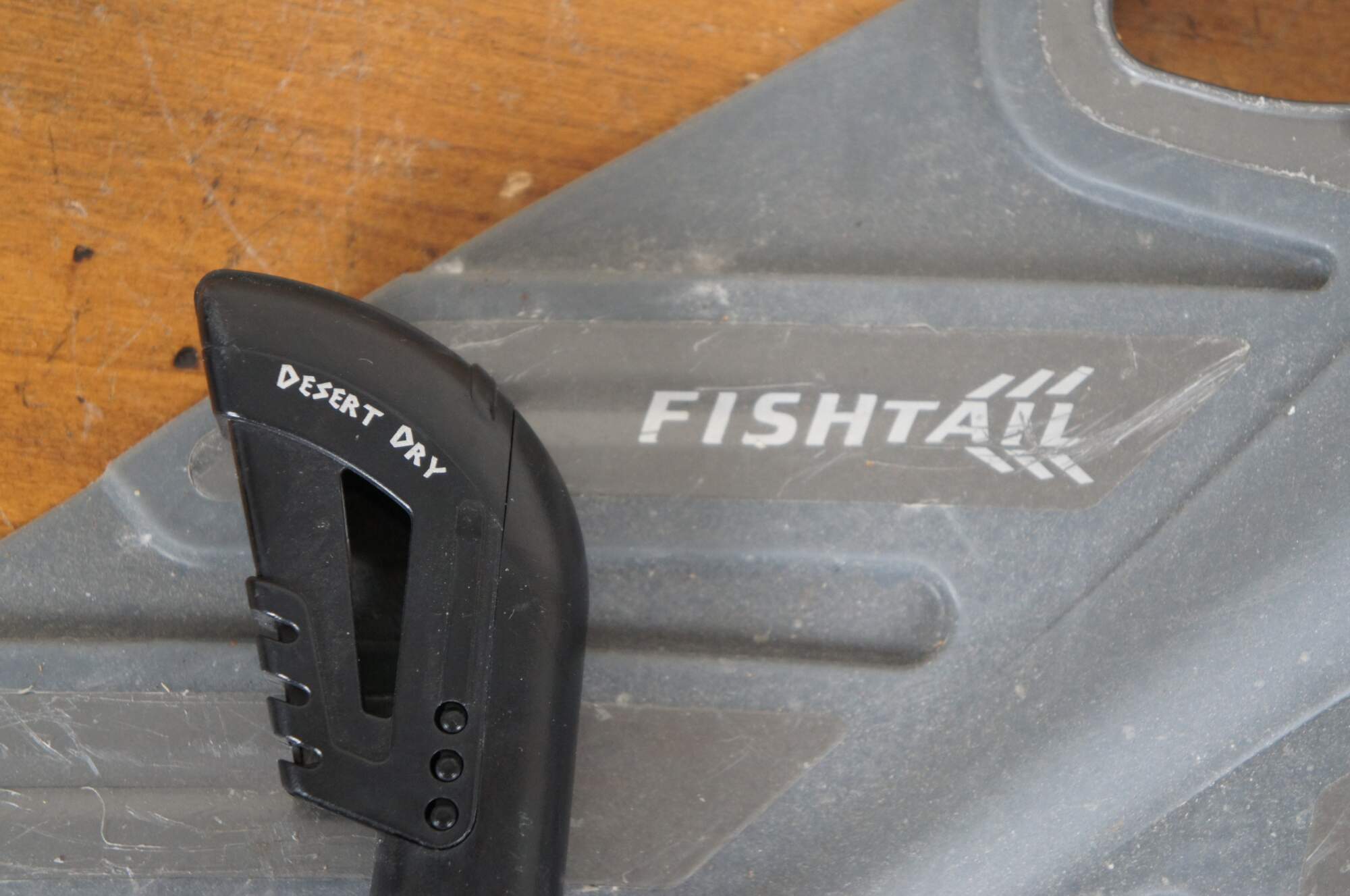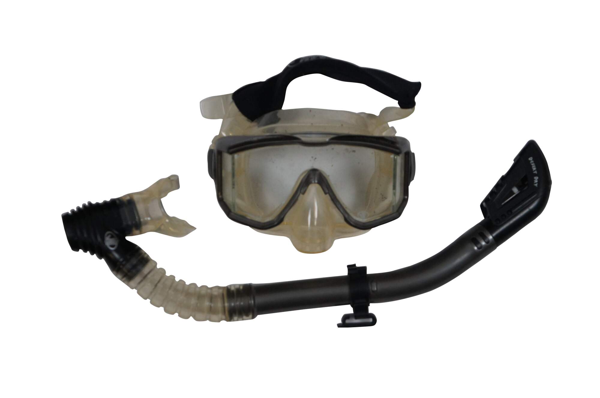 Six piece set of adult snorkel gear. Fishtail swin fins Size 42-43 / 8-9. Made in Italy. Body Glove Desert Dry snorkel and Clear-Cut 3 goggles / mask. Remora Underwater Kinetics, Hydralloy scuba dive knife and sheath. Includes Body Glove drawstring gear bag.