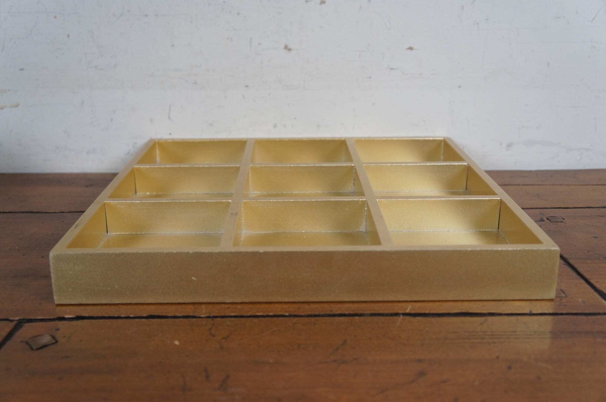 Coffee table sized tic tac tow game board and pieces featuring a gilded wood game board and white X's and O's. Made for Z Gallerie.