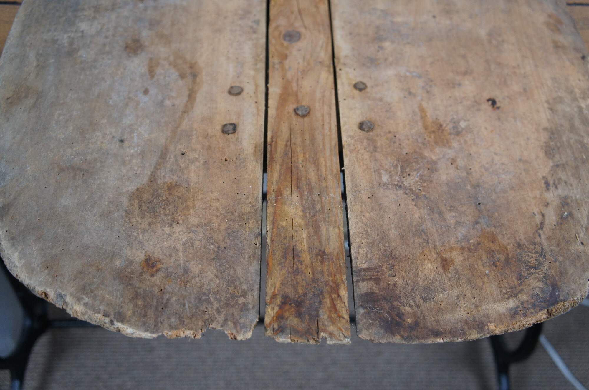 Large primitive antique bread cutting board / peel with backstop and handle, designed for removing loaves of bread from a brick oven.