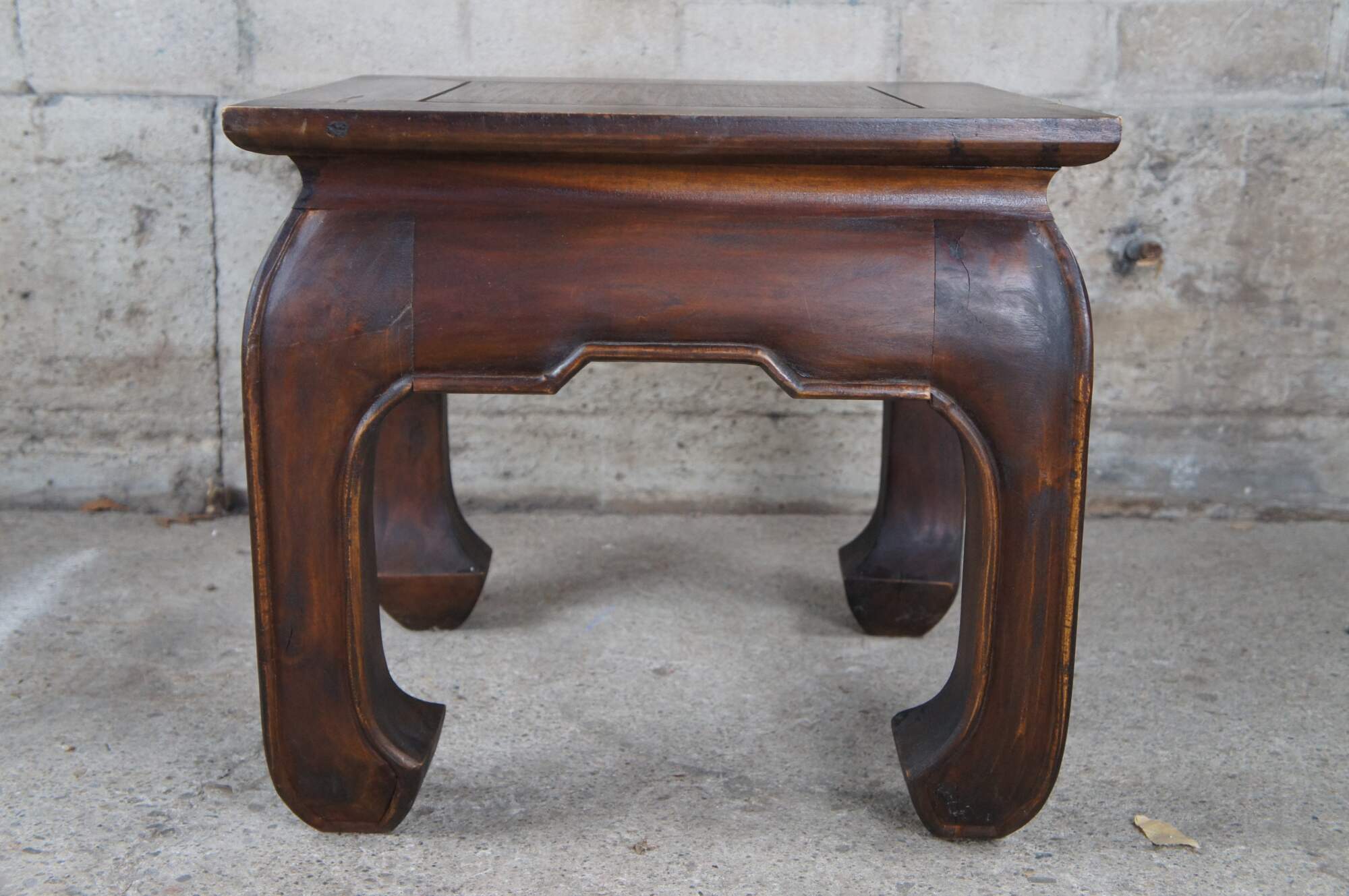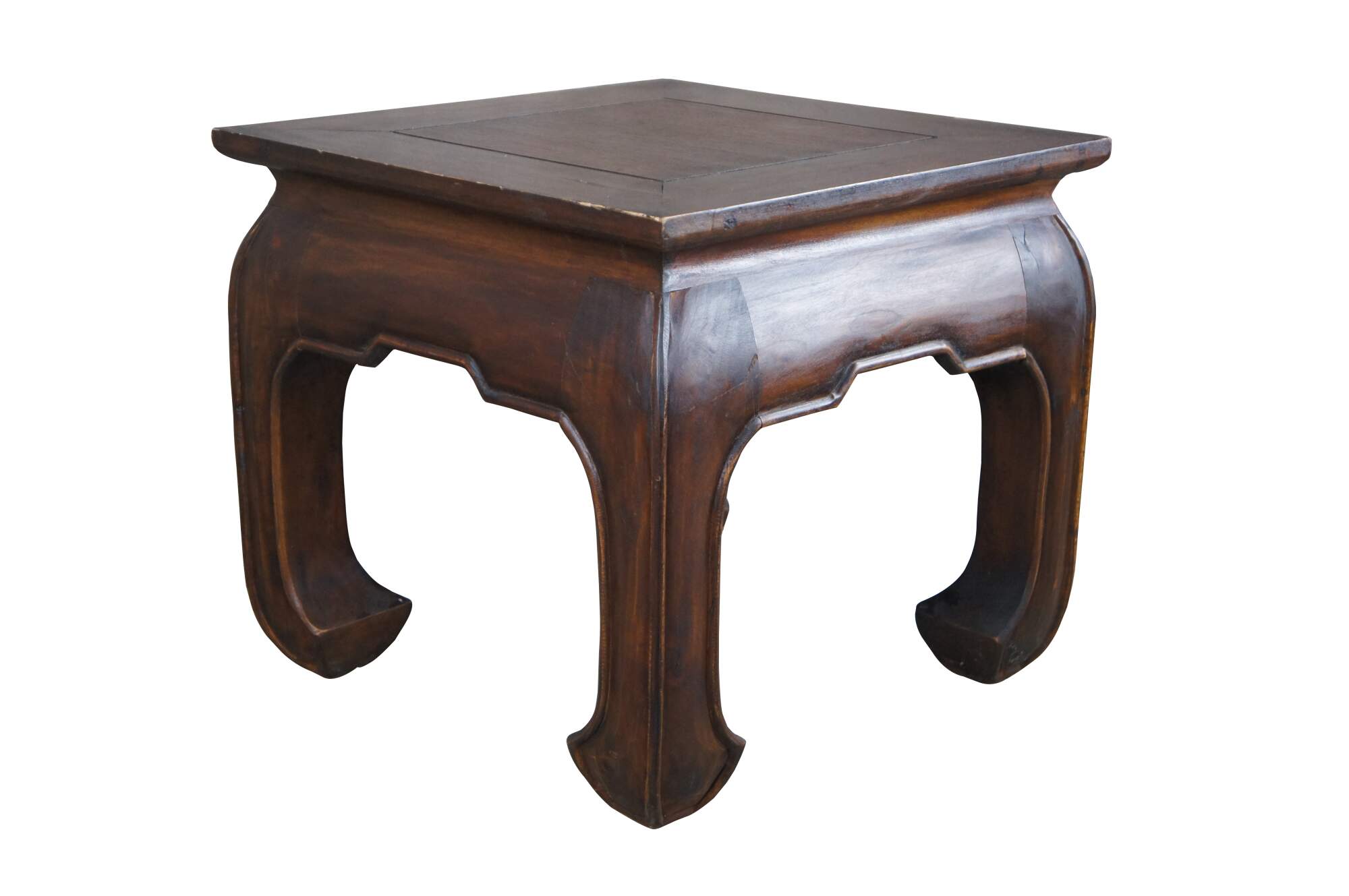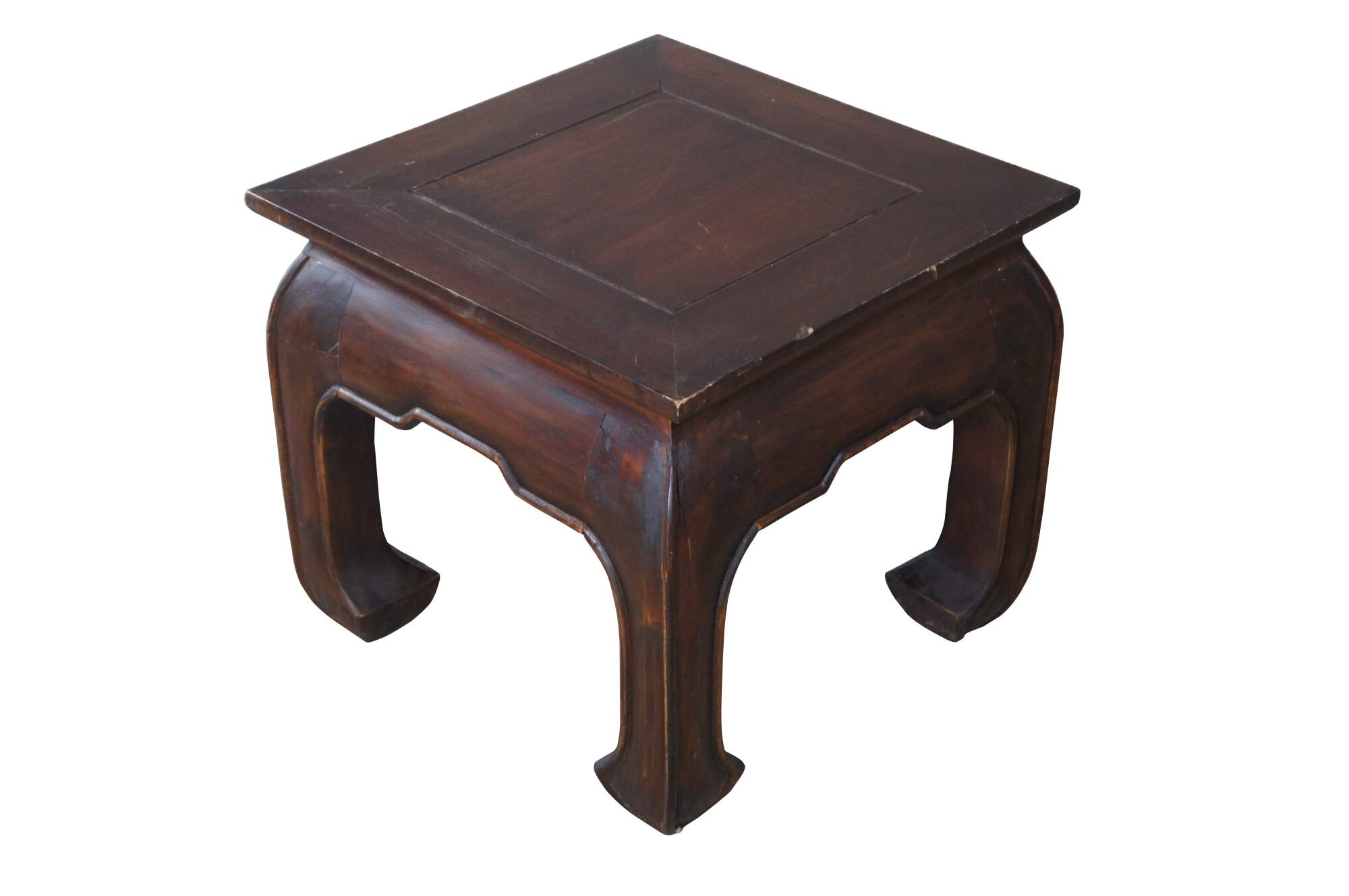 Chinese Ming style accent table. Make from teak with a square frame over contoured apron and traditional form legs.