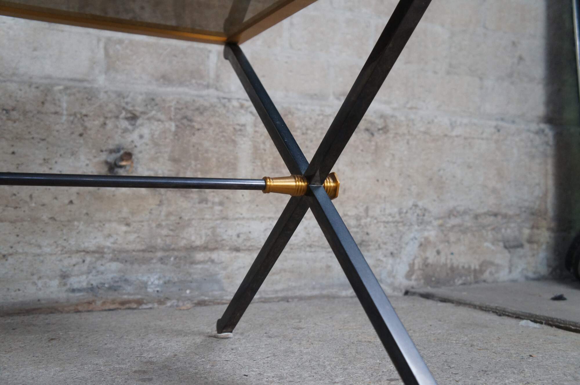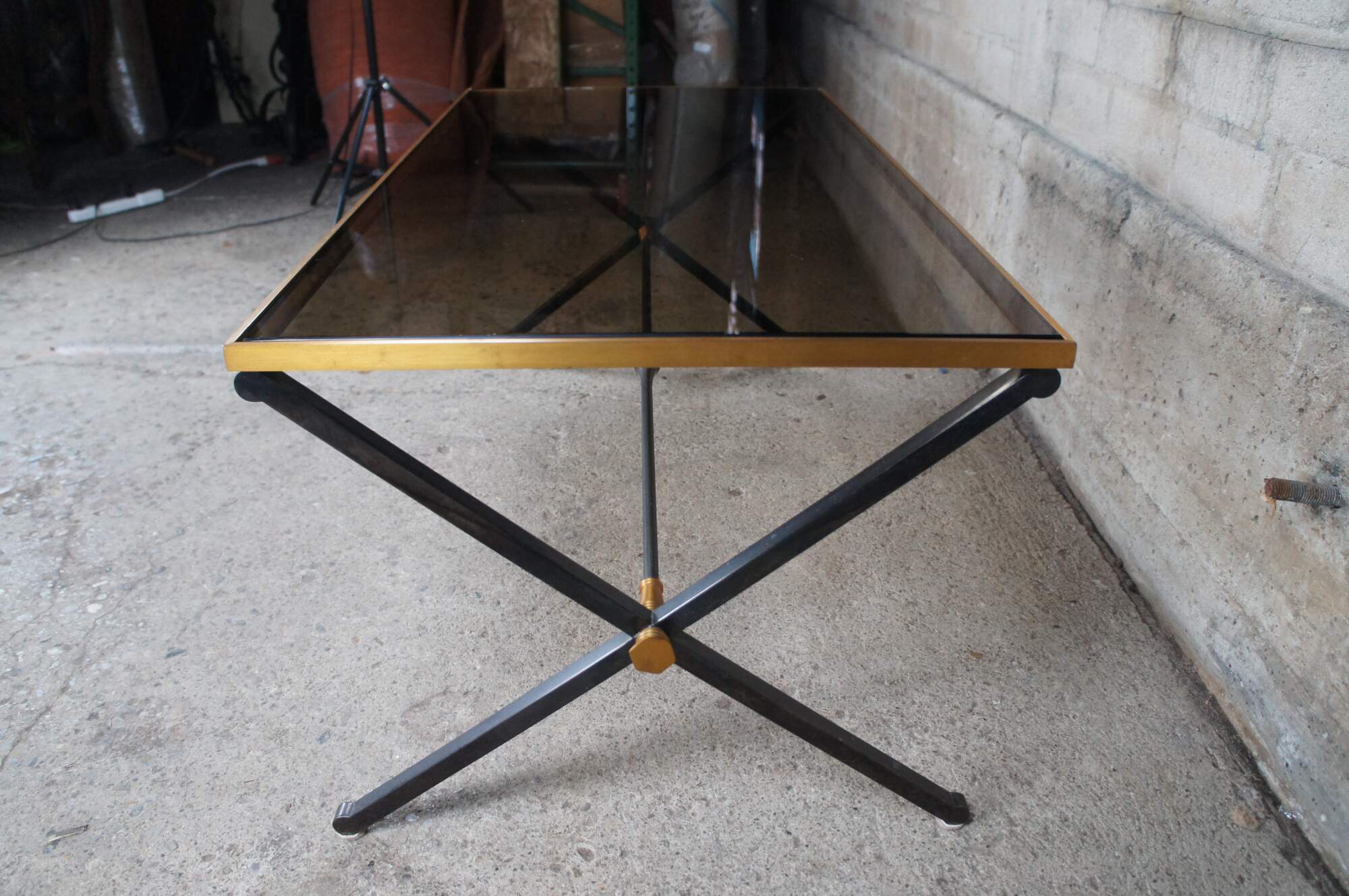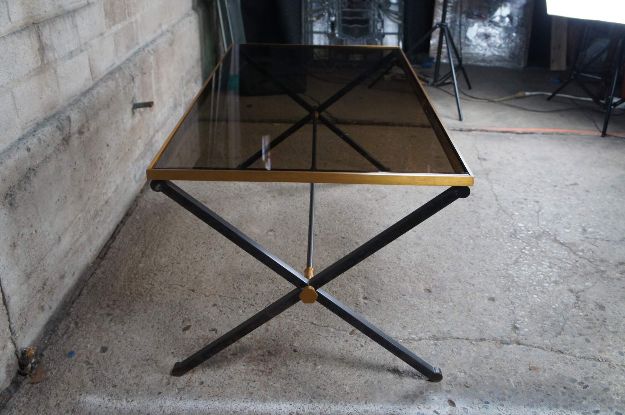 Maison Jansen Style Steel Smoked Glass X Coffee Cocktail Table