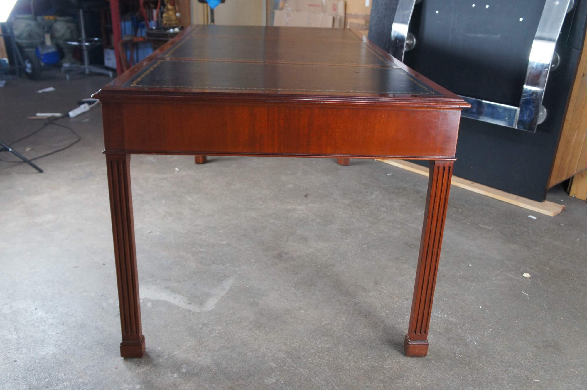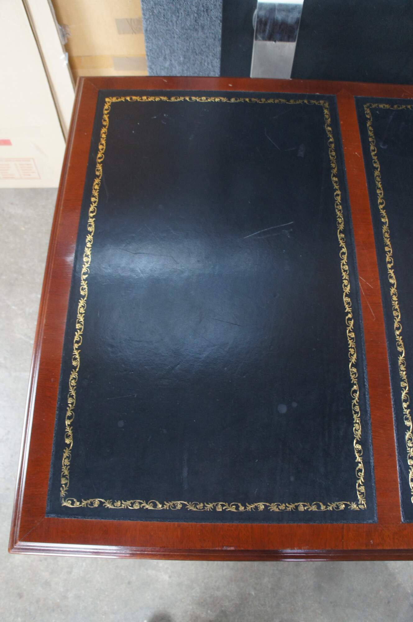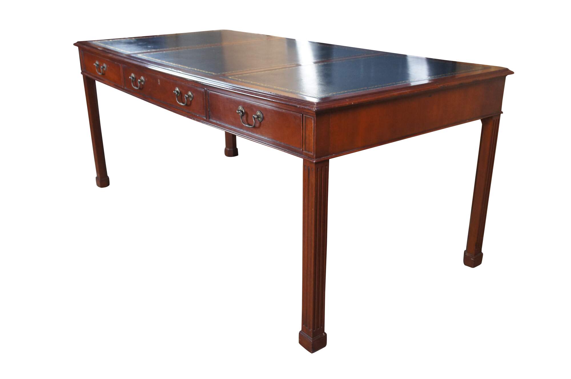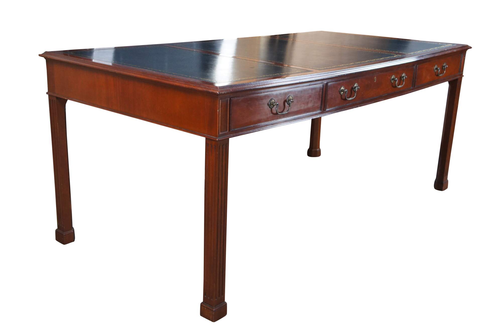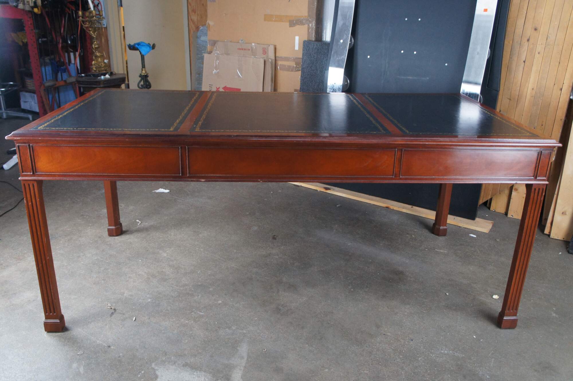 Arthur Brett English Traditional Mahogany Tooled Leather Top Executive Desk 72"