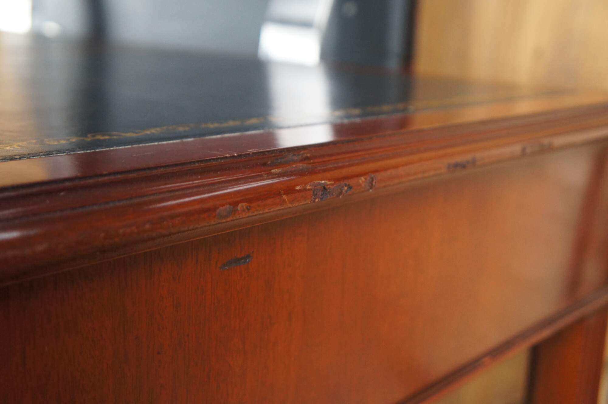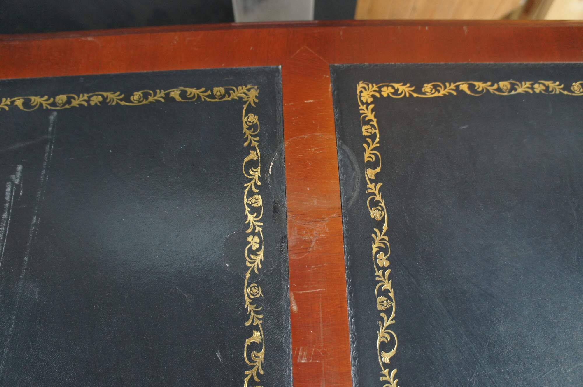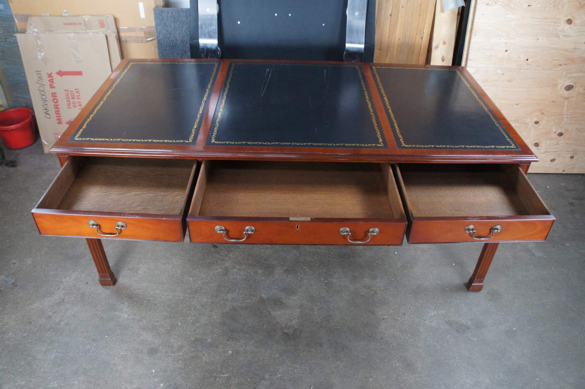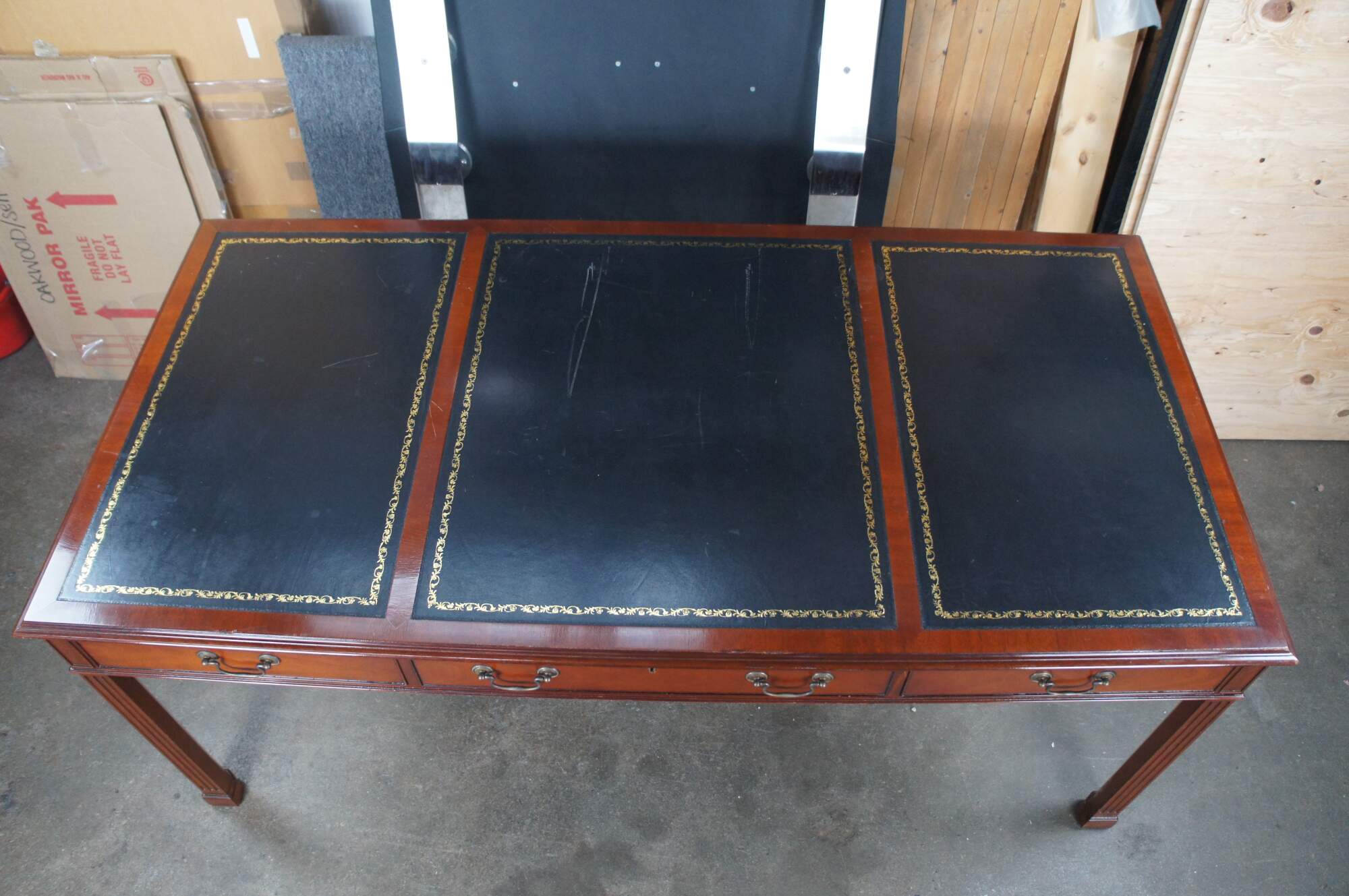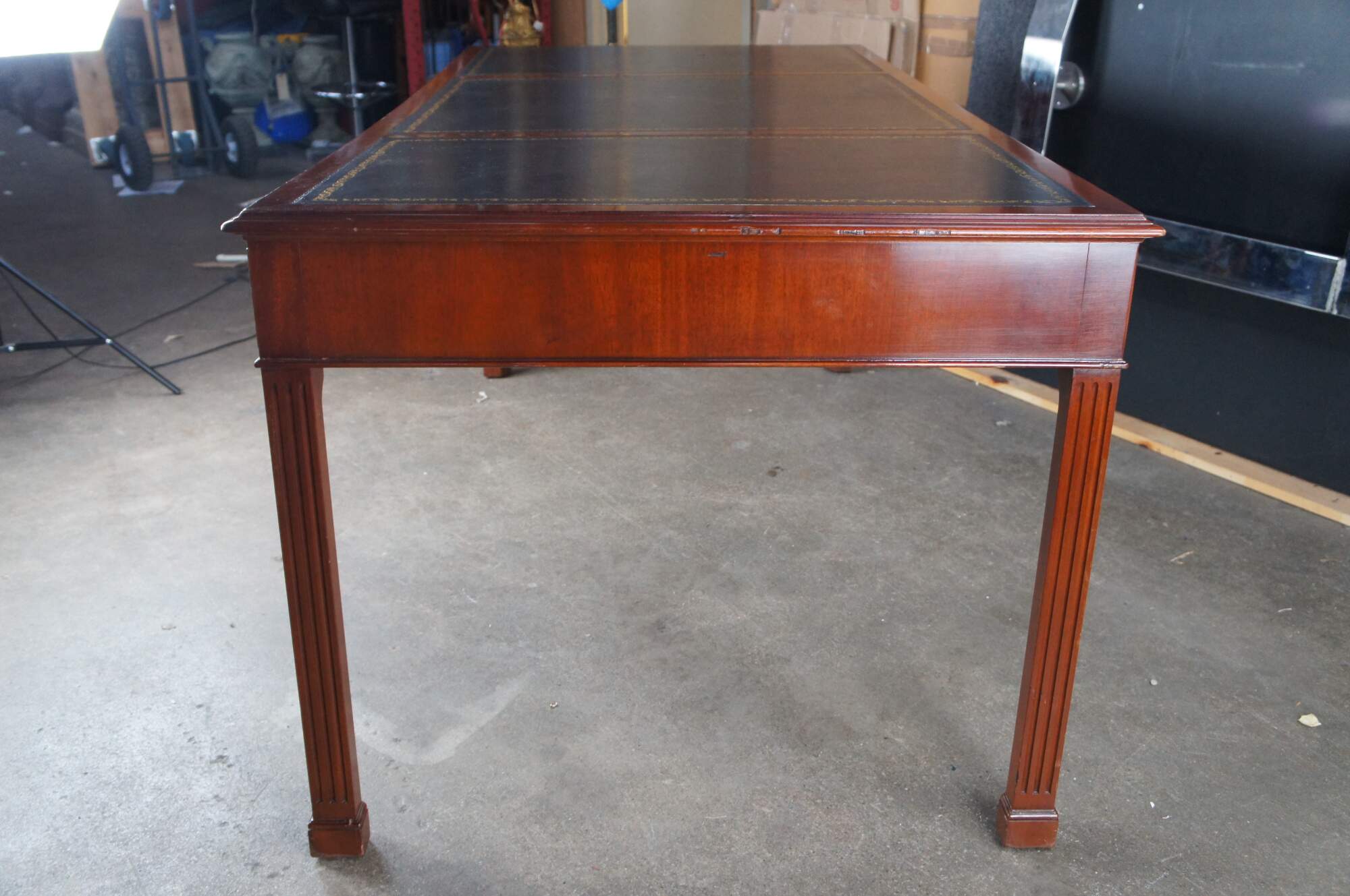 Arthur Brett English Traditional Mahogany Tooled Leather Top Executive Desk 72"