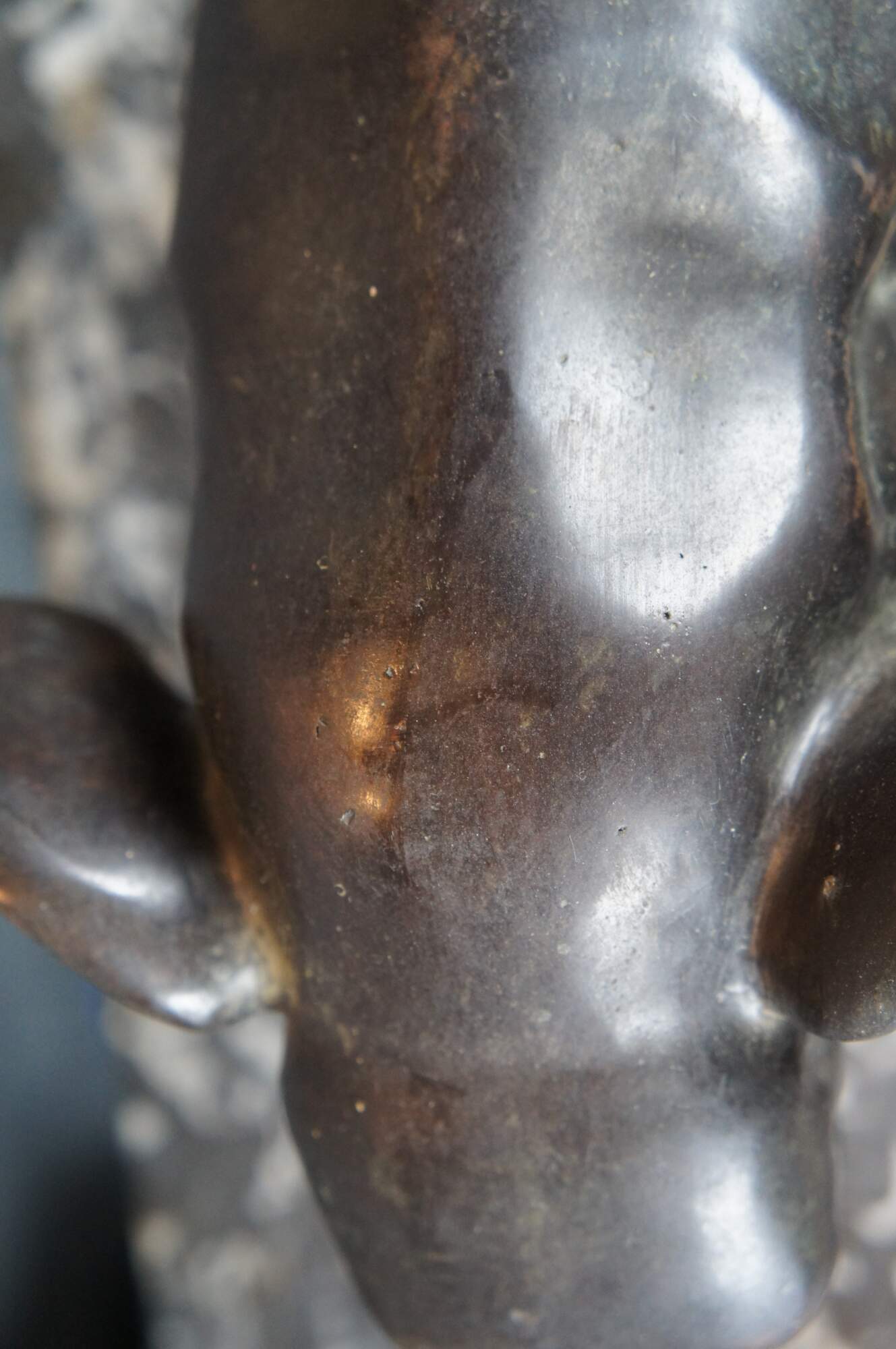 Features a dark brown patina, set on an attractive amber coloured shaped marble plinth bases.