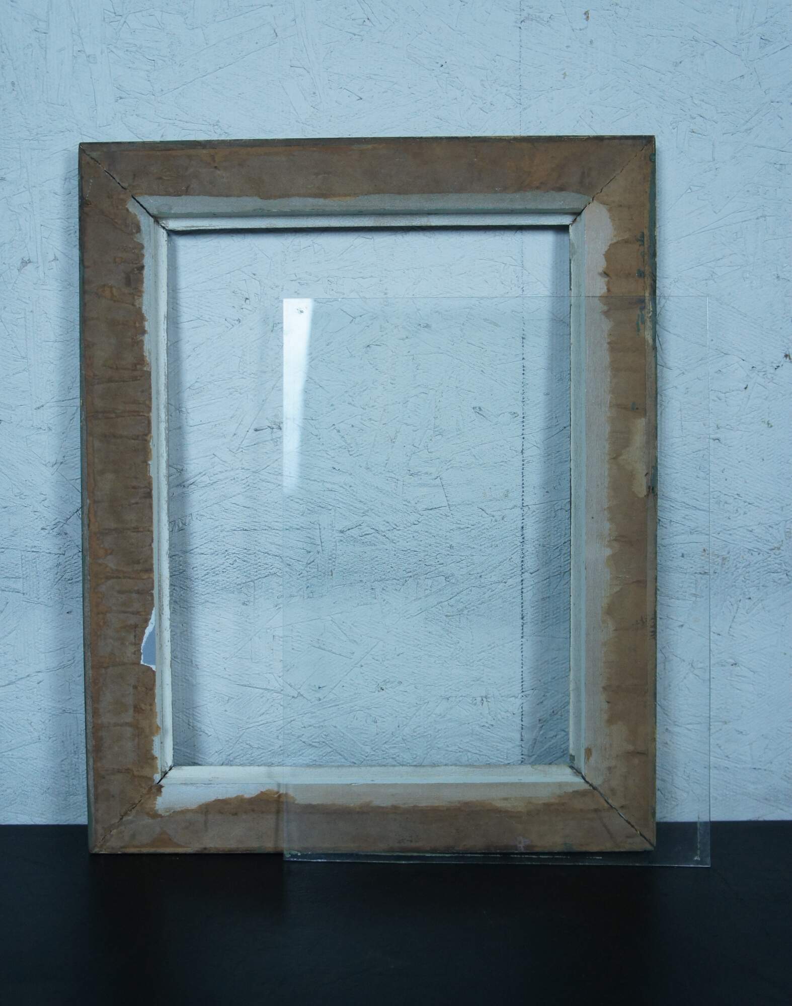 Early 20th century wooden picture / photo frame with beveled slope and raised inner edge. Painted olive green. Includes glass.