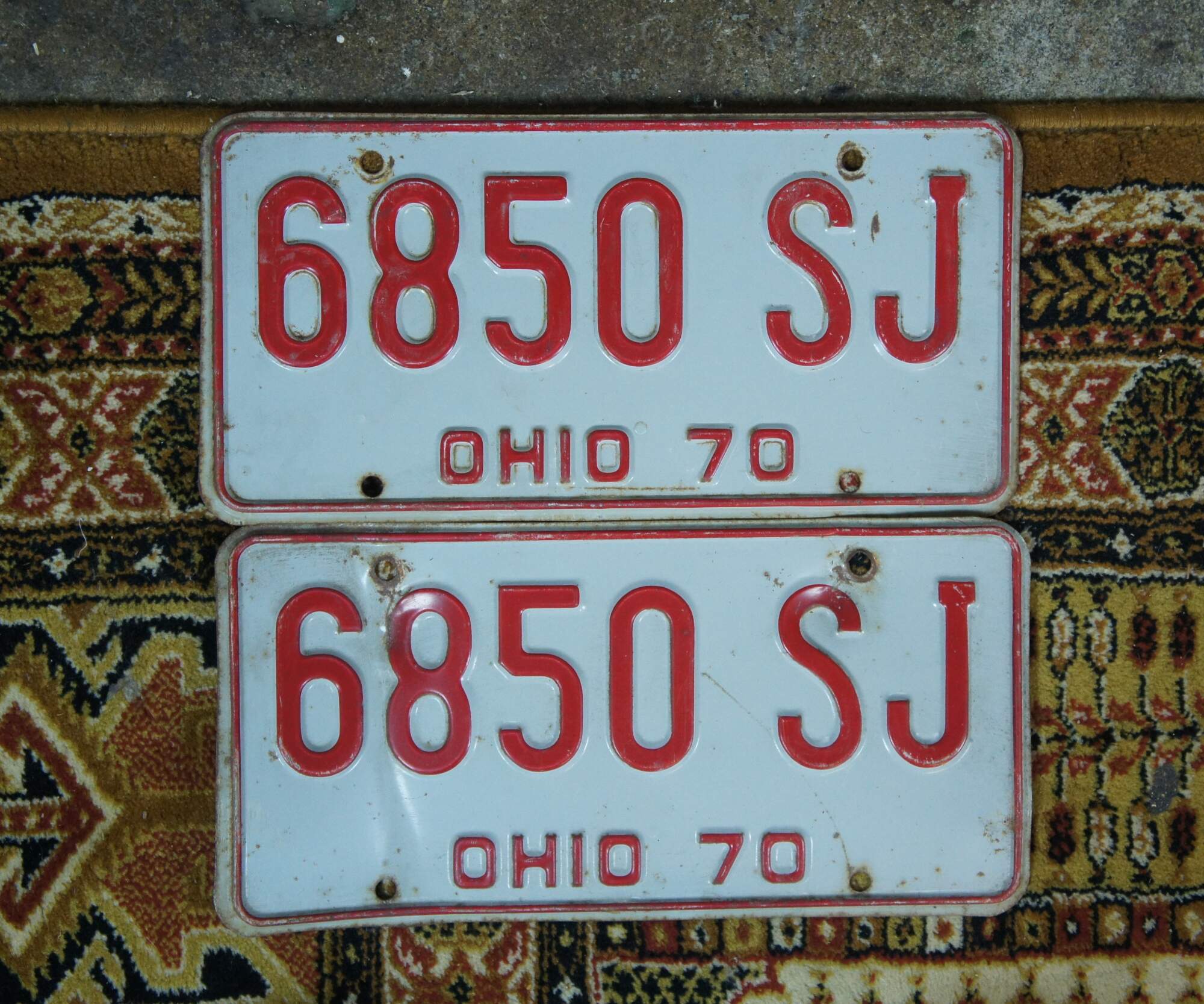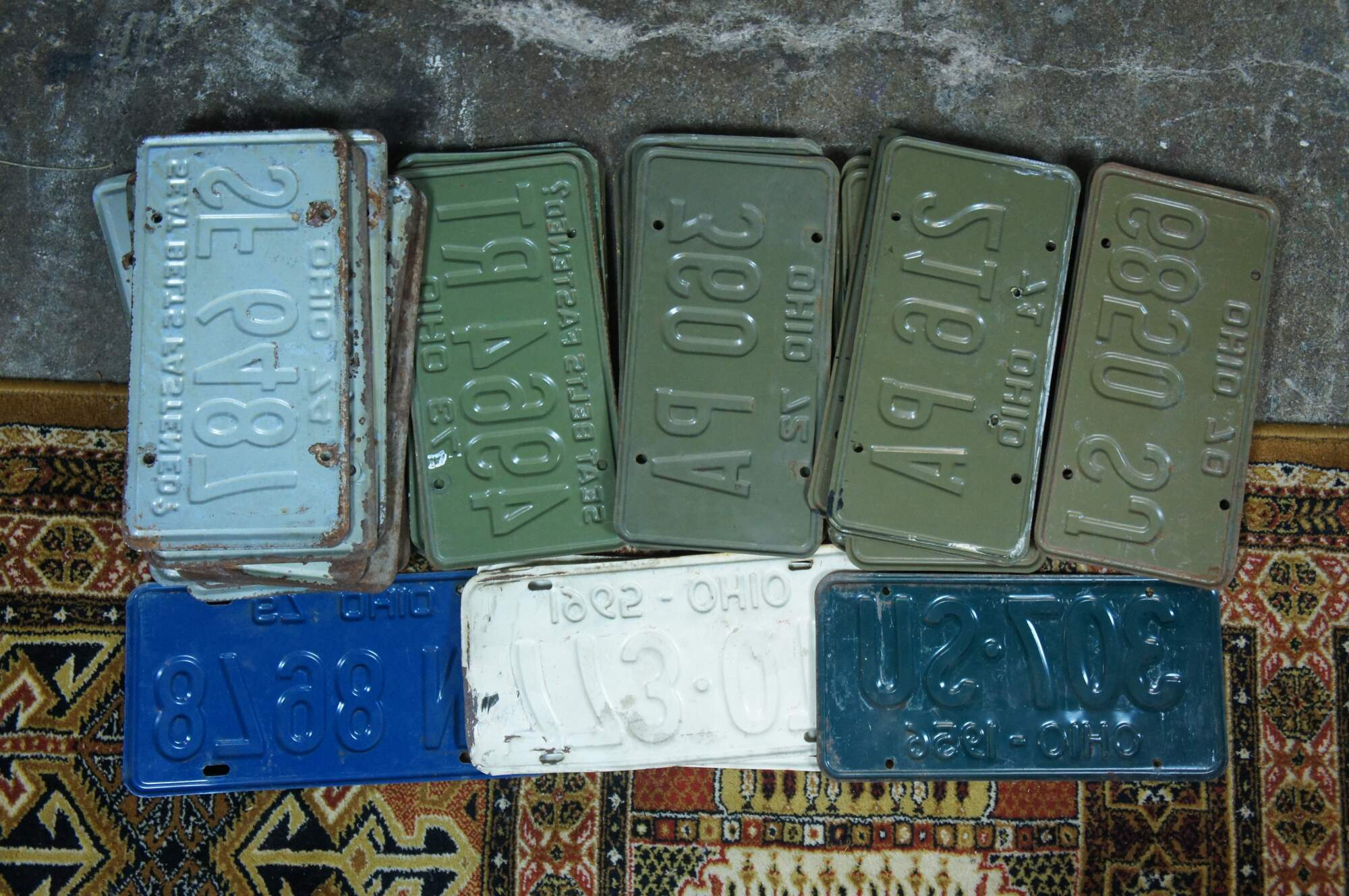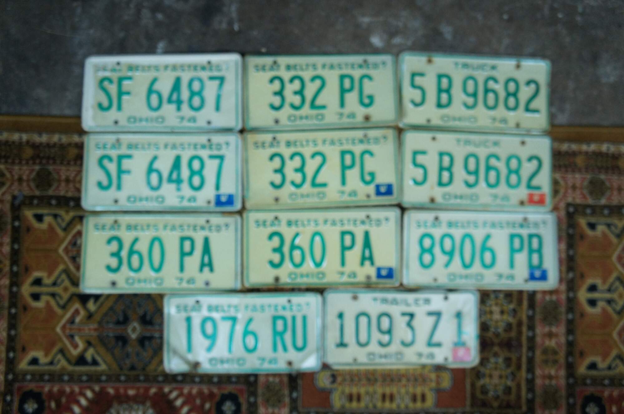 Lot of 31 vintage Ohio license plates. Mixture of pairs and singles for car, truck, and trailers.