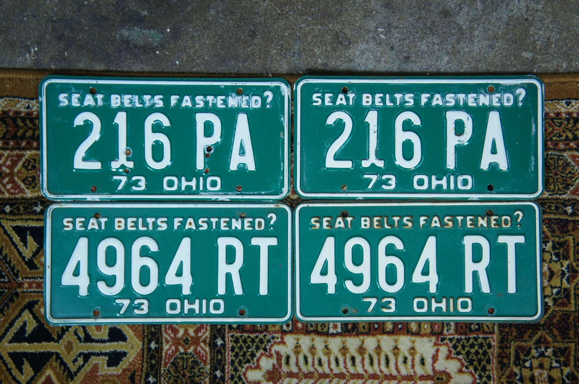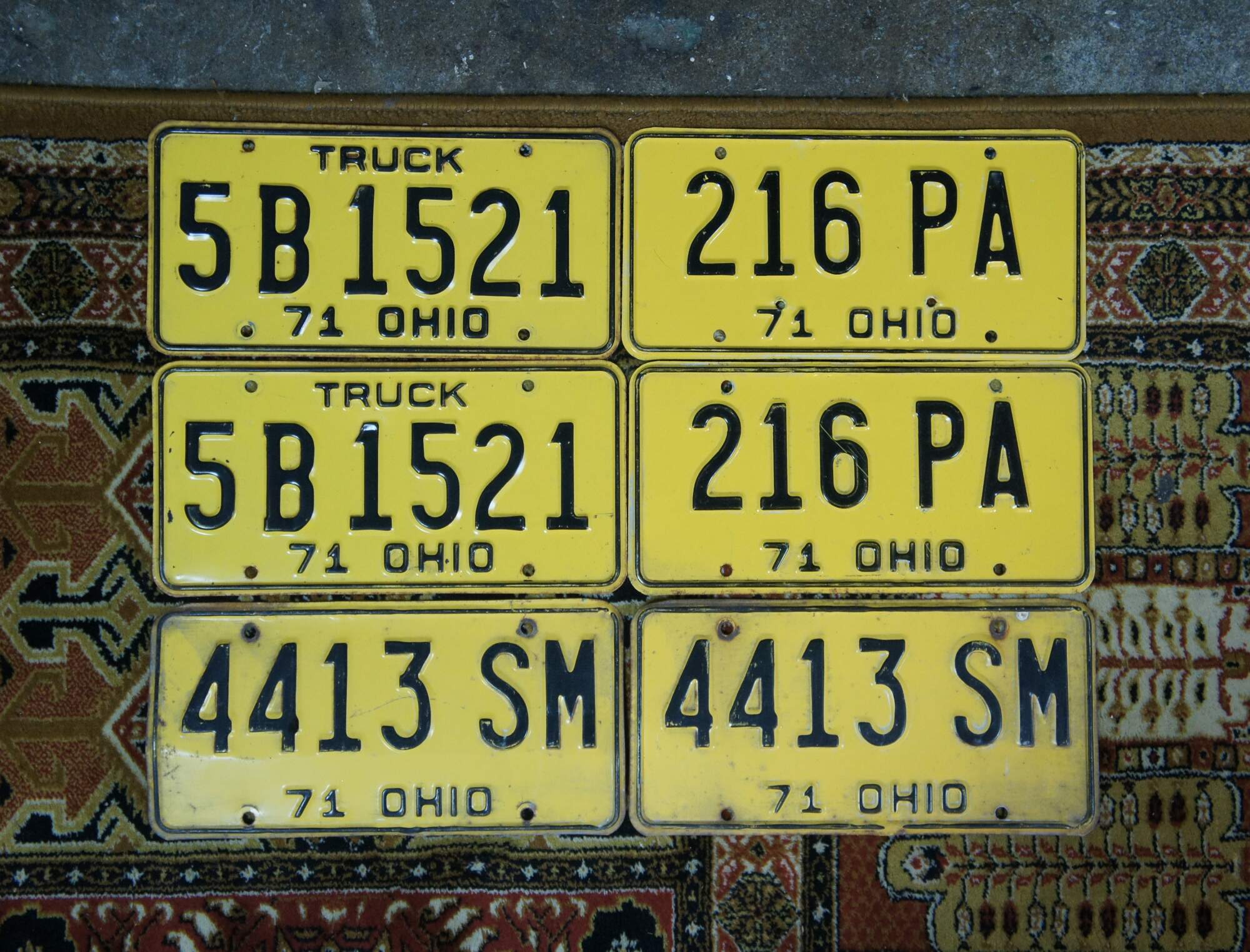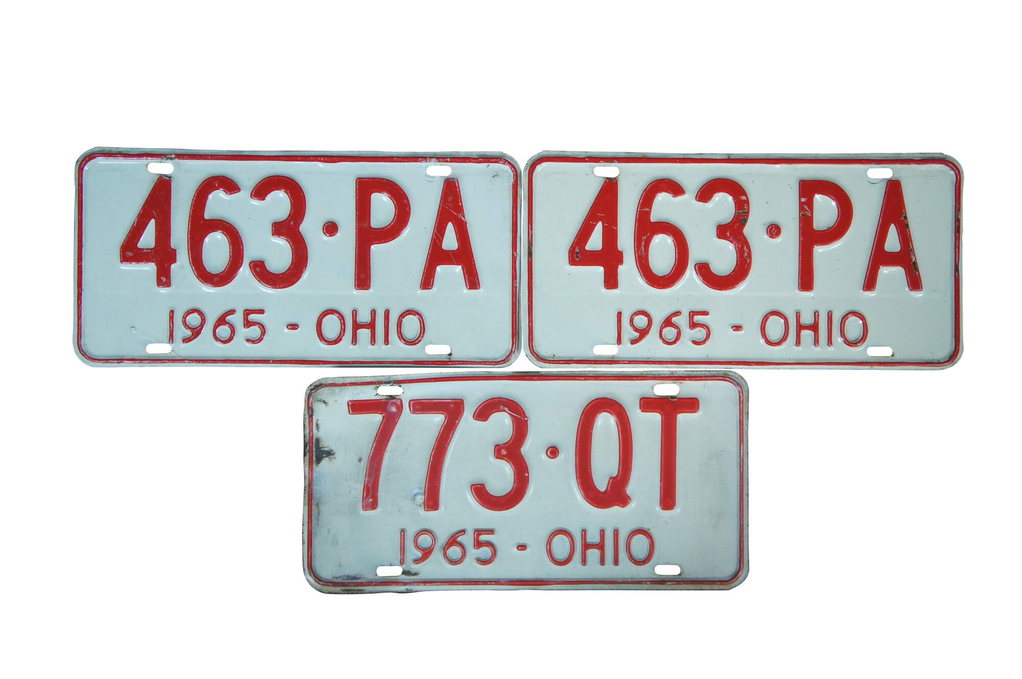 Lot of 31 vintage Ohio license plates. Mixture of pairs and singles for car, truck, and trailers.
