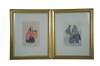 Antique late 19th to early 20th century Japanese woodblock prints - "Taema" and "Arashiyama" from the series "One Hundred Noh Dramas (Nogaku hyakuban)" by Tsukioka Kôgyo, published by Matsuki Heikichi. Giltwood frame with beaded outer edge and carved leaf motif along the inner edge; off-white mat.