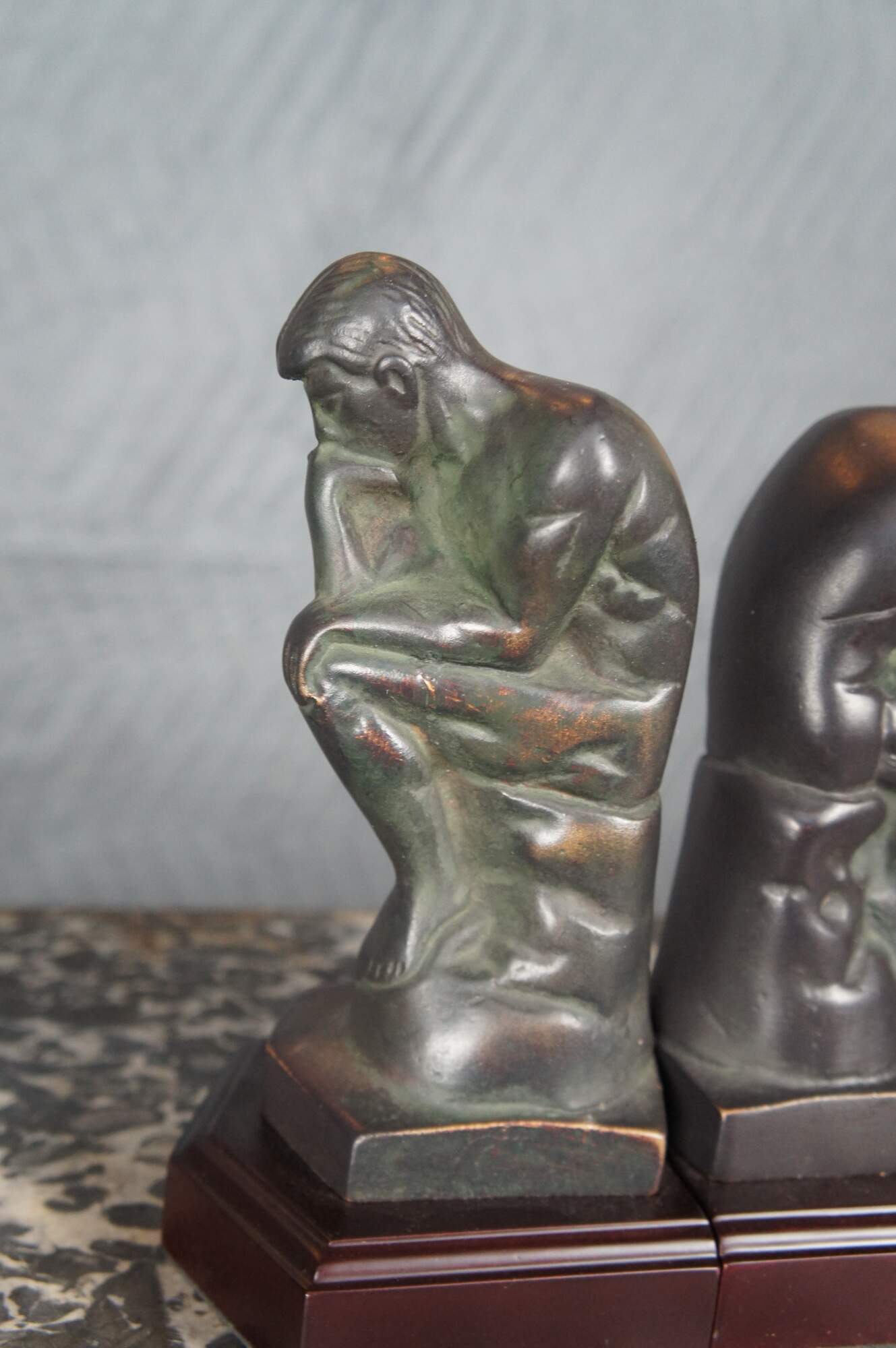 Bey-Berk R18T Cast Metal Thinker Bookends Bronze Finish With Wood Base