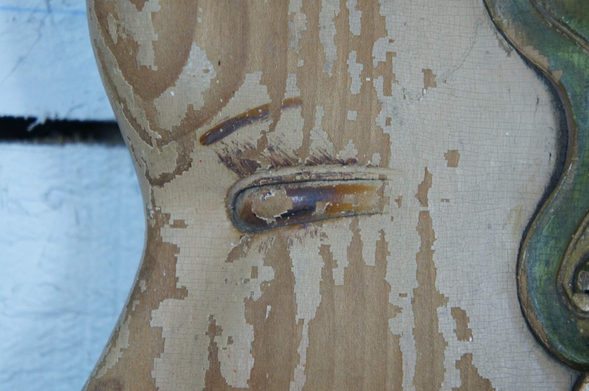 Rare antique circa 1932 art deco Oscar Segall "woodikin" bust - a flat wooden mannequin used for shop displays. Carved in low relief with curled and bobbed hair, with painted lips and eye. Peg holes in sides show where limbs would have been attached to the torso. Screw hook added to back for wall hanging.