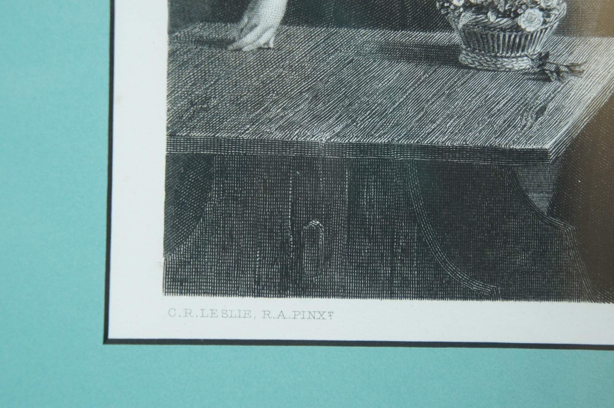 "Charles Robert Leslie RA (19 October 1794 – 5 May 1859) was an English genre painter. Leslie was born in London to American parents and raised from the age of five in Philadelphia. Leslie completed his education and afterwards became apprenticed to a bookseller. He left for London in 1811, being admitted as a student of the Royal Academy. At first he essayed high art but he soon discovered his true aptitude and became a painter of cabinet-pictures, dealing, not like those of David Wilkie, with the contemporary life that surrounded him, but with scenes from the great masters of fiction, from Shakespeare and Cervantes, Addison and Molière, Swift, Sterne, Fielding and Smollett." (Source: Wikipedia)