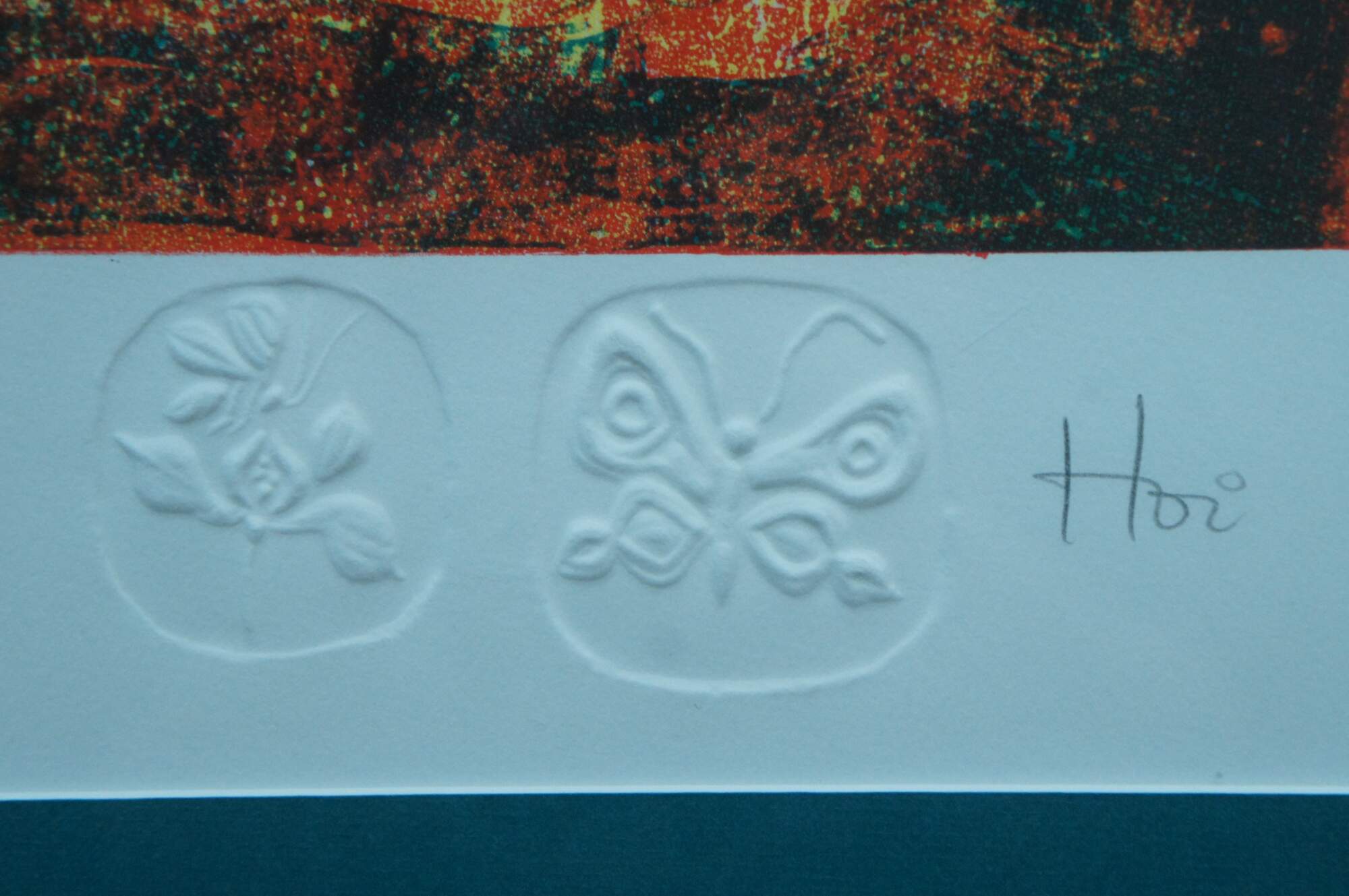 "Le Ba Dang (aka Hoi Lebadang - b.1921/1922-d.2015) was born in Quang Tri, Vietnam in 1922. He moved to France in 1939 to pursue an art career at Ecole de Beaus Arts de Toulouse. While studying there he was awarded prizes for painting, drawing, and sculpture and won his first commission. By 1950 the Paris art community had recognized Lebadang's work, appreciating the blend of European and Far Eastern culture and philosophies reflected in it. The director of the Far Eastern Department at UNESCO commissioned him to illustrate a book of poetry, published by Editions Euros. Lebadang was first represented in the United States, in 1966, with an exhibition of his paintings at the Cincinnati Art Museum. In describing his art today critics remark that it incorporates everyday subjects into dream-like expressions of thought. Lebadang, an accomplished printmaker, favors the techniques of etching, lithograph, and serigraph. He also has done lithographs using the name Hoi. Lebadang's work is exhibited in Dusseldorf, Paris, Nantes, Cologne, Cannes and Aix en Provence galleries. His work is owned in permanent private and public collections including: Rockefeller Collection, New York; Loo Collection in Tokyo; Verkerke Collection, Holland; Phoenix Art Museum, USA; Cincinnati Museum, USA; Columbia Art Institute, USA; Lund University Museum, Sweden; Foundation Museum, Kenya; and the Museum of Arts and Letters, France. " (Source: askART)