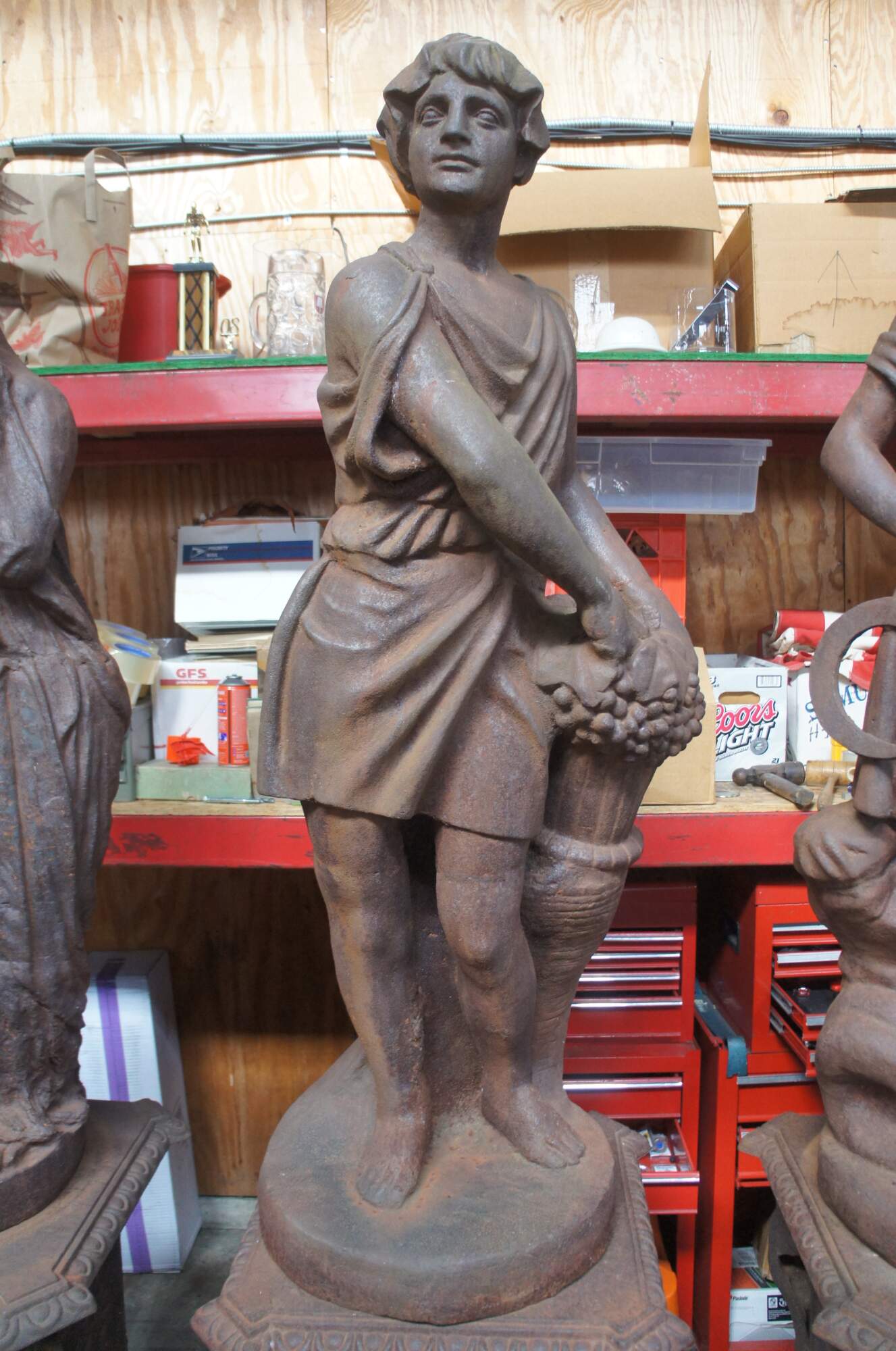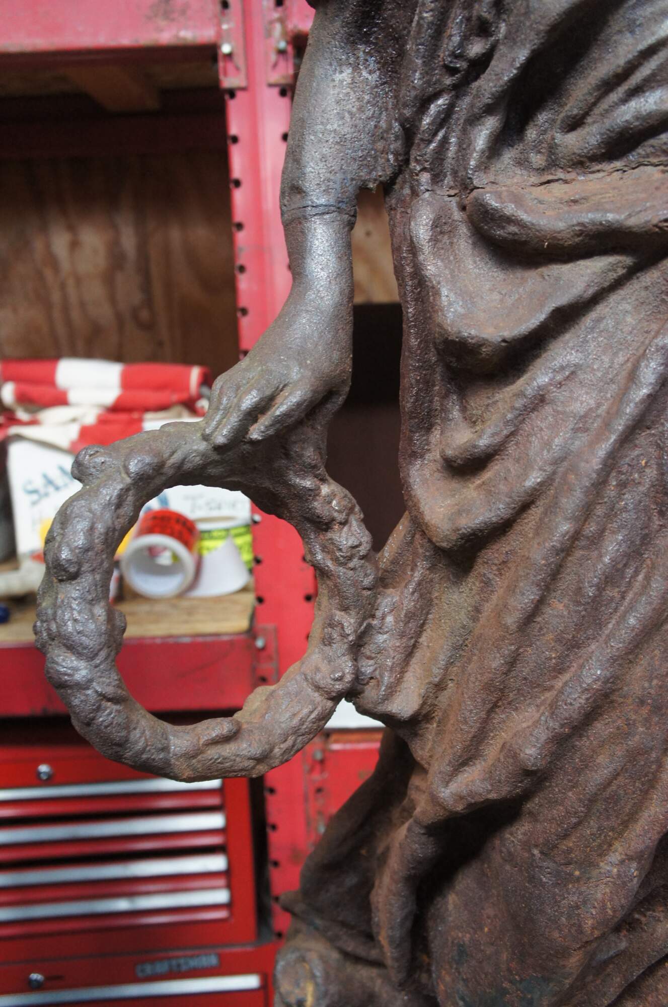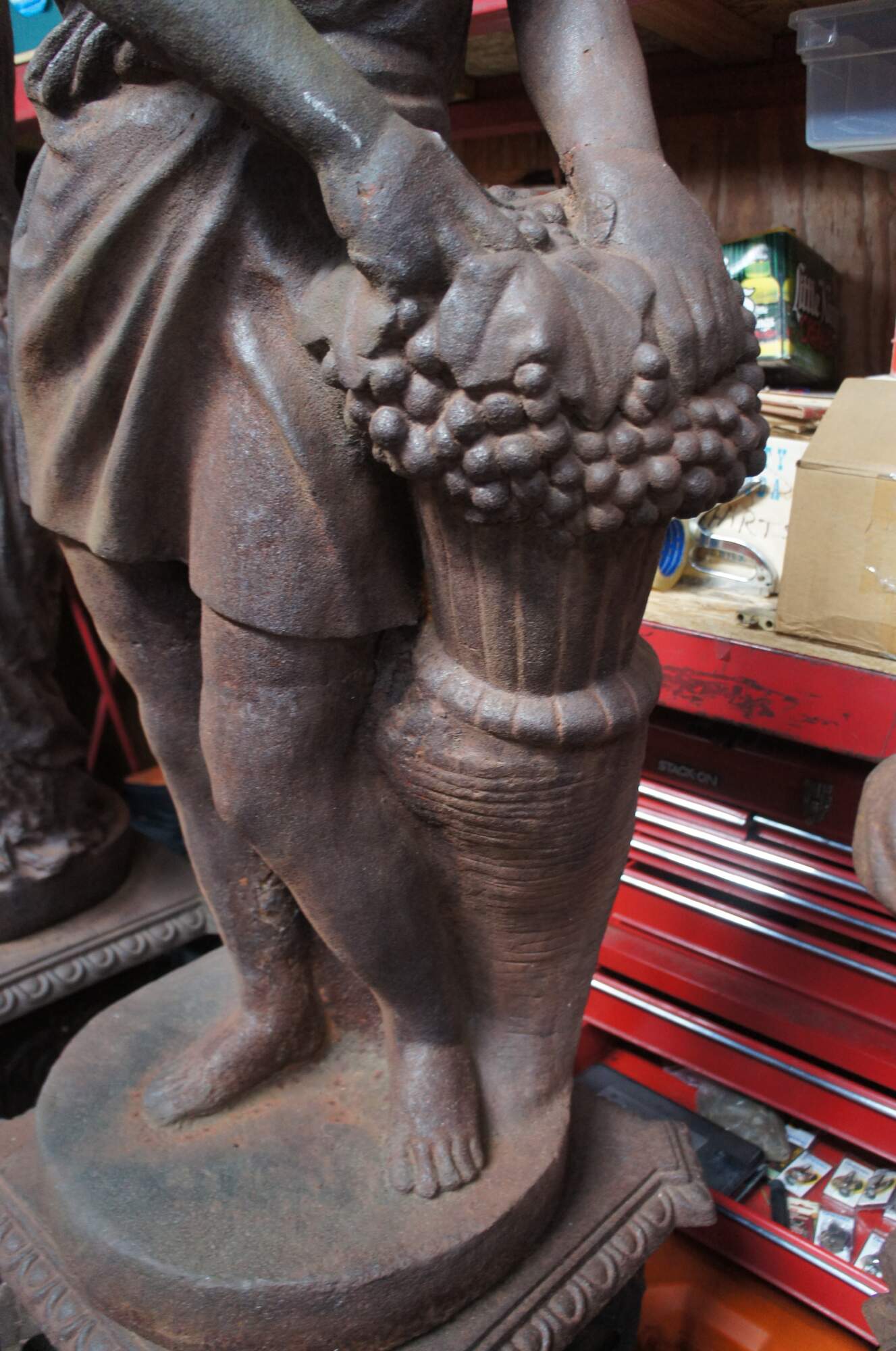 Good Condition; patina from age and weathering. Goddess of Agriculture missing gardening Hoe, sculpture on the left has a seam at the waist.