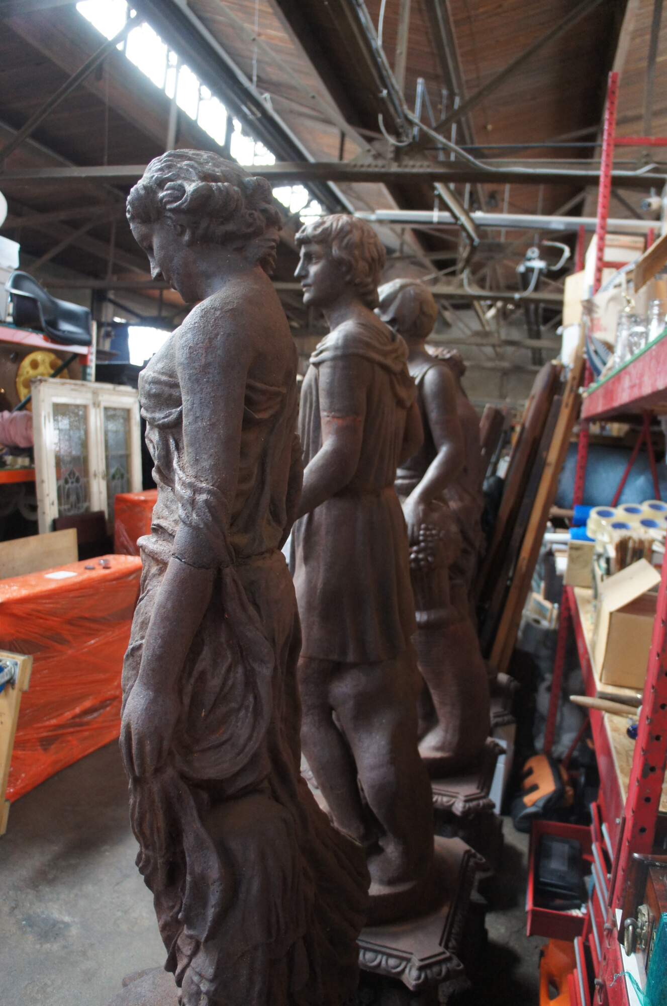 90" x 24" x 24", largest statue 59", pedestals 32"h