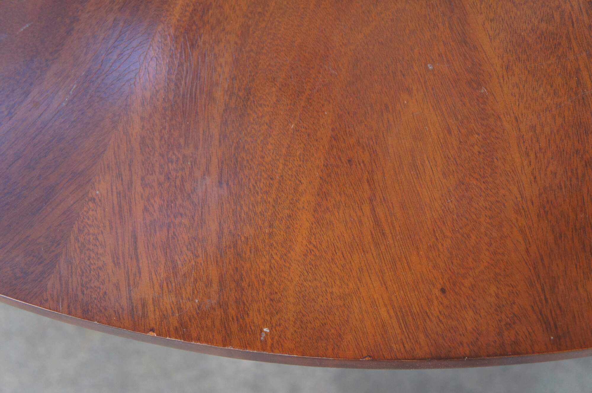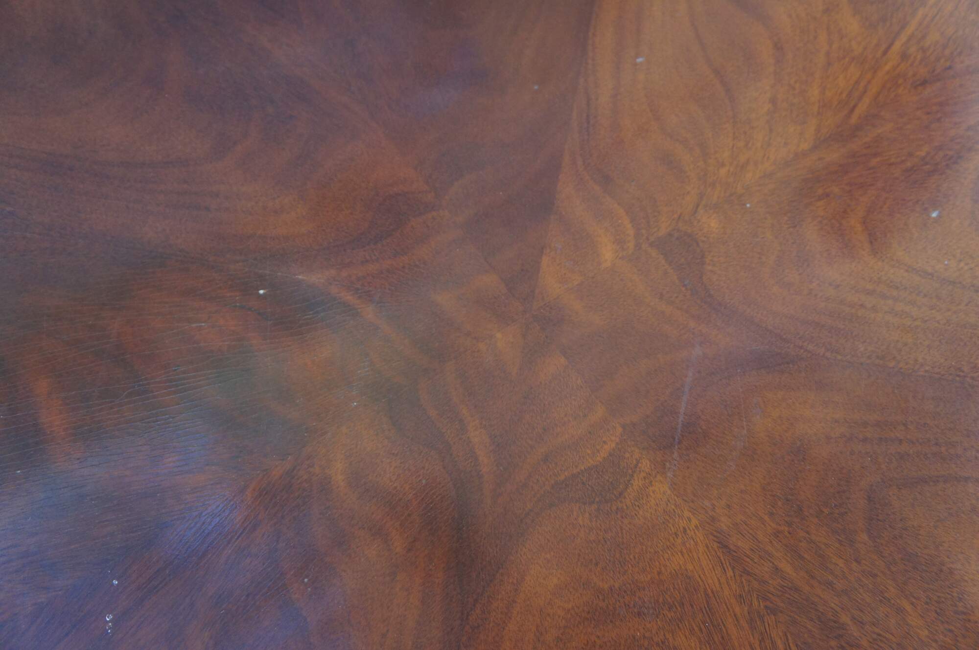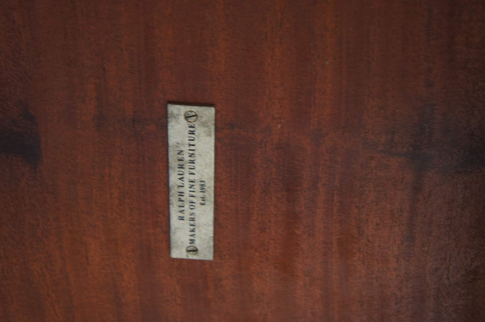 Ralph Lauren’s Mayfair collection is inspired by the elegance of Mediterranean design with a hint of Old Hollywood glamour. Impeccably crafted from solid mahogany wood with a rich swirled grain, the center table is set upon a plinth base with a tapered reed column and a handsome eight-panel top. Circa late 2000s, MSRP 13,590