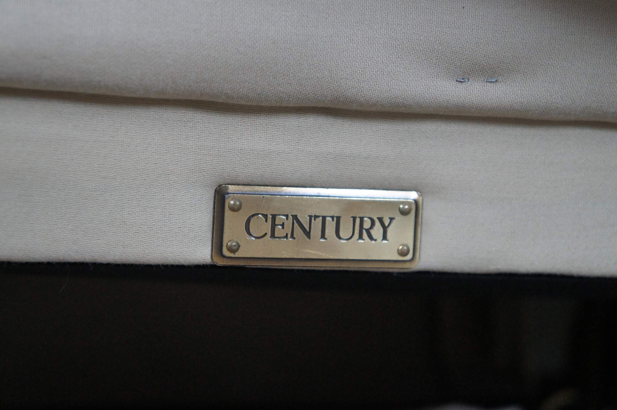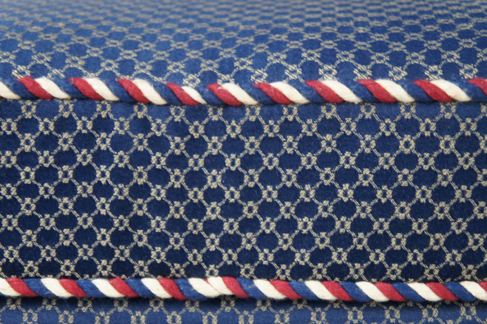 Pair of Century Furniture Ottomans. Featuring a Blue and gold diamond pattern fabric with rope twisted cording.
