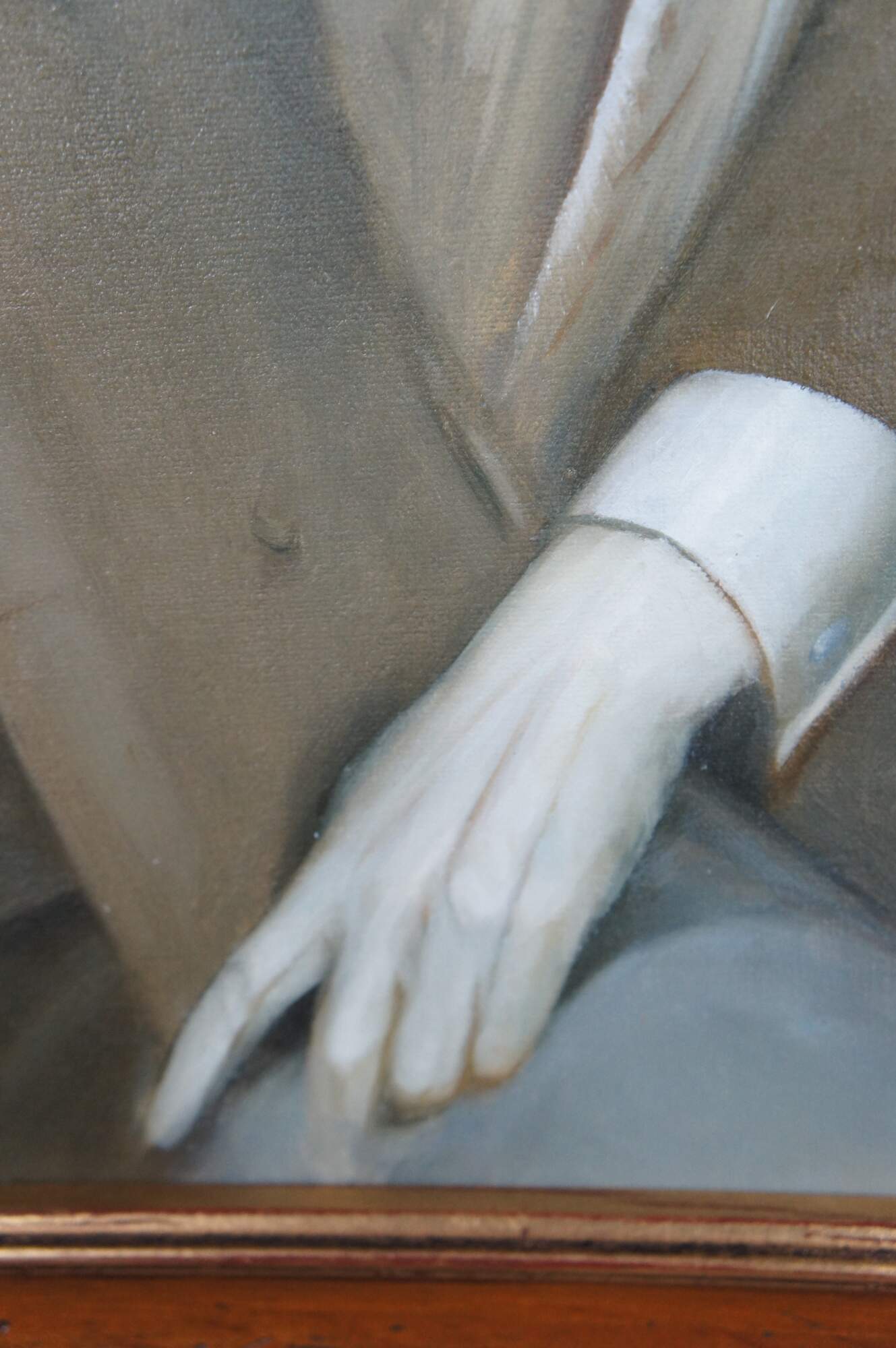A reproduction oil painting of Robert de Montesquiou After Givanno Boldini, circa last quarter 20th century. Signed lower right by James T. Whitmas. Framed in pin with beveled interior and gold trim.