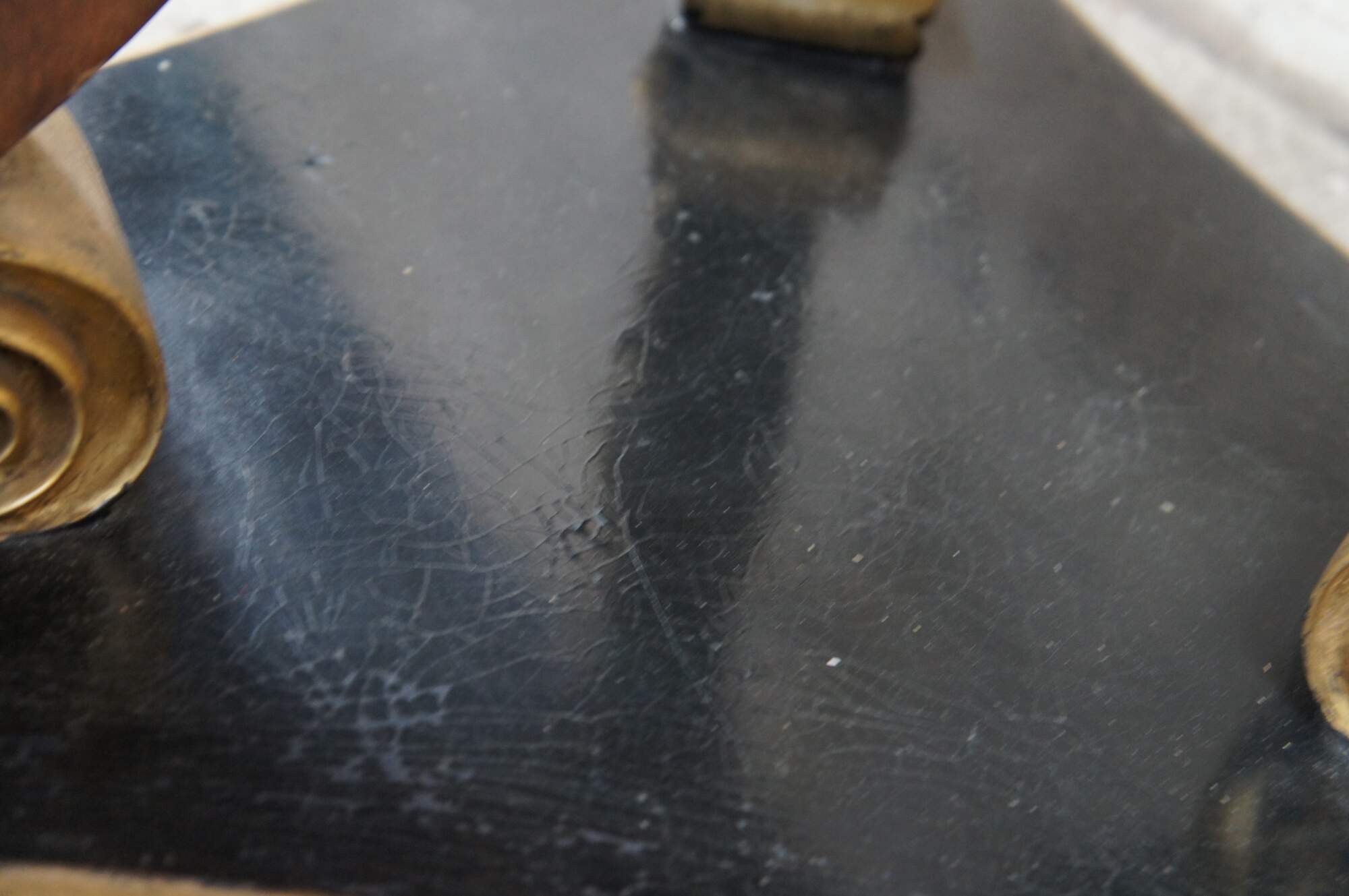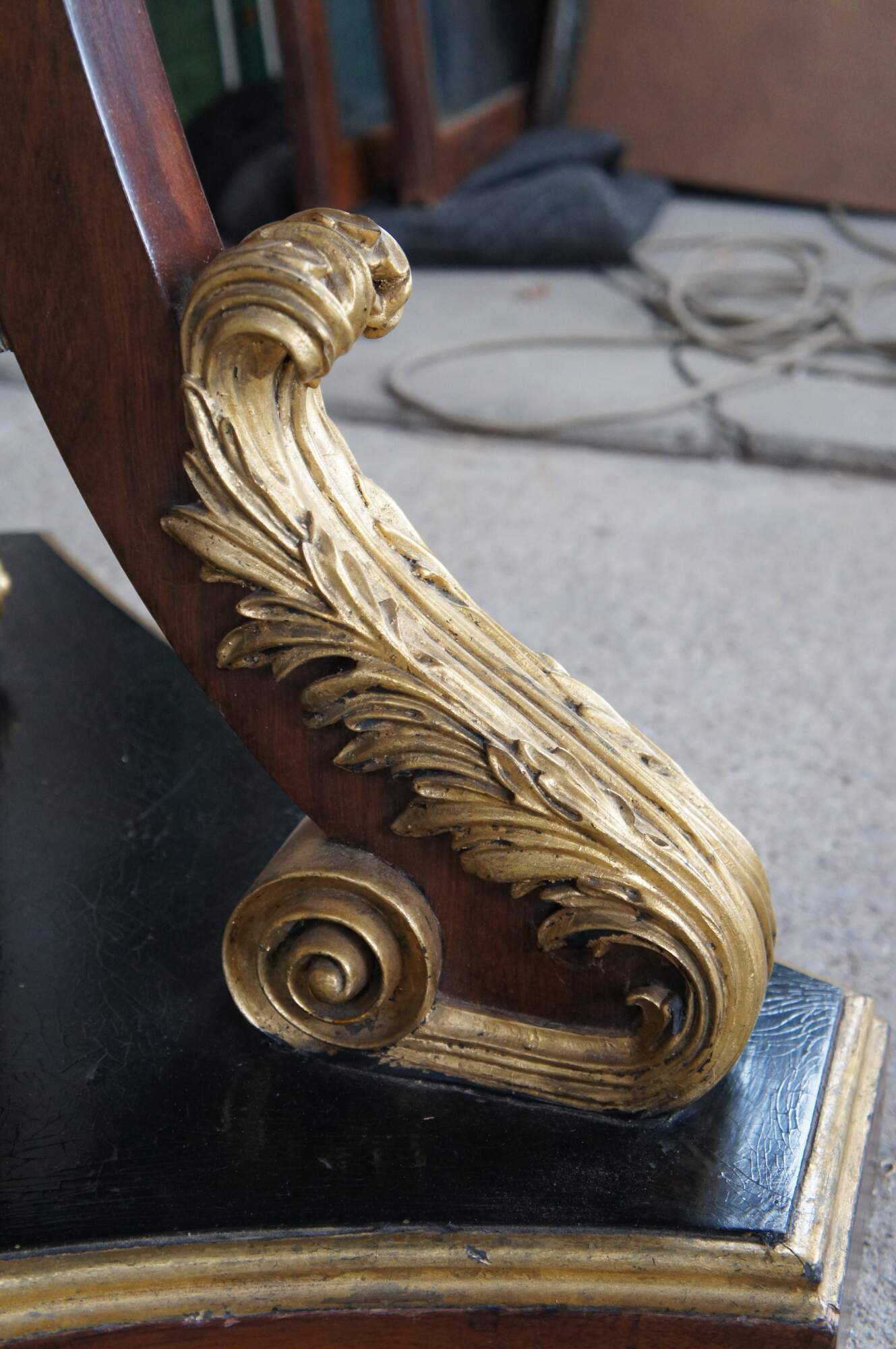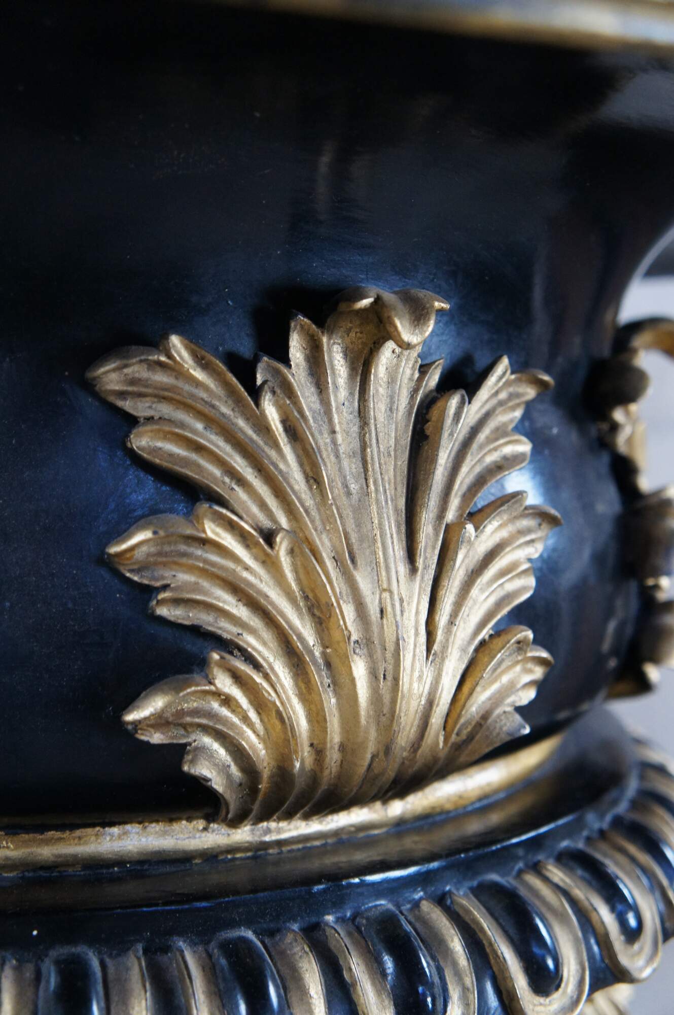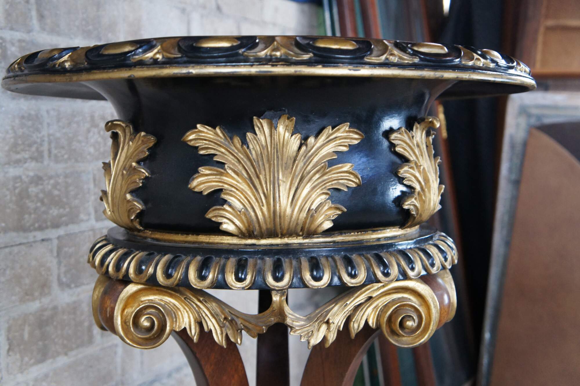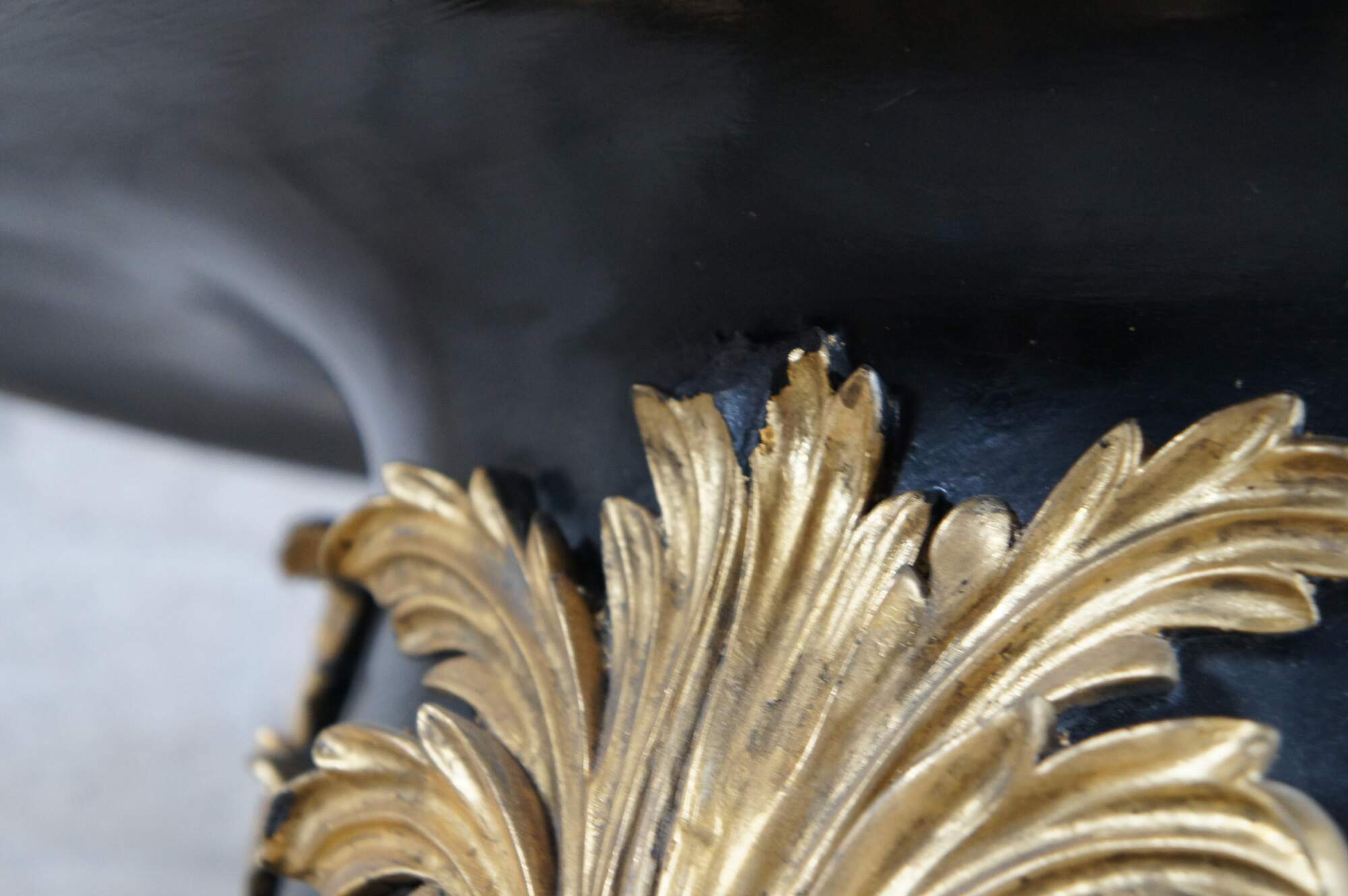 Good Condition; General age related wear. some crazing to the pain, chip to the gold acanthus foliate, finish wear to the interior. Past repair to one support.