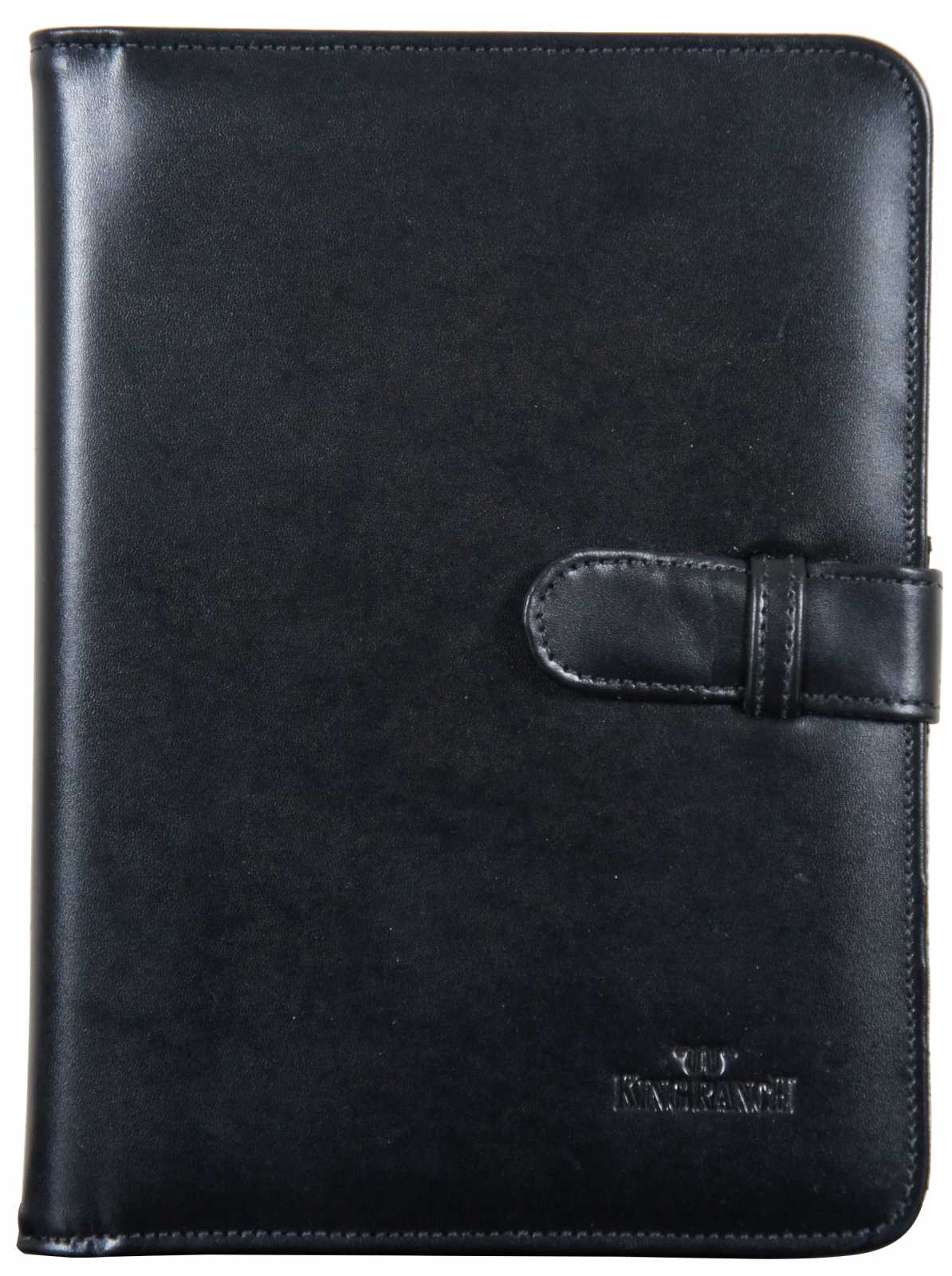 Never used, in original box, black leather portfolio with space for a small notepad and pen by King Ranch.