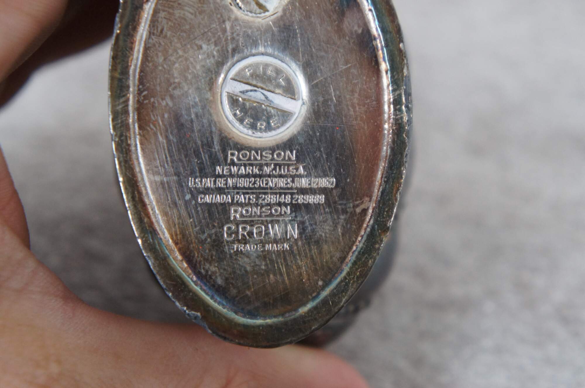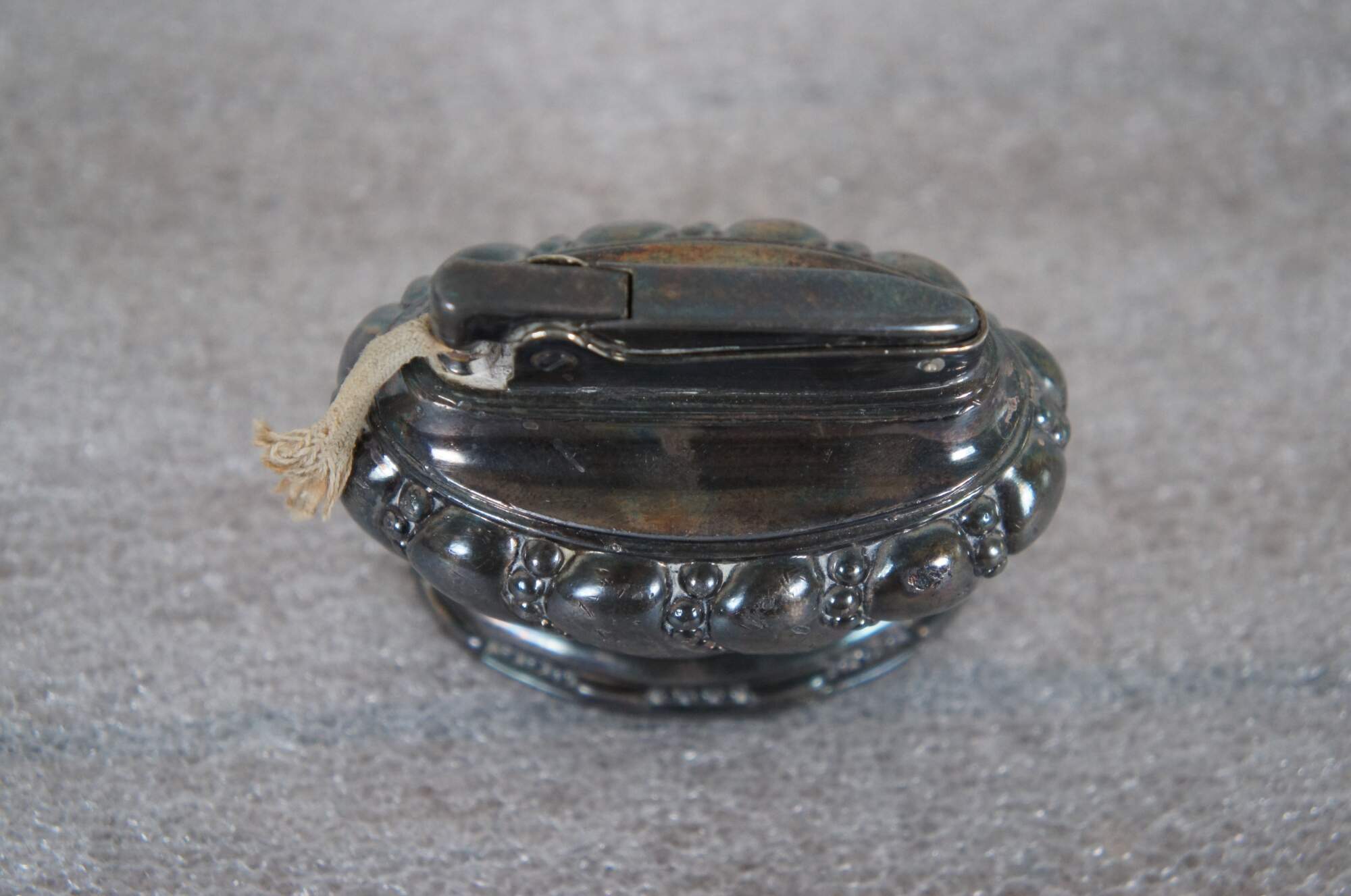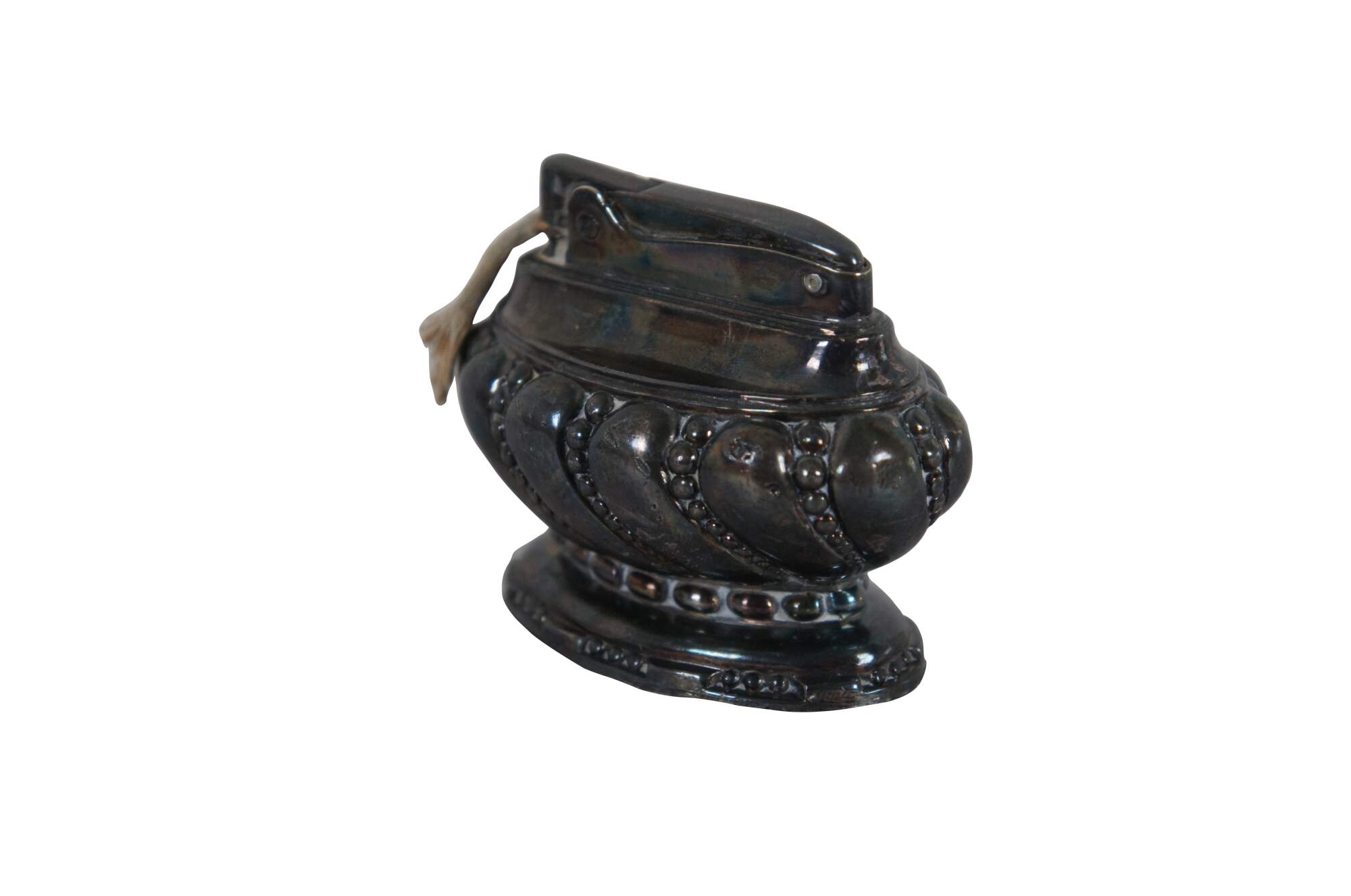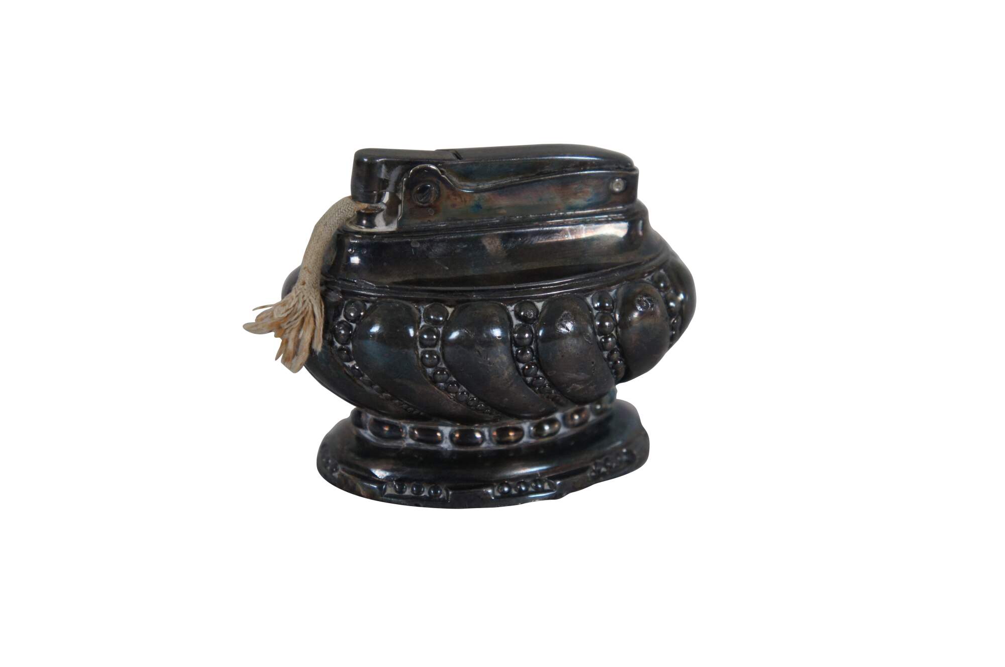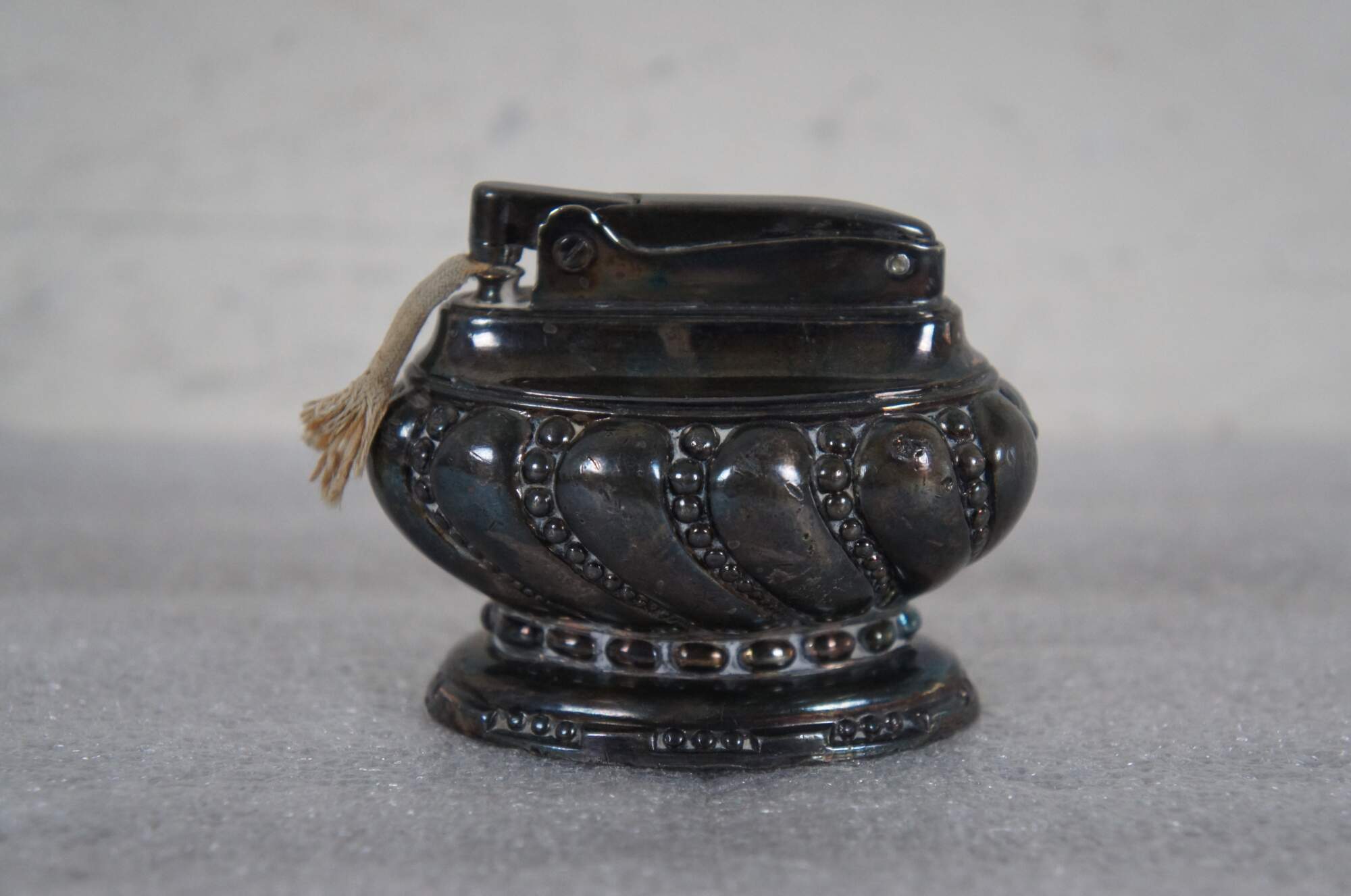 Mid 20th century Ronson "Crown" table lighter featuring a footed oval body molded with swirling beaded details.