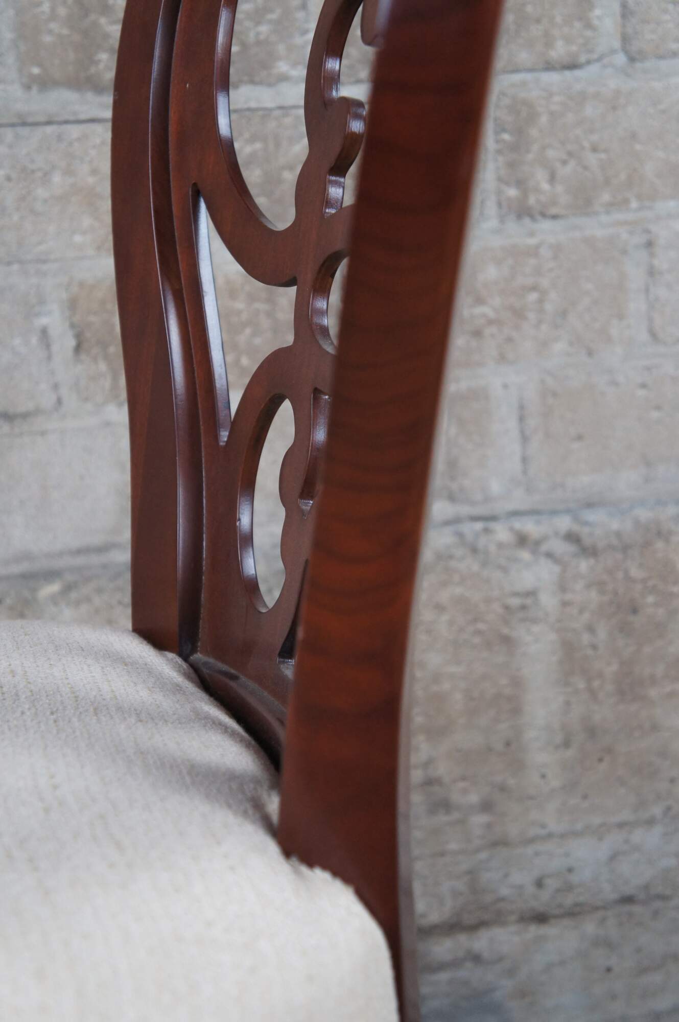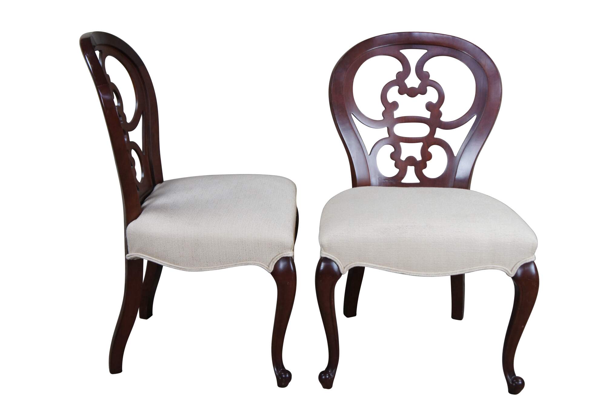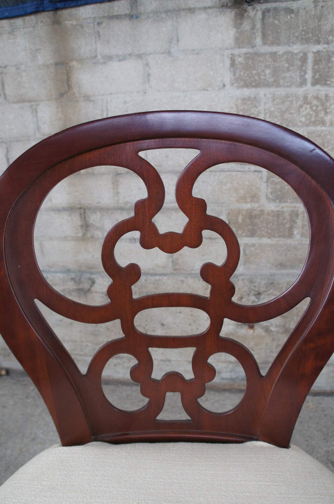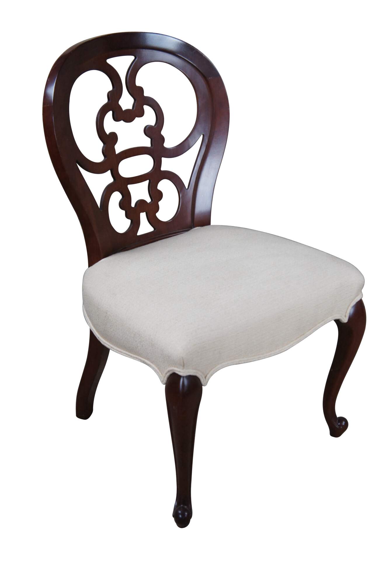 Dorothy Draper designed the original of this chair in 1945 for the Café and rooms at The Greenbrier Hotel in West Virginia. The swirling lines of the back splat, the French inspired cabriole legs and curved lines of the side rails evoke the glamour of the times. Made from Cherry. MSRP 4,412.00 per.