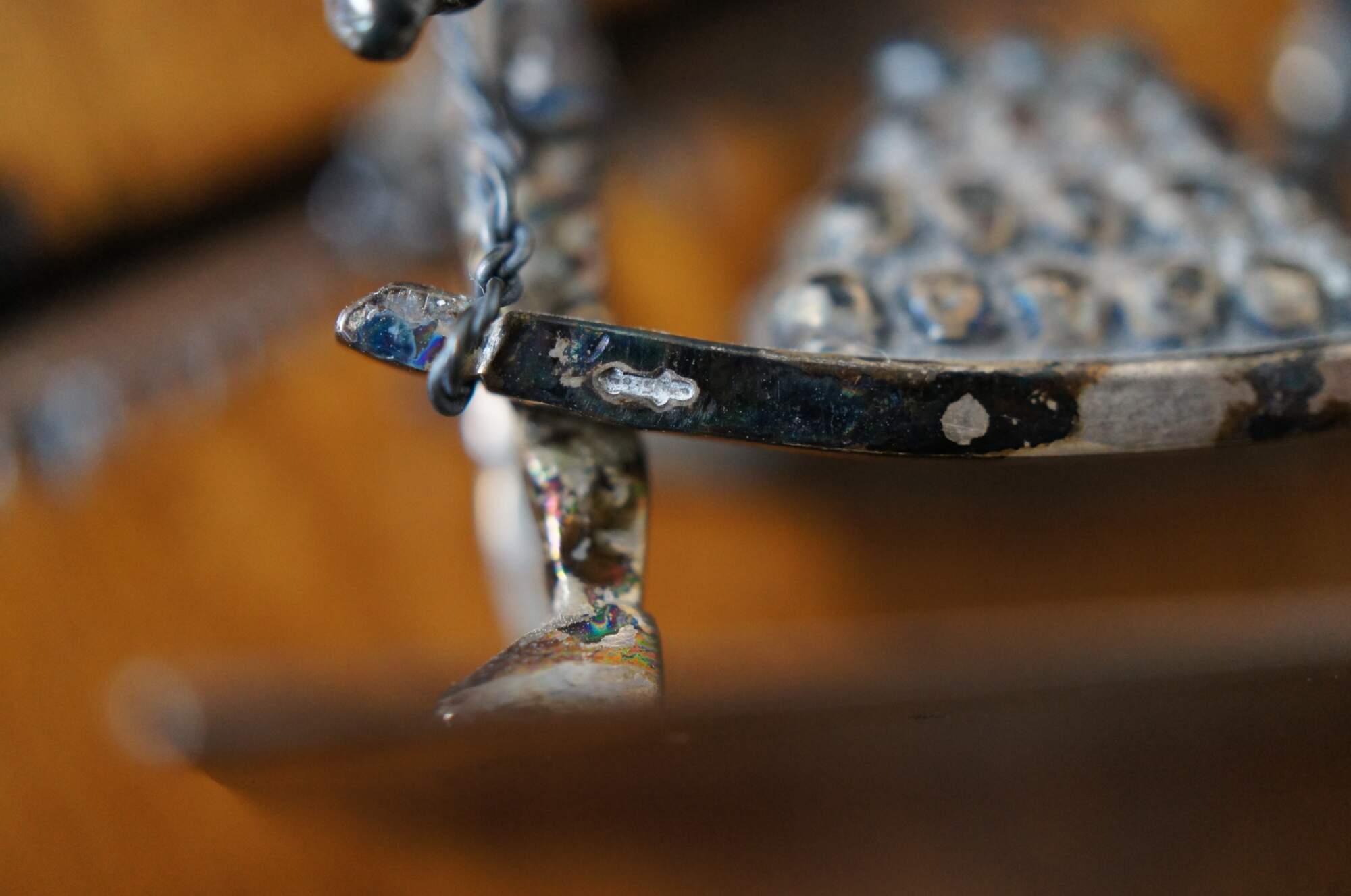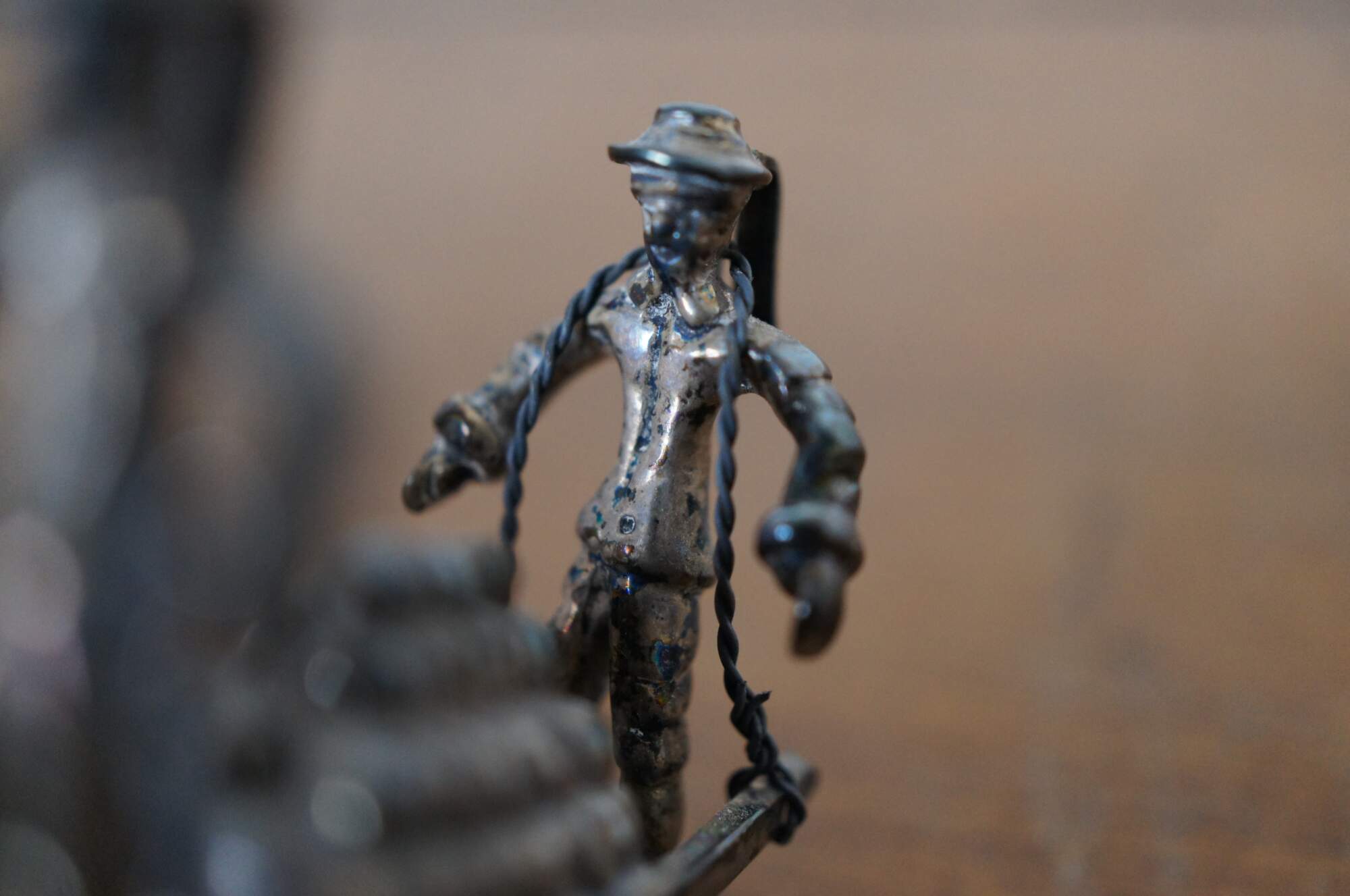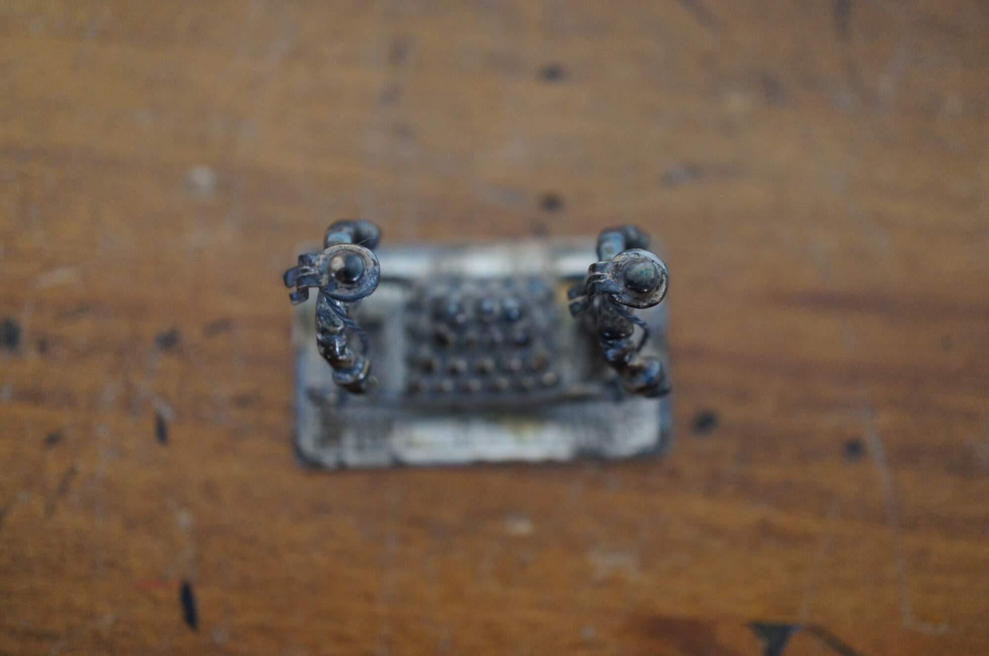 Mid to late 20th century 825 Dutch silver miniature figurine depicting a pair of men carrying a load of cannonballs between them. Single sword silver mark with the numerals 835 on the blade indicate manufacture after 1953. Also marked with three St Andrew's Crosses (XXX) in a rectangle, mimicking the 18th century assay mark of Amersterdam. Made in Holland / Netherlands.