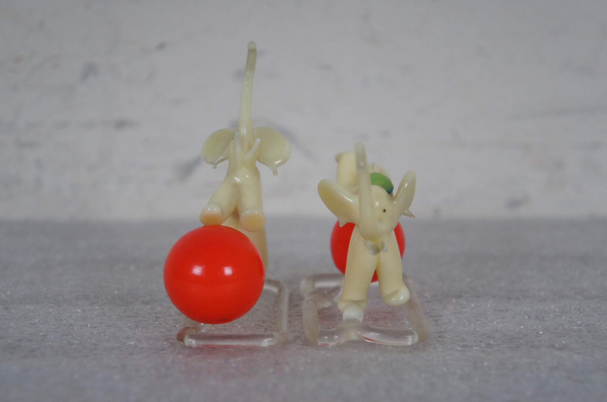 Pair of rare mid to early century Jaroslav Brychta Bohemian Czech hand blown art glass circus elephants with saddles and red balance balls.